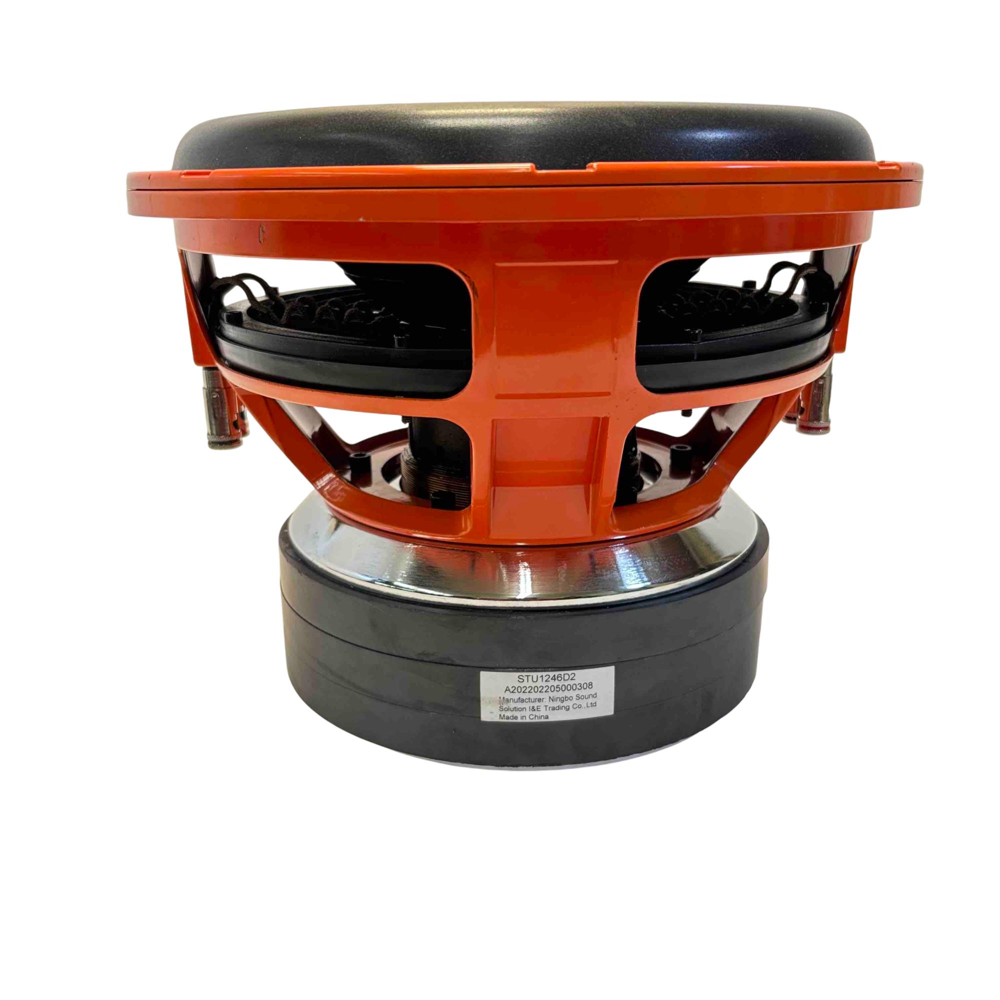 The Avatar Tsunami STU-1246-D2 12" Subwoofer delivers powerful 6000W audio performance with vibrant orange accents designed for impactful sound in car audio systems. This high-performance subwoofer features a durable synthetic rubber surround and a robust design optimized to enhance bass response and sound clarity. Engineered for enthusiasts seeking deep, resonant low frequencies, it integrates seamlessly into automotive sound setups for an immersive listening experience.