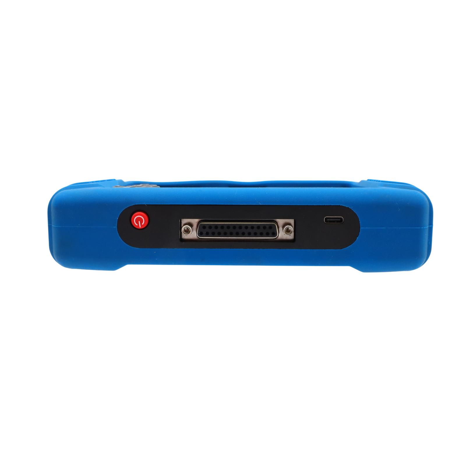 A professional-grade OBD2 diagnostic scanner designed for advanced DIY users and automotive technicians, supporting all 10 standard OBD2 test modes along with comprehensive system diagnostics for the Engine, Transmission, ABS, and SRS. It can read and clear diagnostic trouble codes, perform full-vehicle scans, display I/M readiness status for emissions testing, and provide clear fault identification through integrated LED indicators. The tool includes over a dozen service and reset functions such as oil service reset, ABS bleeding, electronic parking brake reset, steering angle sensor calibration, diesel particulate filter regeneration, throttle body relearn, battery initialization, TPMS relearn, transmission adaptation reset, and additional fluid and maintenance resets. It offers real-time live data from OBD2 and OEM-specific systems with numerical and graphical views, supports recording and replaying data, overlays up to four data streams for comparison, and includes freeze frame capture for fault analysis. AutoVIN, AutoScan, and automatic ECU detection allow the scanner to identify the vehicle and retrieve data immediately upon connection without manual setup.