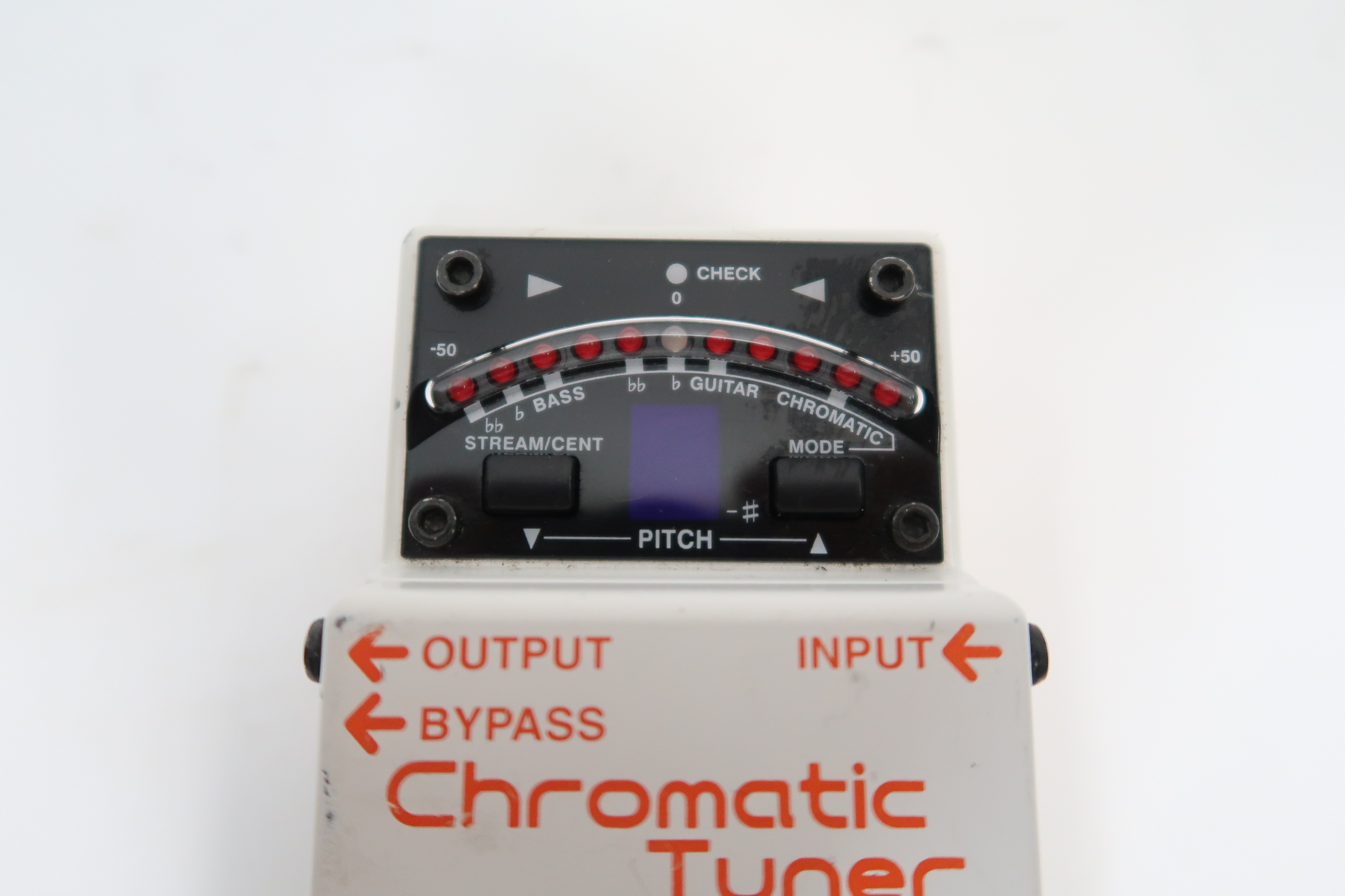 Seven easy tuning modes include Chromatic, Guitar Regular, Guitar Flat, Guitar Double Flat, Bass Regular, Bass Flat, Bass Double Flat