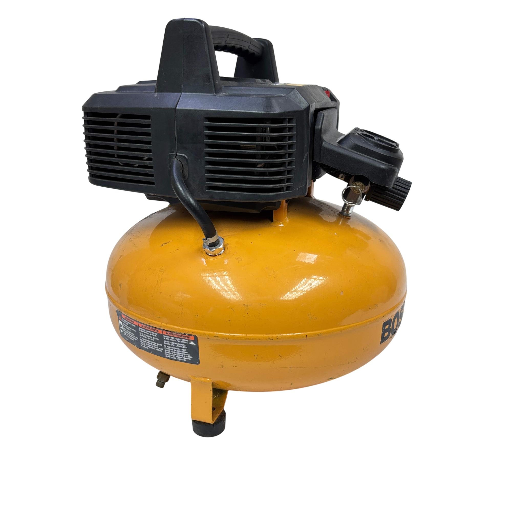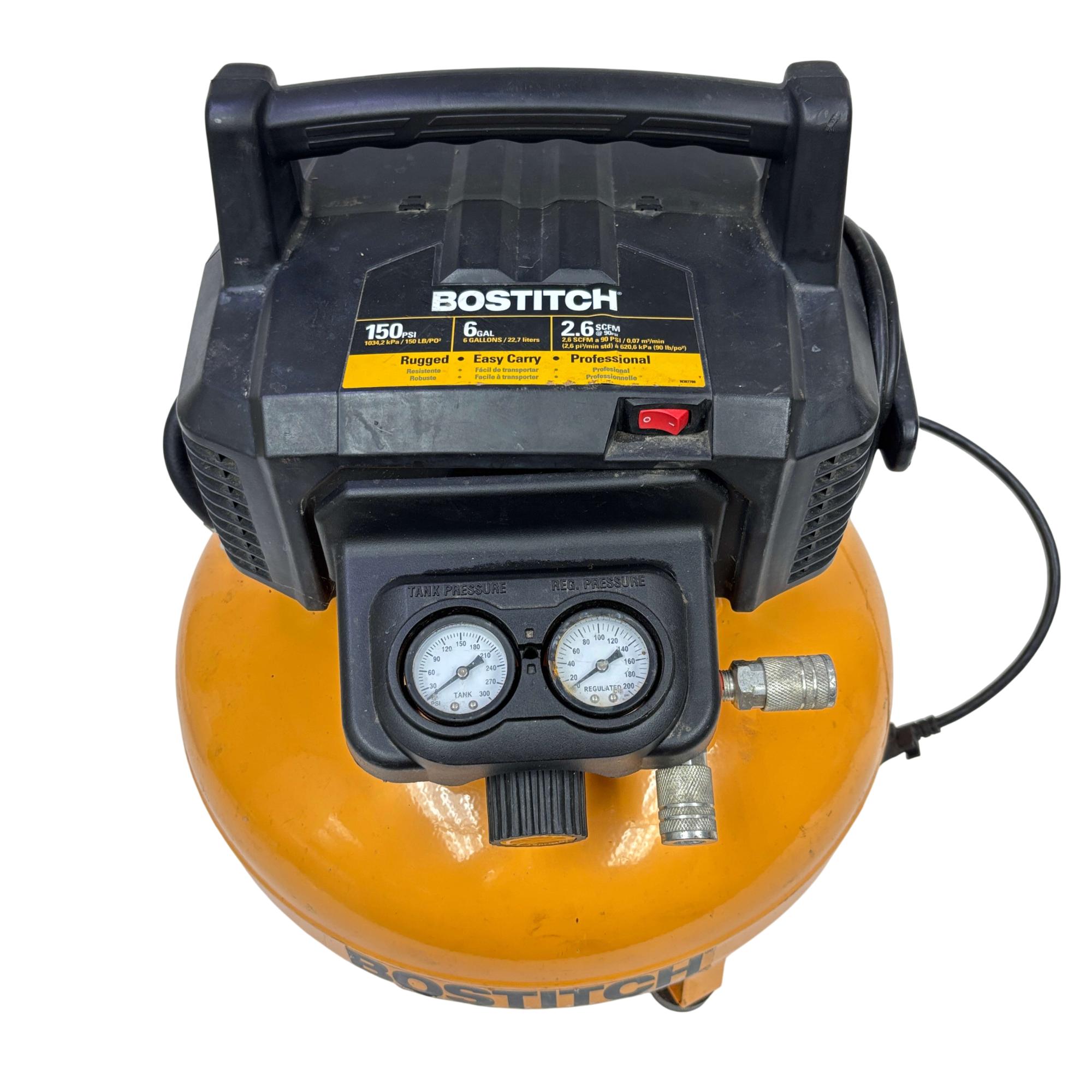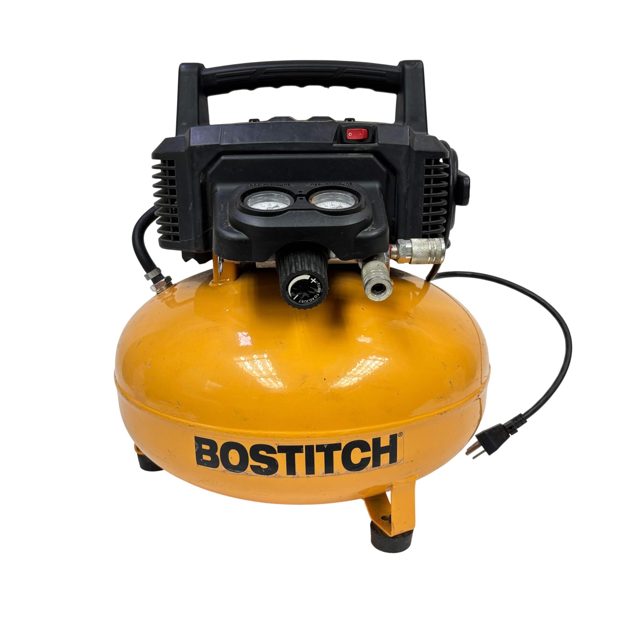 The BOSTITCH BTFP02012 6-Gallon 150 PSI Oil-Free Pancake Air Compressor delivers reliable, portable performance with its compact design and durable pancake-style tank. Engineered for quiet operation and convenient transport, this air compressor offers a maximum pressure of 150 PSI suitable for a variety of air tools and applications. Its oil-free pump design ensures maintenance-free functionality and long-lasting use in both professional and DIY settings.