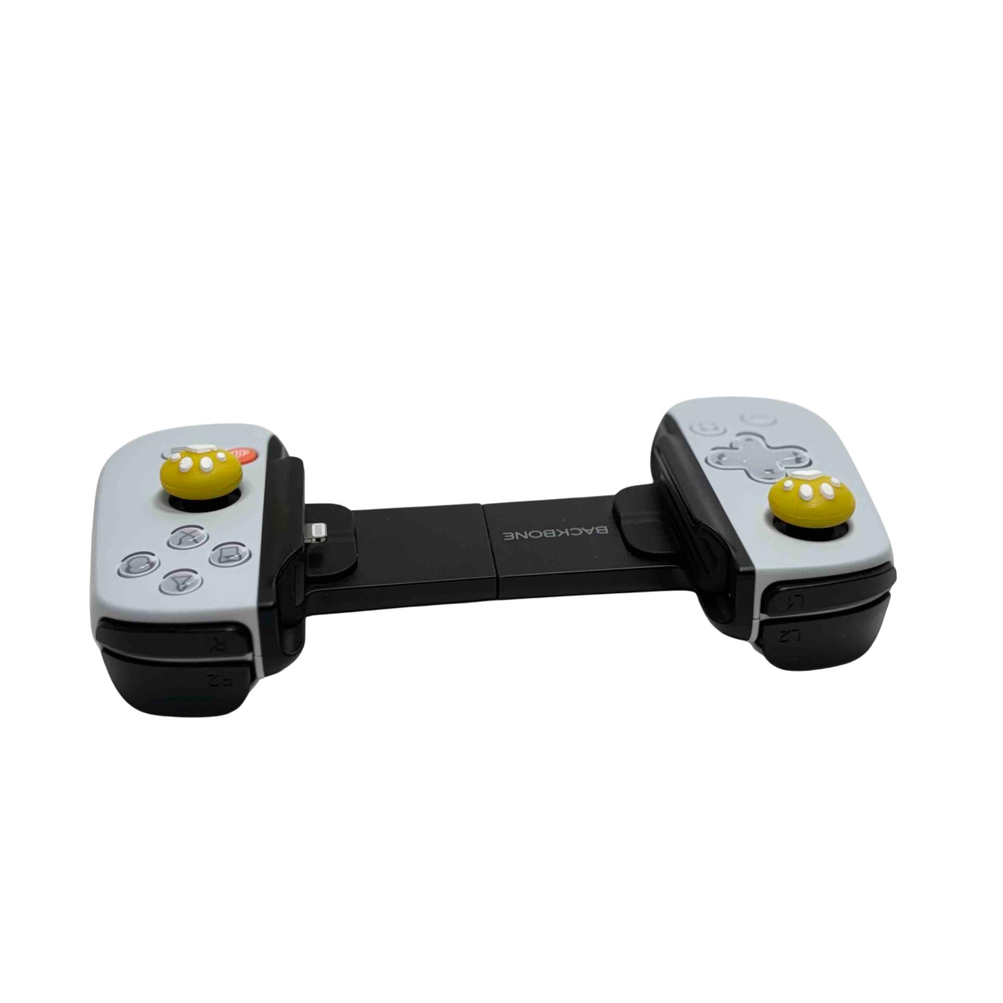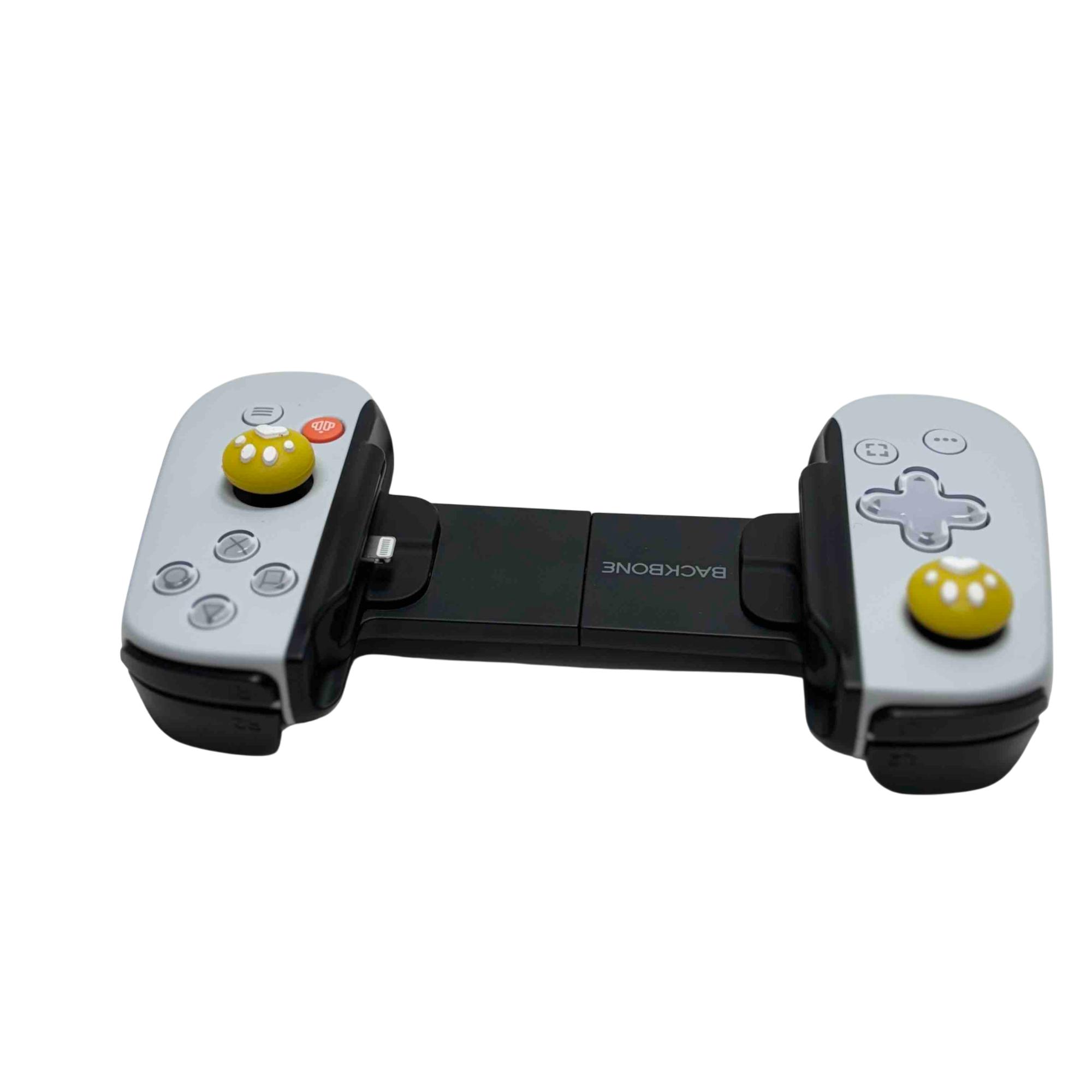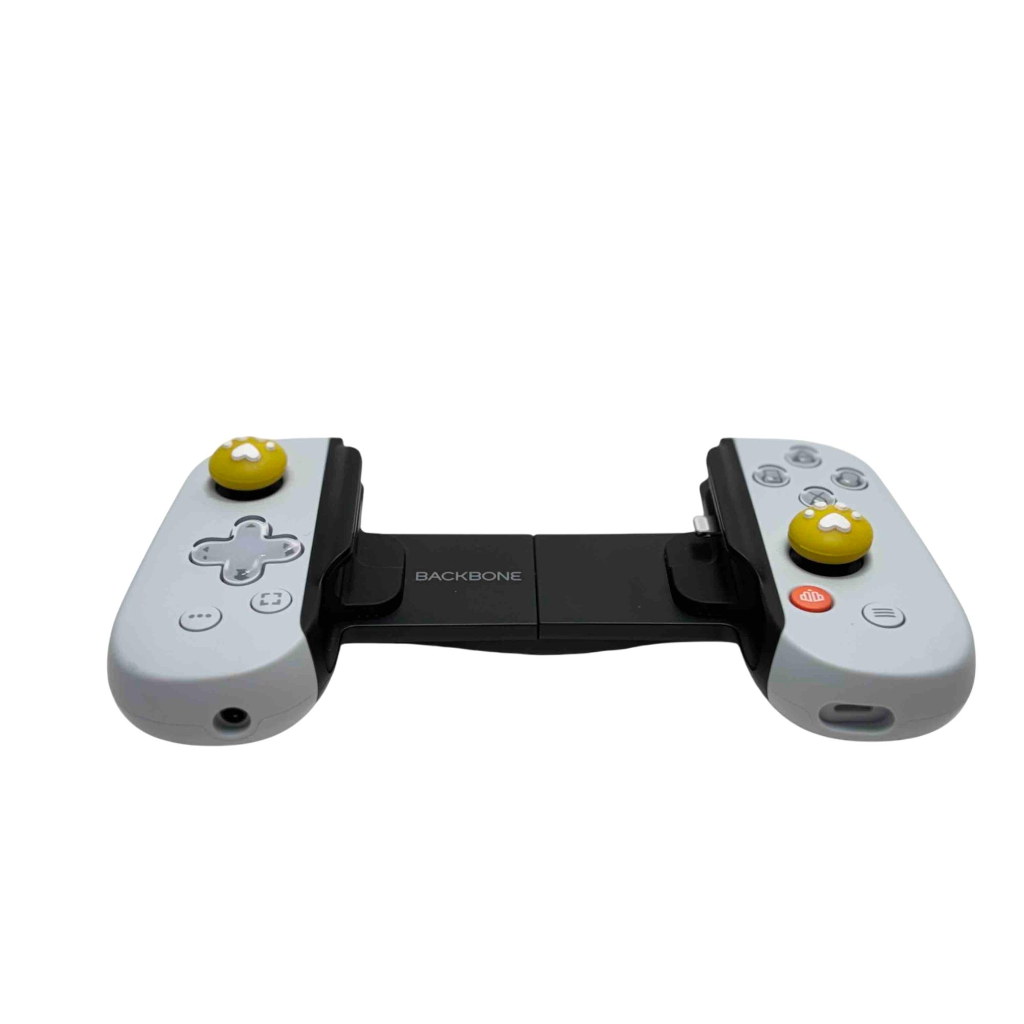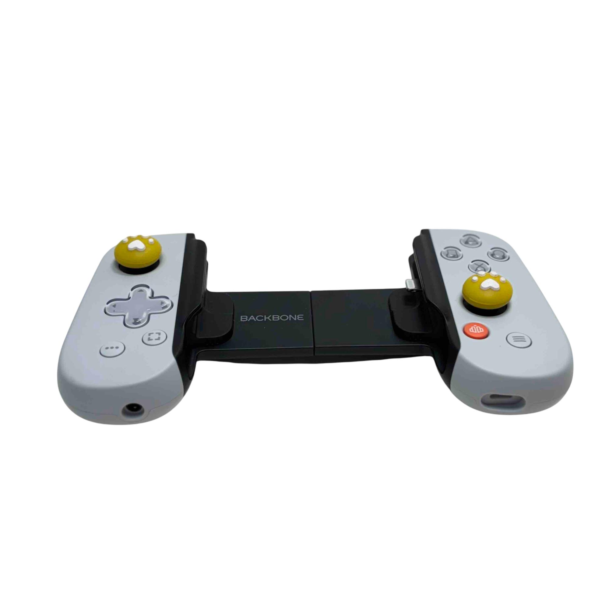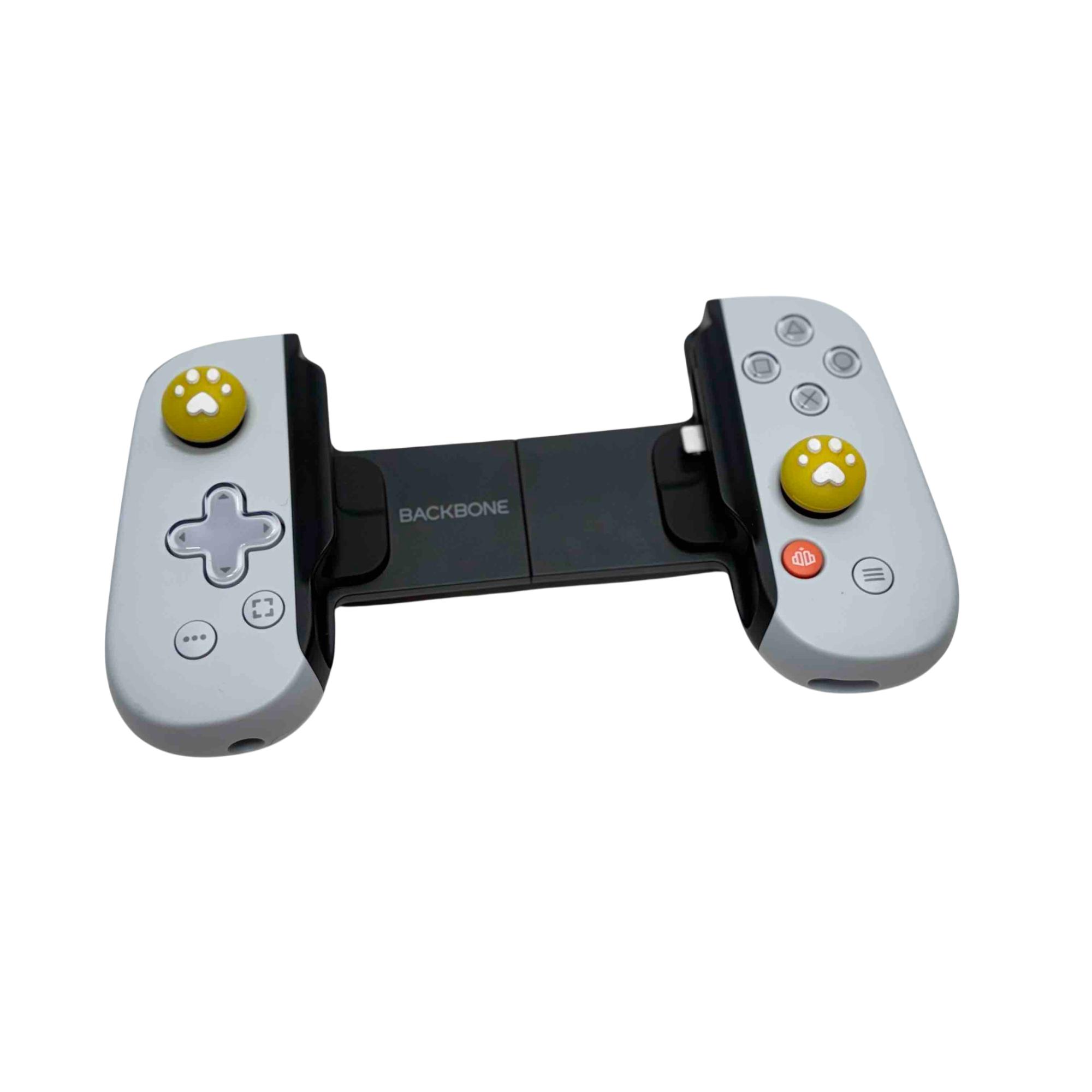 Enhance your gaming experience with the Backbone One BB02 Gaming Controller for iPhone. This sleek black controller is designed for the avid gamer, featuring unique yellow buttons with adorable paw print designs for an added touch of personality. Perfectly optimized for iPhone users, this controller offers precise control and a comfortable grip, making it an essential accessory for gaming on-the-go.