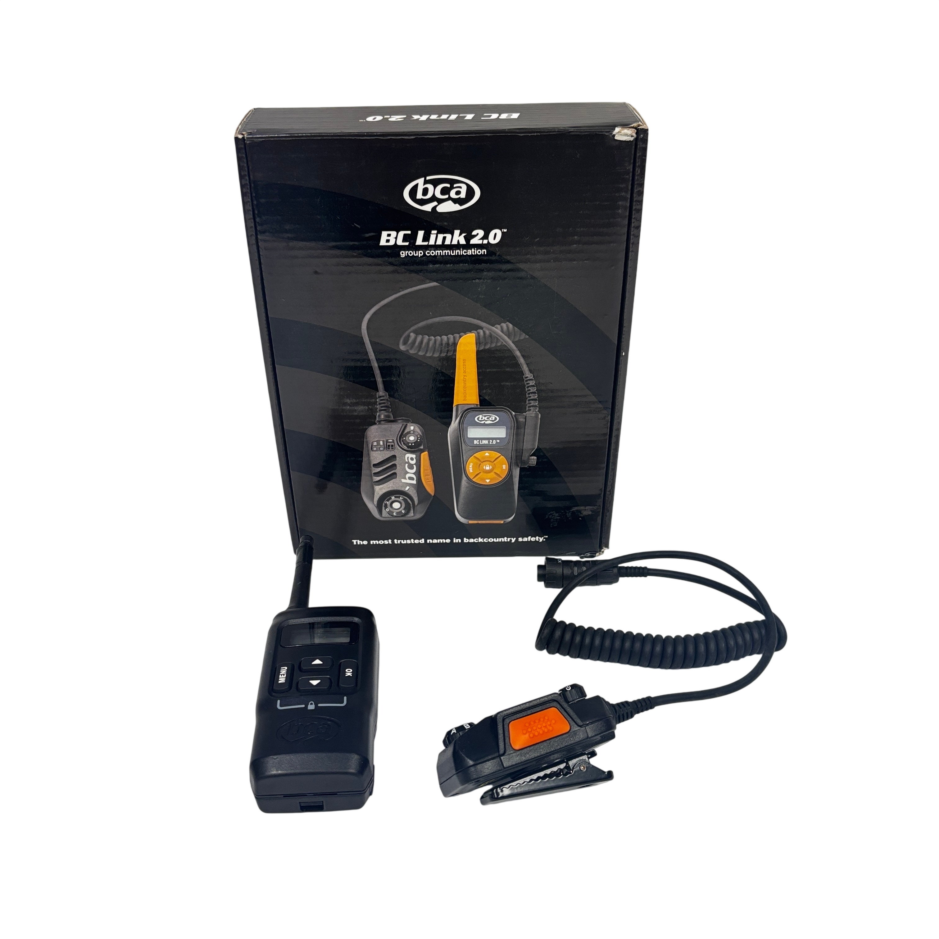 This Backcountry Access BC Link 2.0 Walkie Talkie is designed for reliable group communication in backcountry and outdoor environments. This compact and rugged 2-way radio features an easy-to-read LCD display, multiple channel selection, and a clip-on microphone with a convenient push-to-talk button for hands-free operation. Ideal for outdoor enthusiasts and safety teams, the BC Link 2.0 provides clear communication over typical ranges of 1-2 miles. The set includes the radio unit, antenna, and clip-on microphone, all housed in a durable black and orange casing for high visibility.