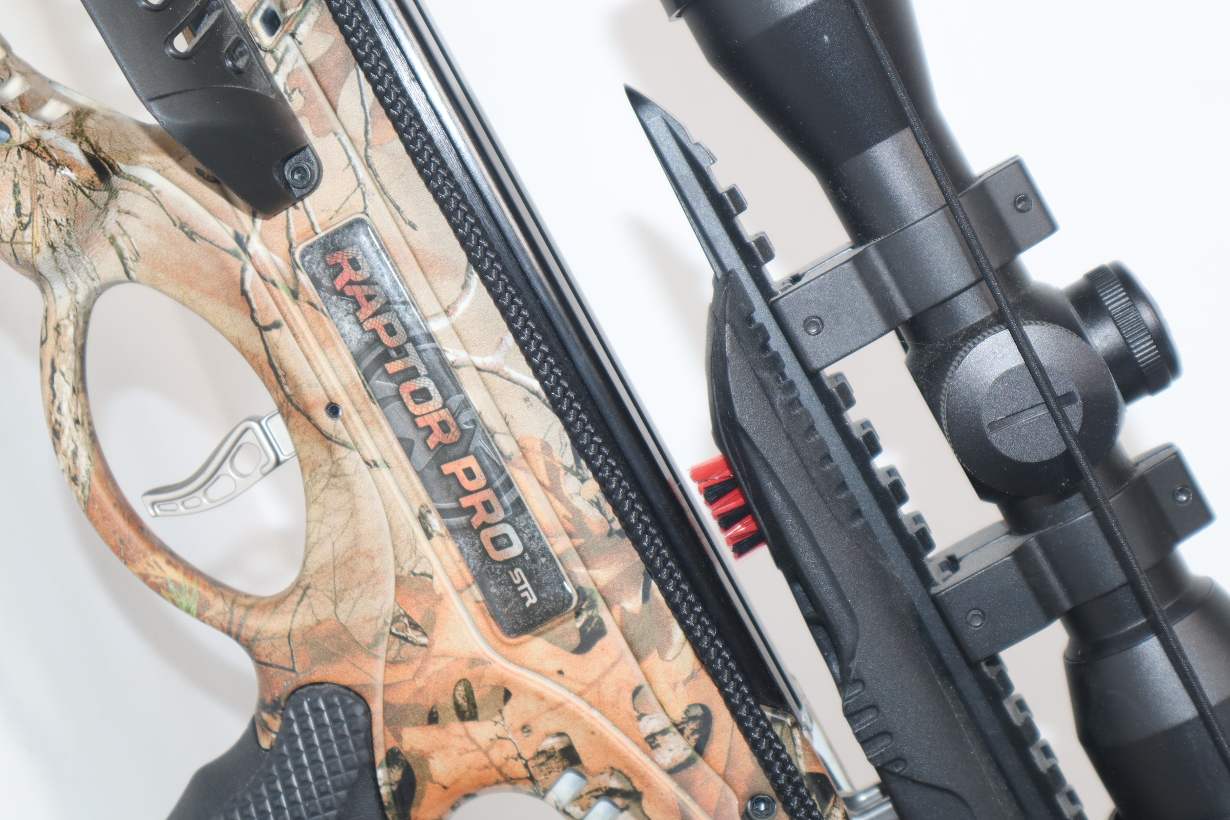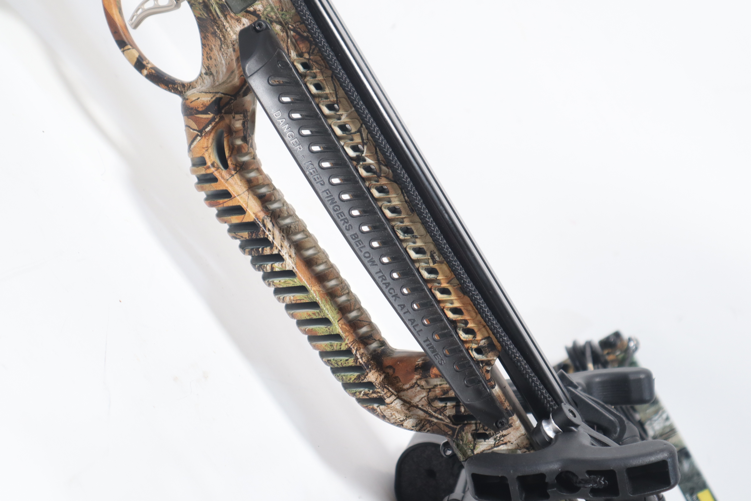 The Raptor series is a good thing that just keeps getting better. The latest leg up we gave to one of America's most popular crossbows: a fiberglass composite step-through riser. The integrated foot stirrup trims weight and lengthens the power stroke to up this baby's speed to a menacing 400 FPS. Although it has a compact size and feel, the lengthened stock is sized to comfortably fit full-framed shooters. Impressive speed, extensive safety measures and unparalleled performance: did we miss anything? Didn't think so.
