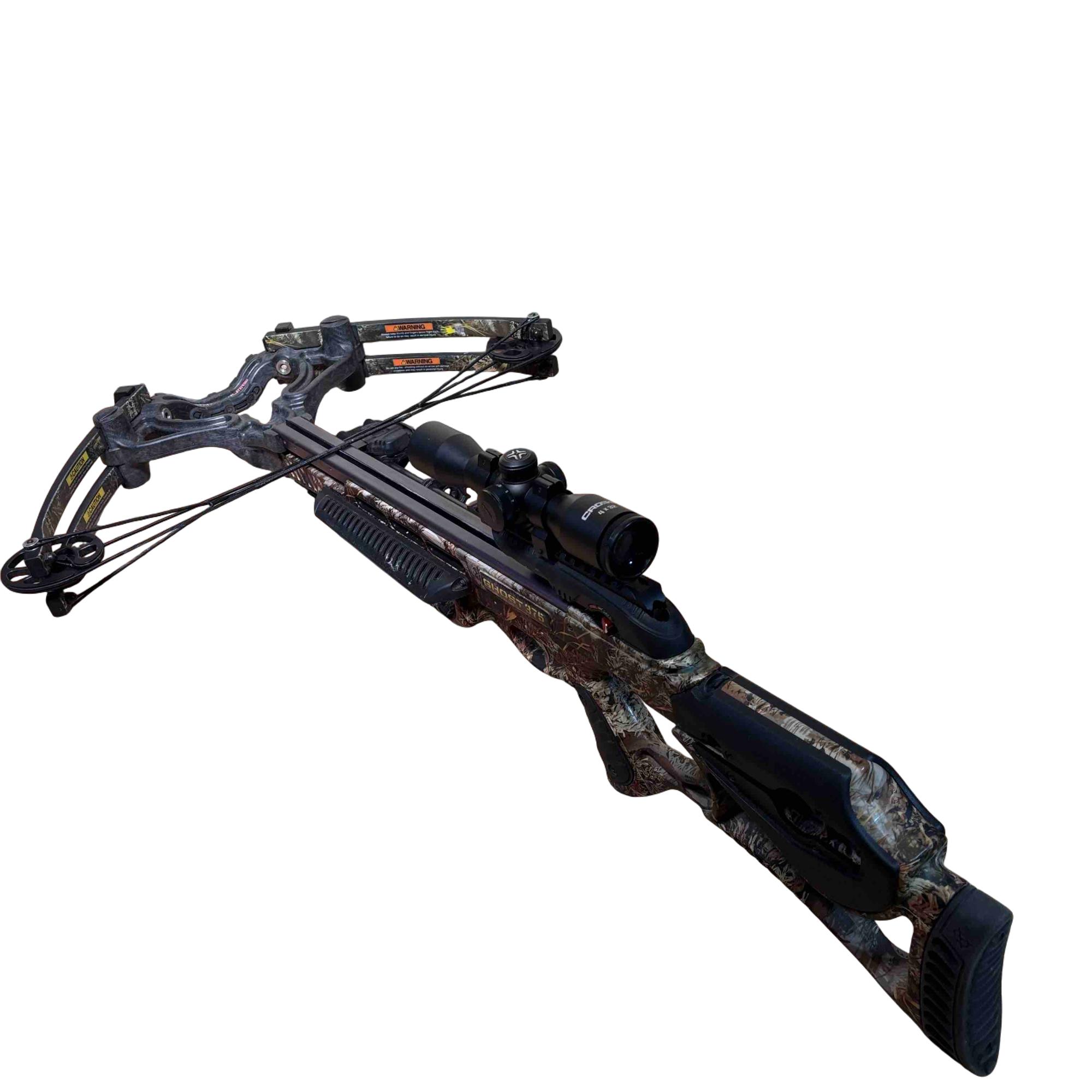 Experience unbeatable power and precision with the Barnett Ghost 375 Crossbow, an advanced camouflaged hunting crossbow designed for accuracy and stealth. Known for its reliable performance, the Ghost 375 features Barnett craftsmanship and a robust build ideal for both beginners and experienced hunters. Lightly used, this crossbow offers top-tier quality at a fraction of the new price—perfect for your next hunting adventure.