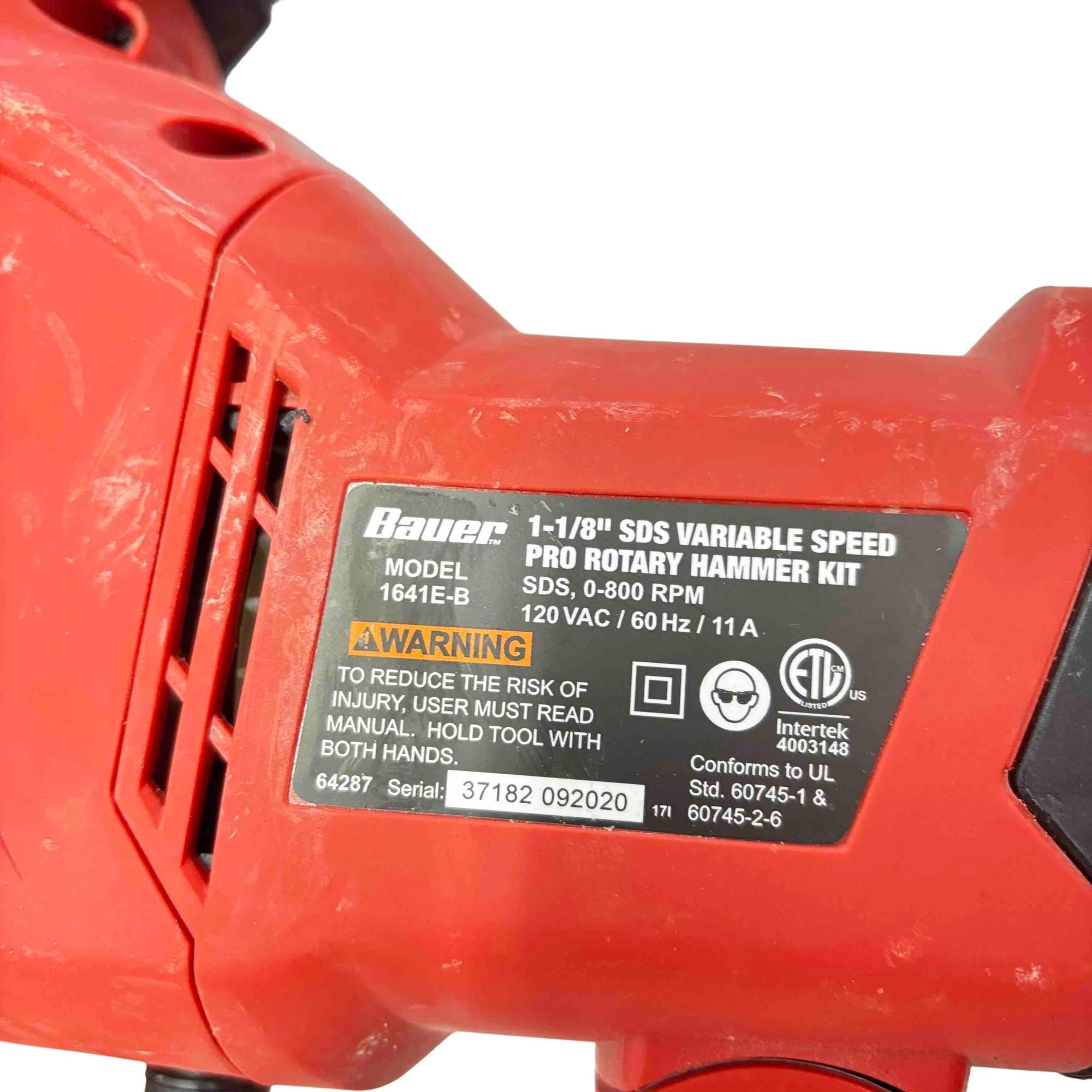 Bauer 1641E-B 1-1/8" SDS Variable Speed Pro Rotary Hammer Drill