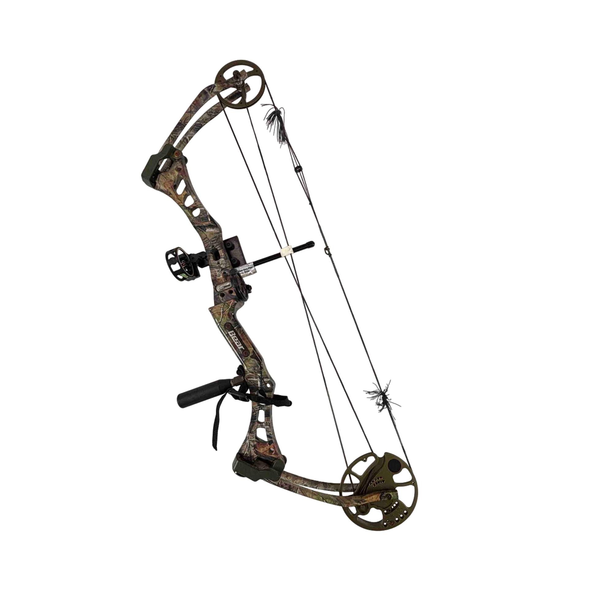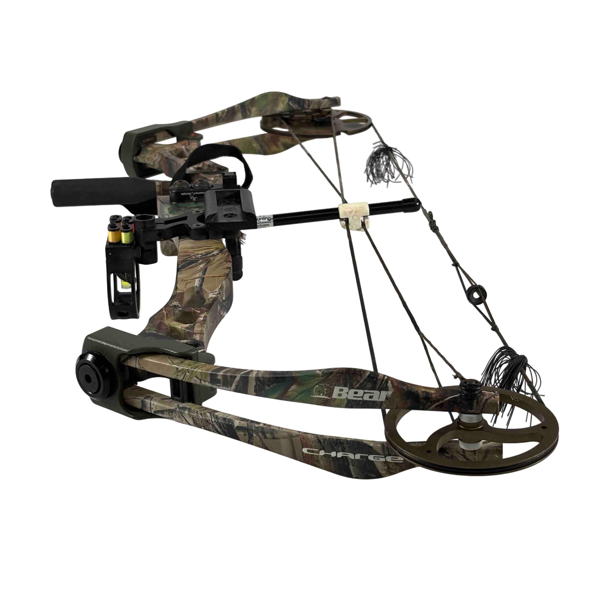 The Bear Archery Charge is a right-handed hunting compound bow with a 60-pound draw weight and a 29-inch draw length, offering power, accuracy, and smooth performance for a variety of hunting situations.