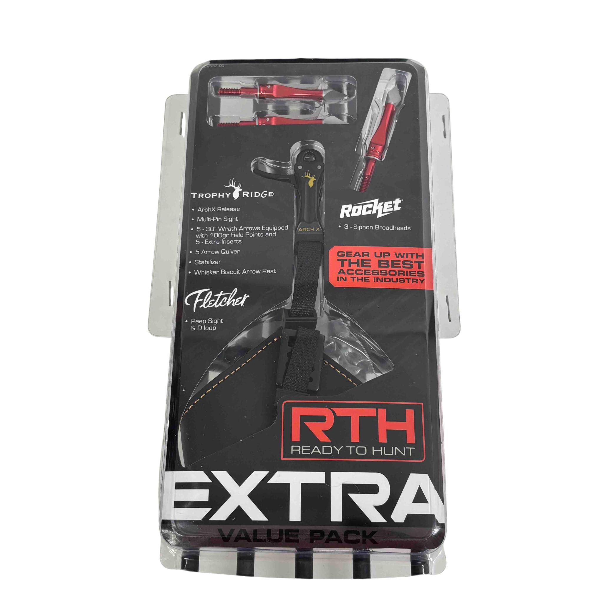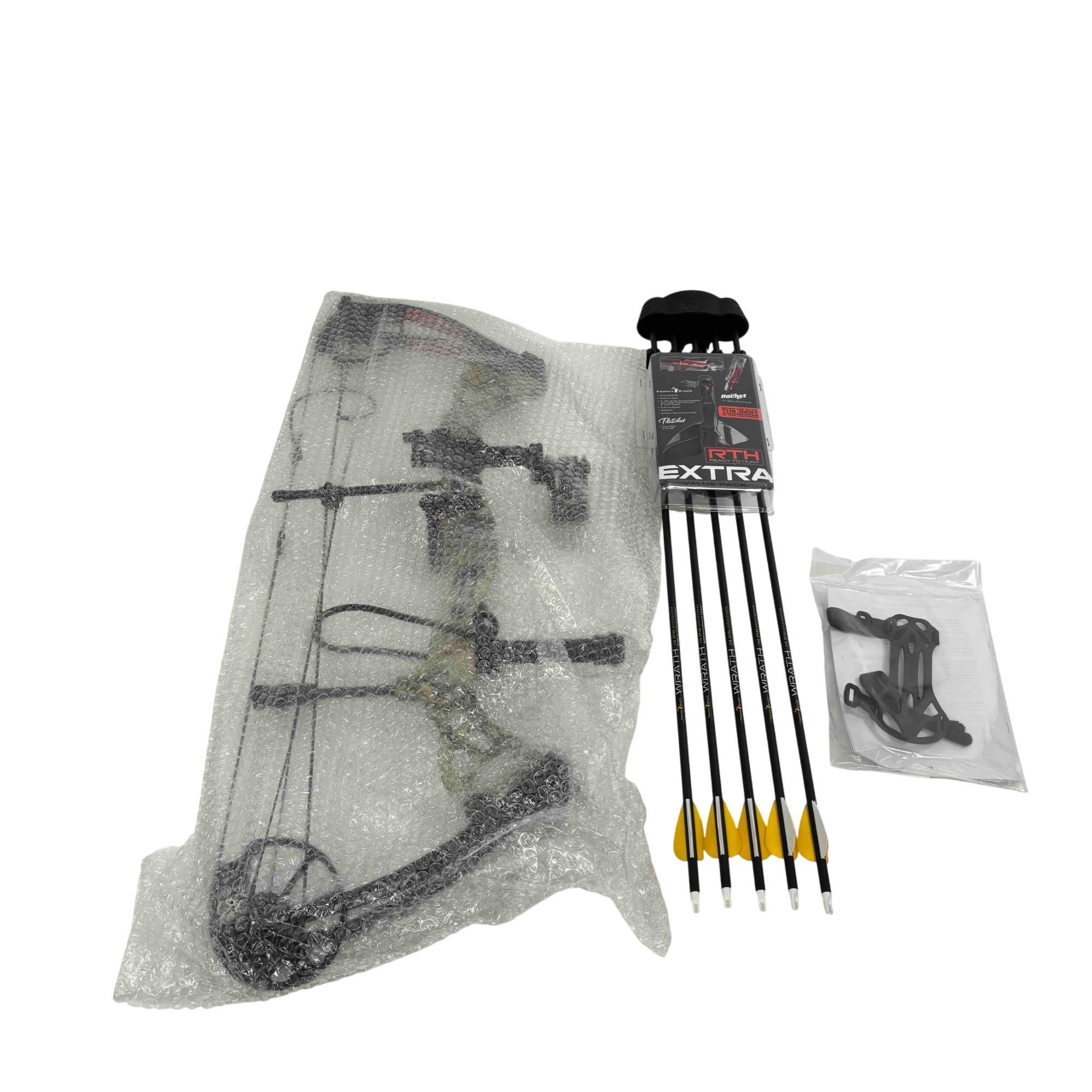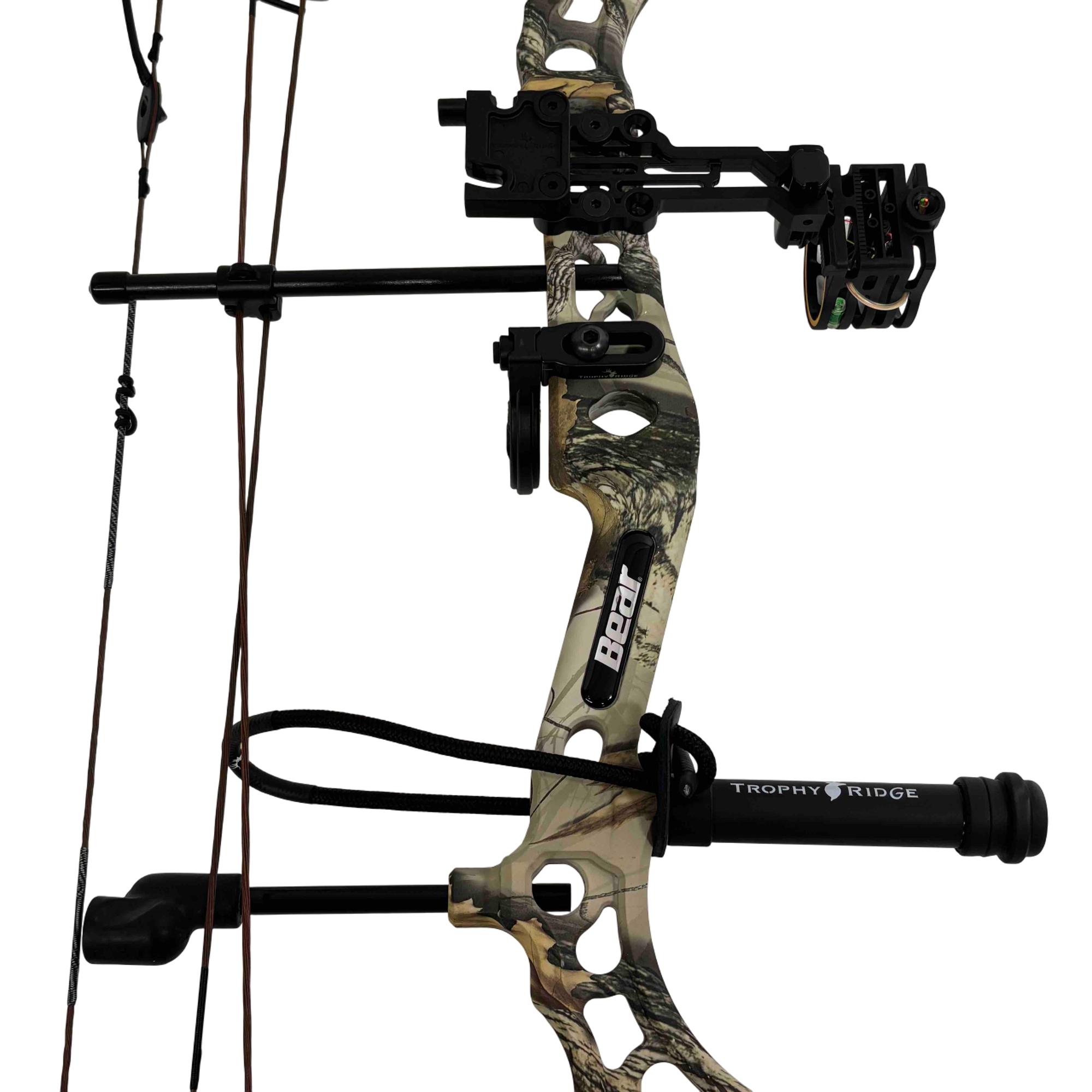 Experience the thrill of the hunt with the Bear Archery Vast RTH Extra Compound Bow Kit. This high-performance, Ready-to-Hunt package features an adjustable 40-70lbs draw weight and a 20"-30" draw length, reaching up to 310 FPS.