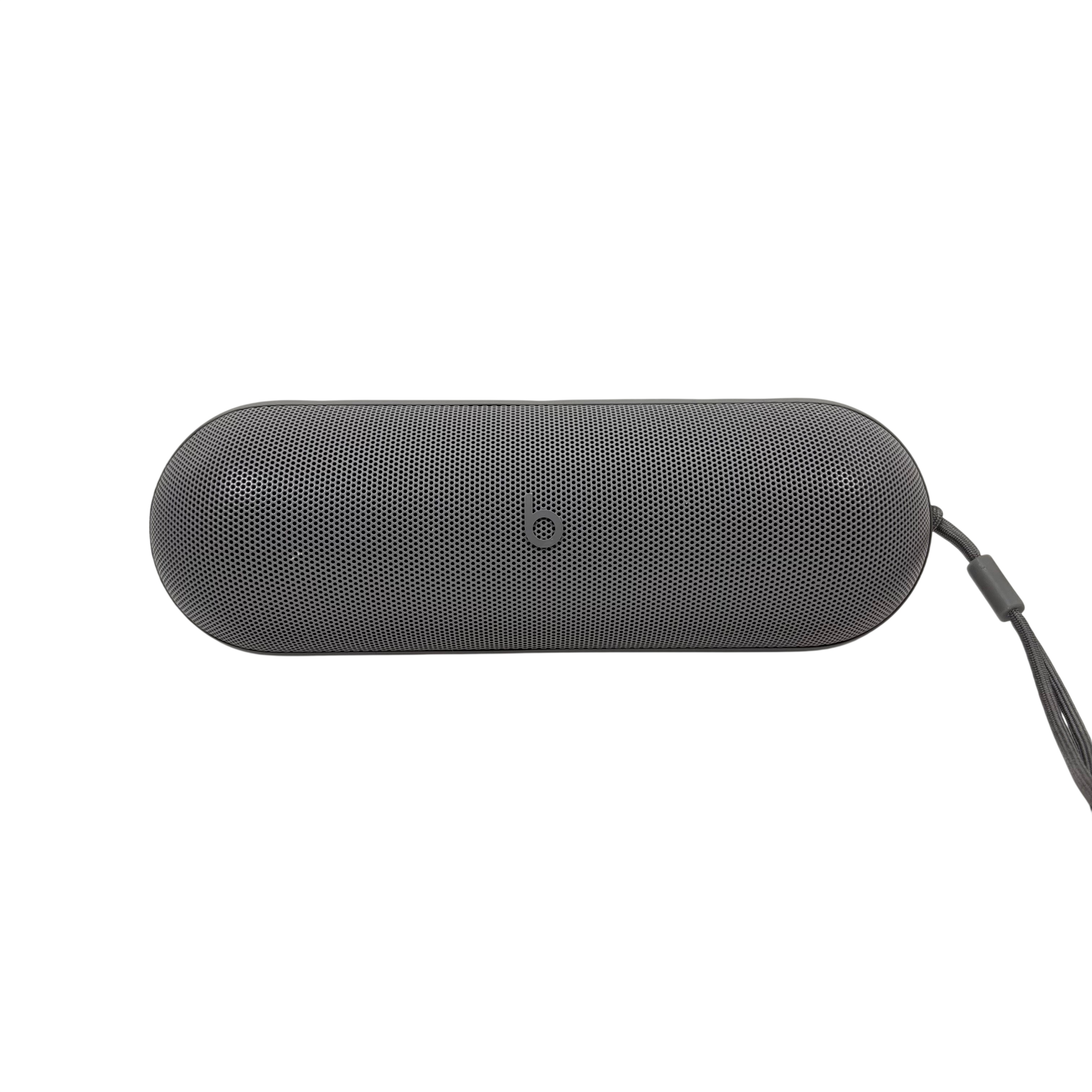 Beats By Dr. Dre Pill Bluetooth Speaker offers a compact and portable design with wireless Bluetooth connectivity for easy pairing with your devices. Featuring built-in power and volume controls, this gray speaker delivers clear sound and convenience on the go. The included carry strap enhances portability, making it ideal for travel or outdoor use. With a 15V input and 5V output, it supports efficient charging and reliable performance.