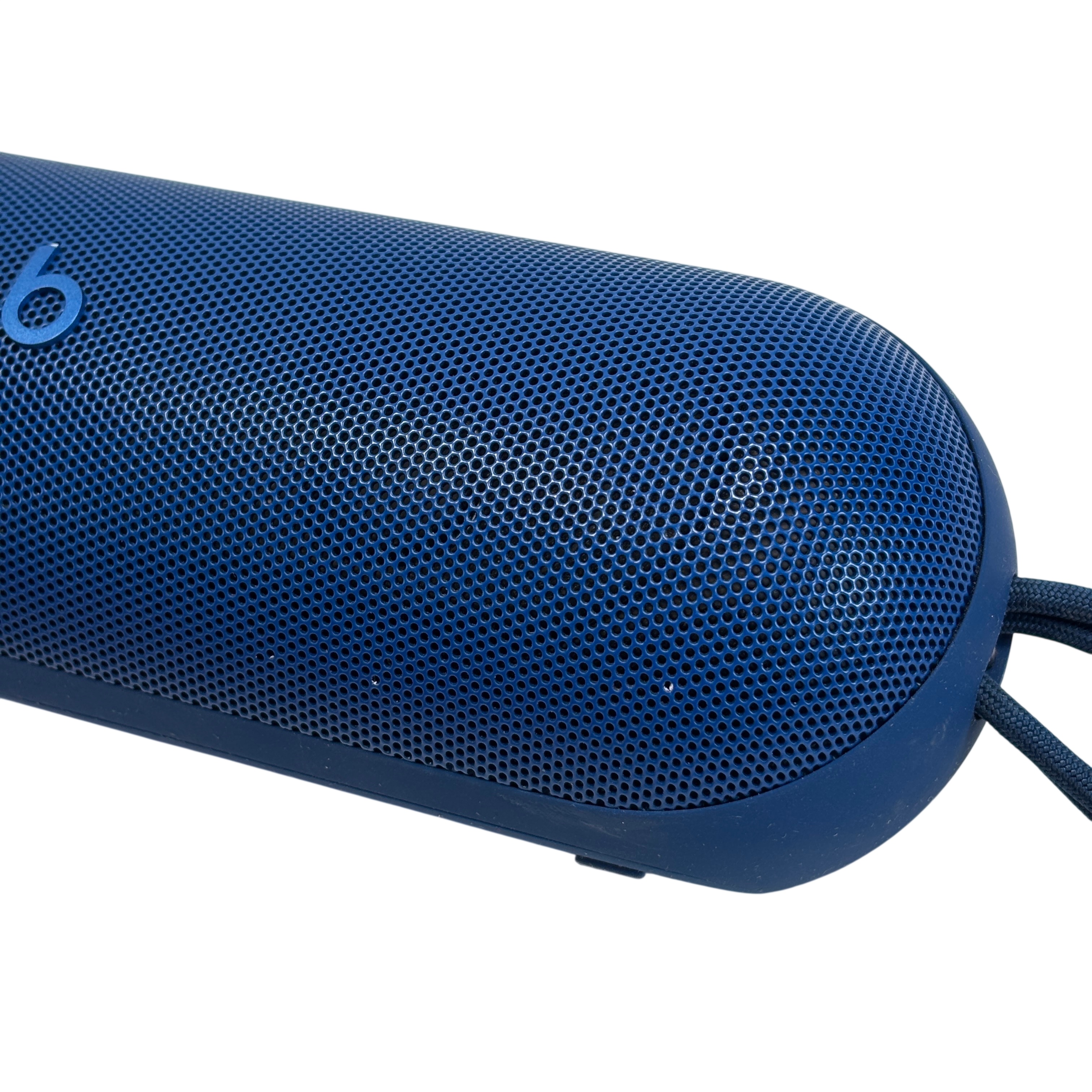 The Beats Pill A3211 is a portable Bluetooth speaker designed for high-quality wireless audio playback. Featuring a compact pill-shaped design in blue with a convenient carrying strap, it offers easy portability and stylish looks. Ideal for on-the-go music listening, this speaker combines Apple’s audio expertise with Beats sound quality.
