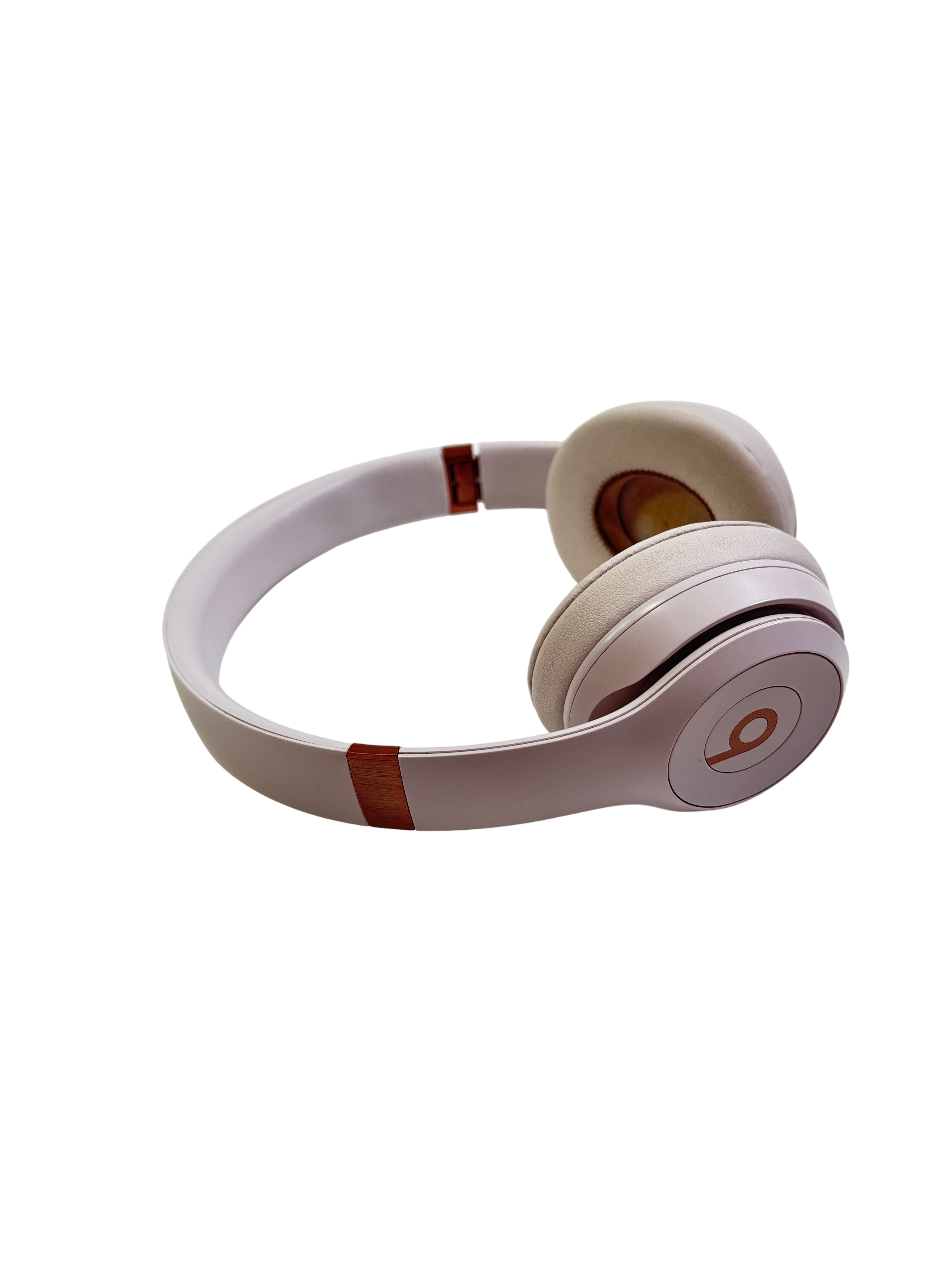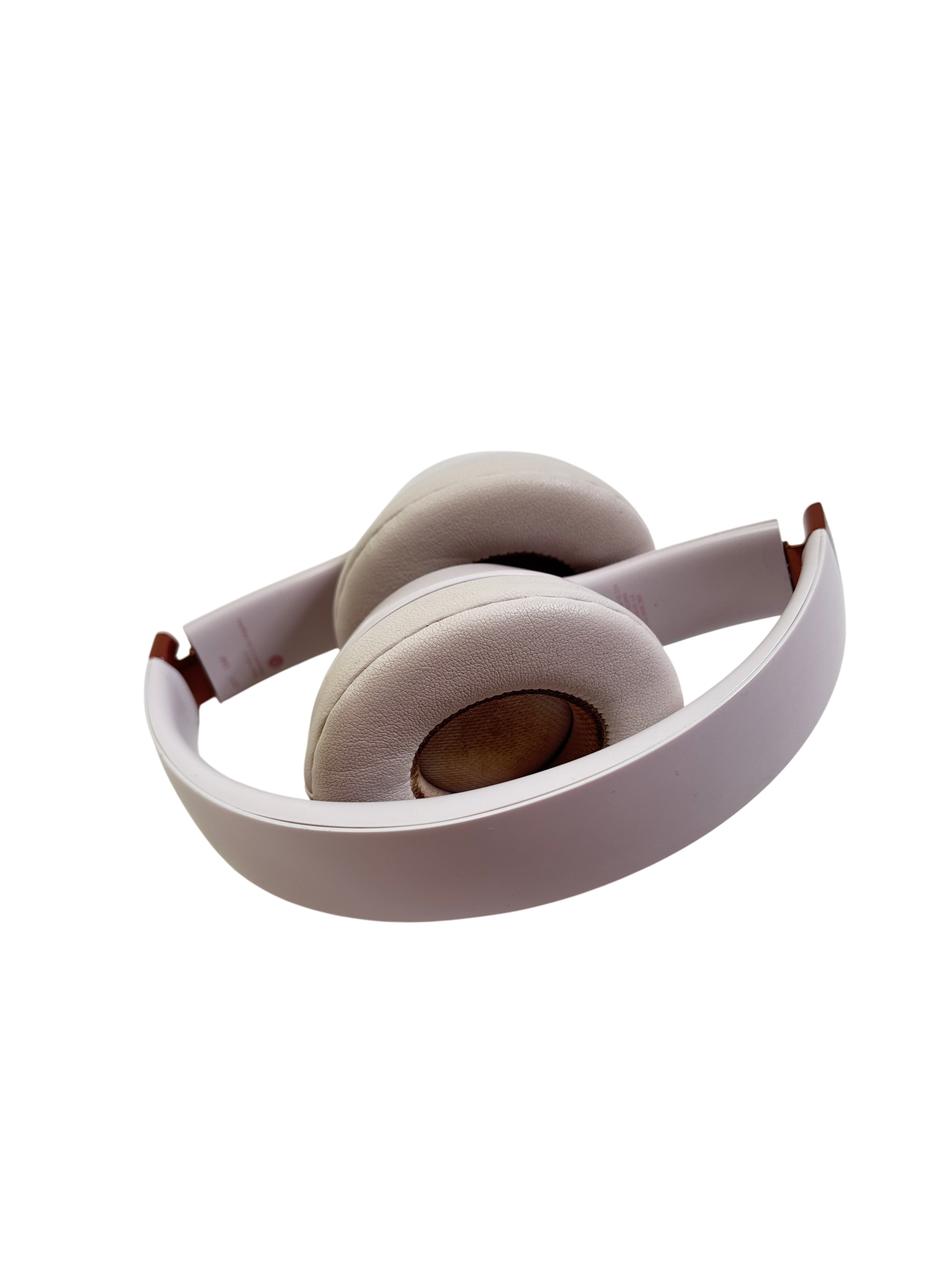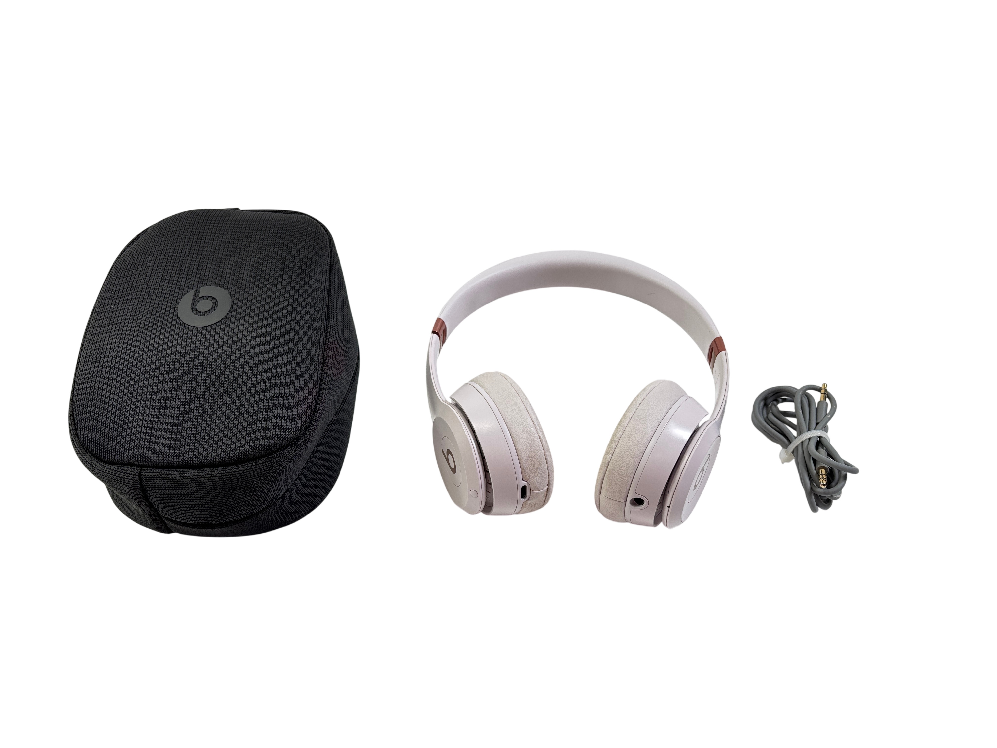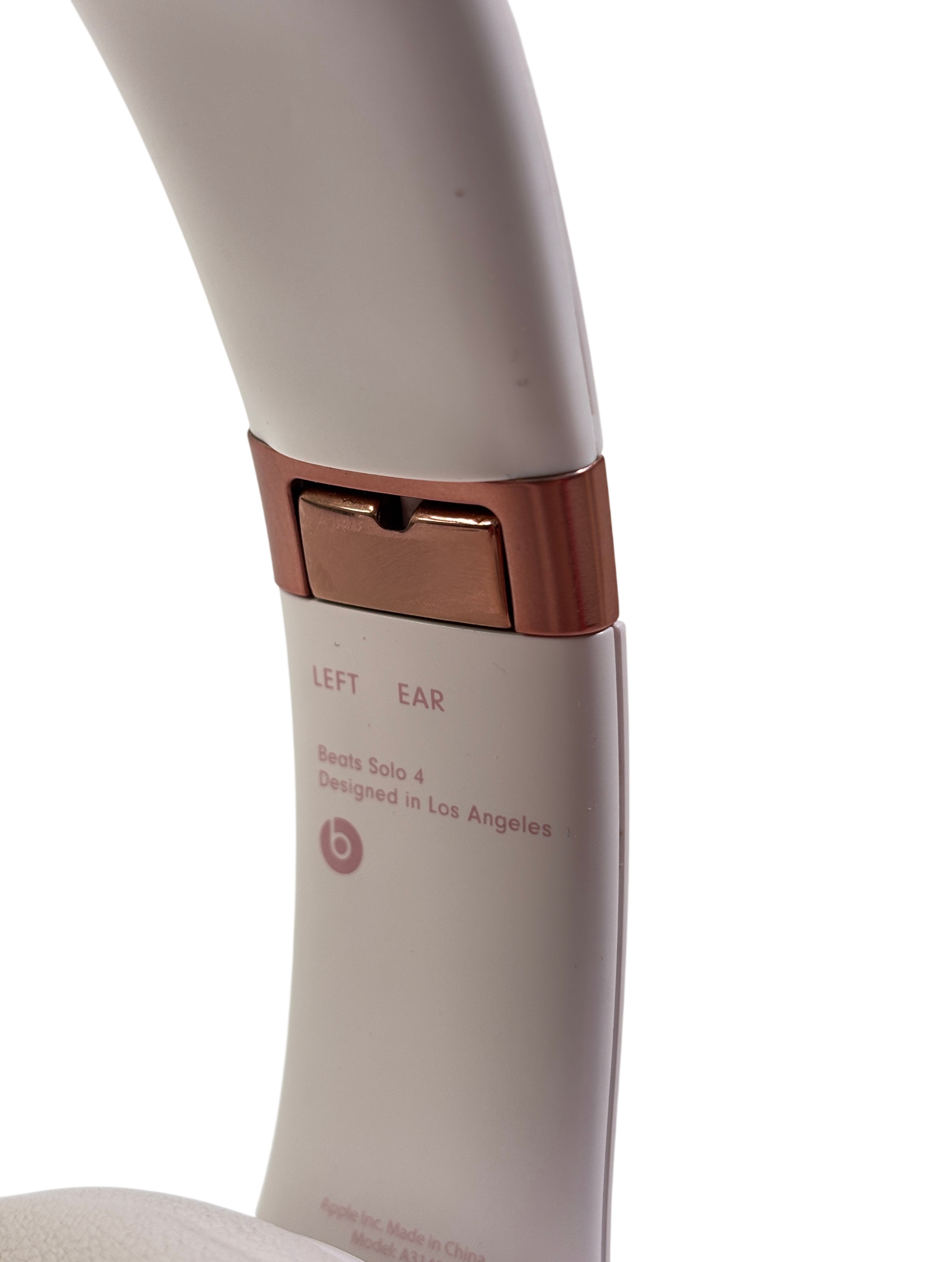 Beats Solo 4 Wireless Headphones (Model Solo 4) offer premium on-ear sound with Bluetooth wireless connectivity and a foldable design for easy portability. These headphones come in a stylish pink finish with rose gold accents and include a black carrying case and 3.5mm audio cable for wired listening options. Featuring rechargeable lithium-ion battery technology, adjustable headband, and on-ear controls, they provide a versatile and comfortable listening experience for everyday use.