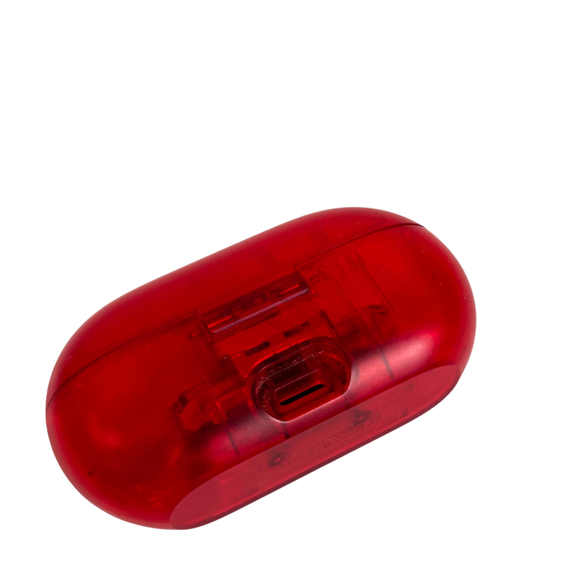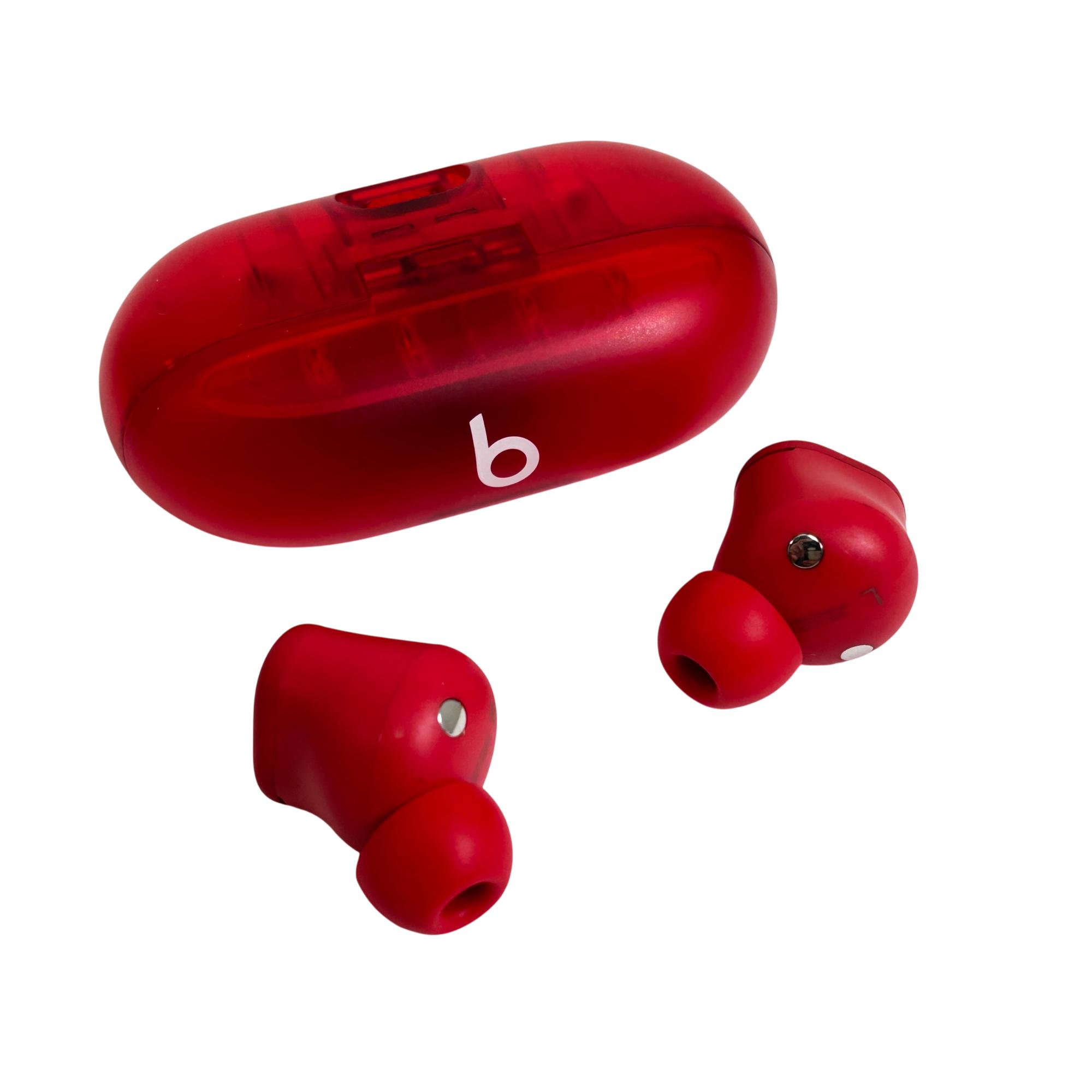 Beats Solo Buds True Wireless Bluetooth Earbuds in Transparent Red, model A3150, deliver vibrant sound quality with a sleek, lightweight design. These in-ear earbuds feature an ergonomic fit and seamless Bluetooth connectivity for a secure and comfortable listening experience during daily activities or workouts.
