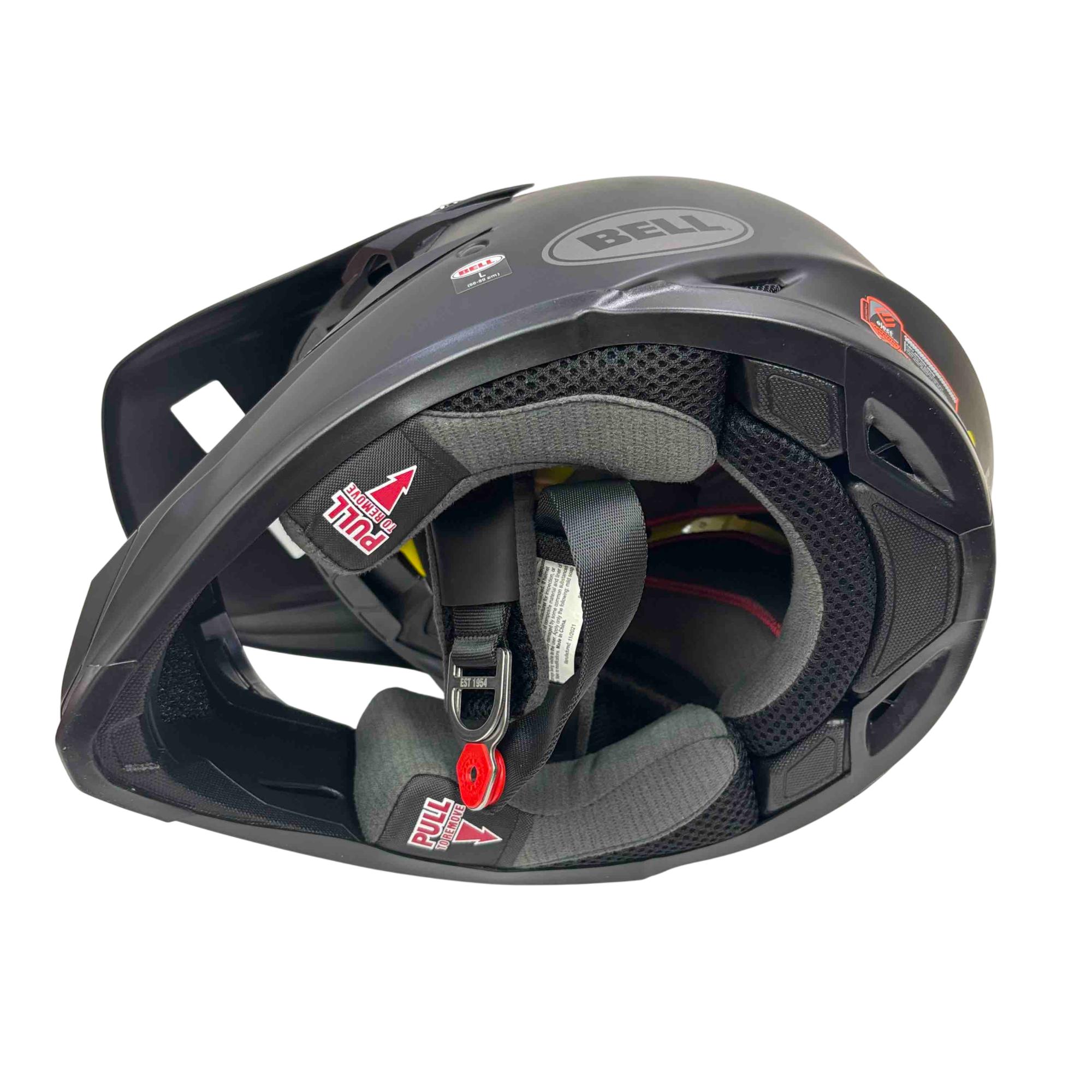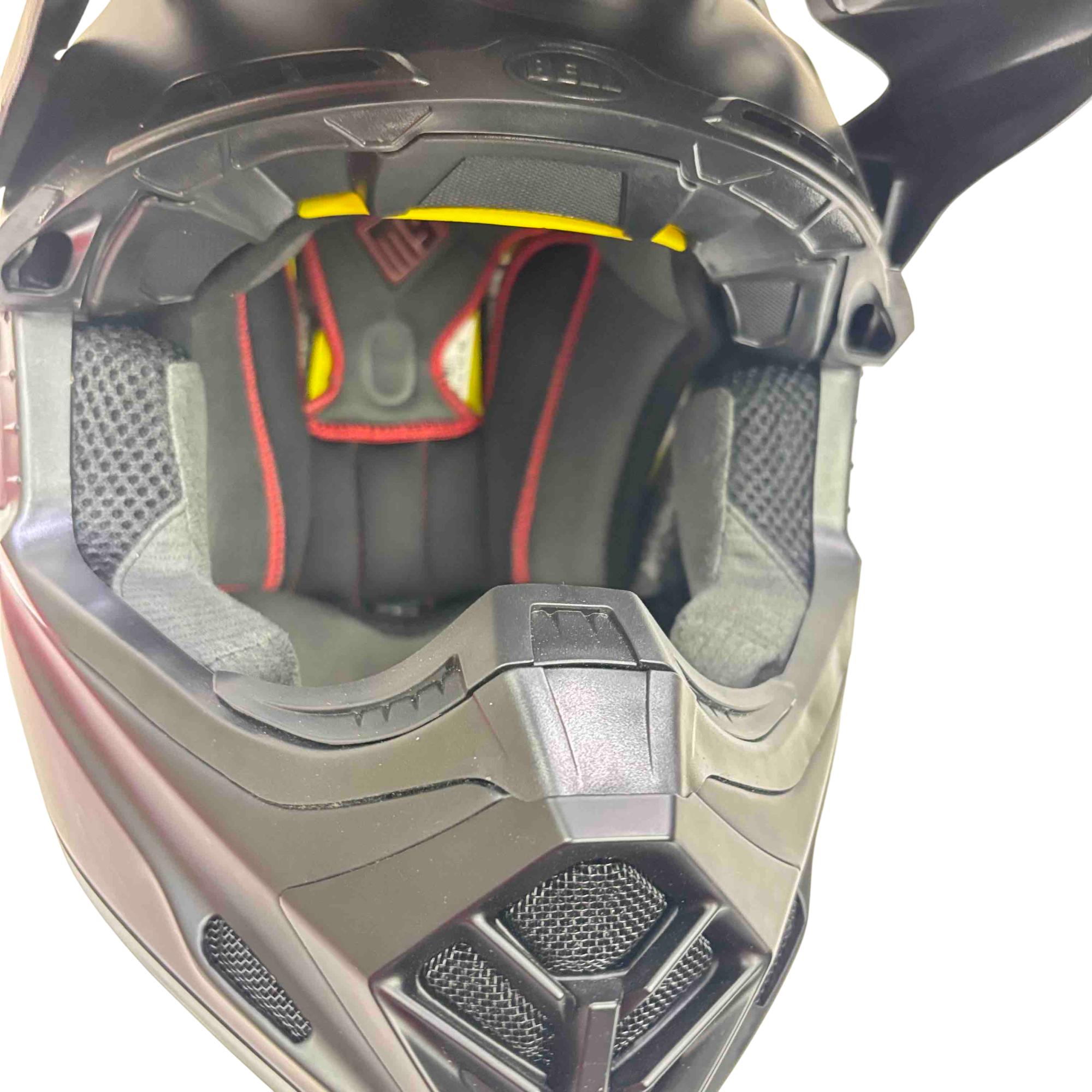 Stay safe and stylish on the road with the Bell MOTO-9 MIPS Motorcycle Helmet. This sleek black helmet features a MIPS system for superior protection and is accented with bold red and yellow details. Perfect for any motorcycling enthusiast, it combines top-notch safety features with a striking design.