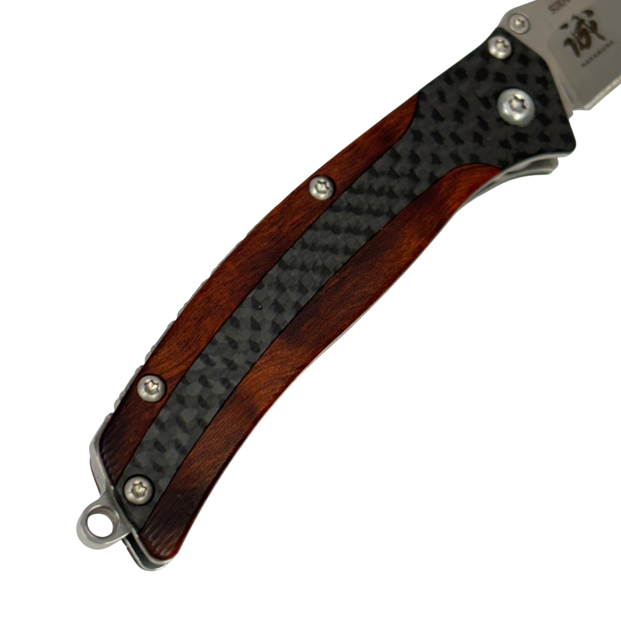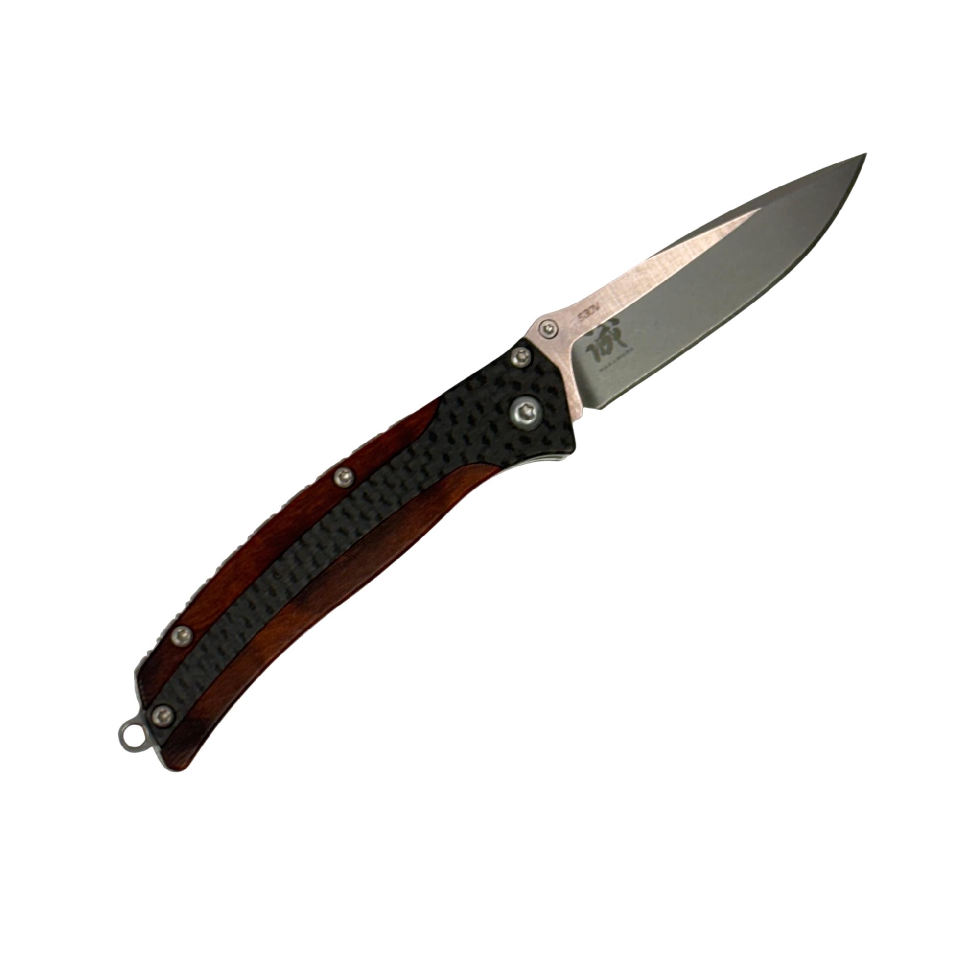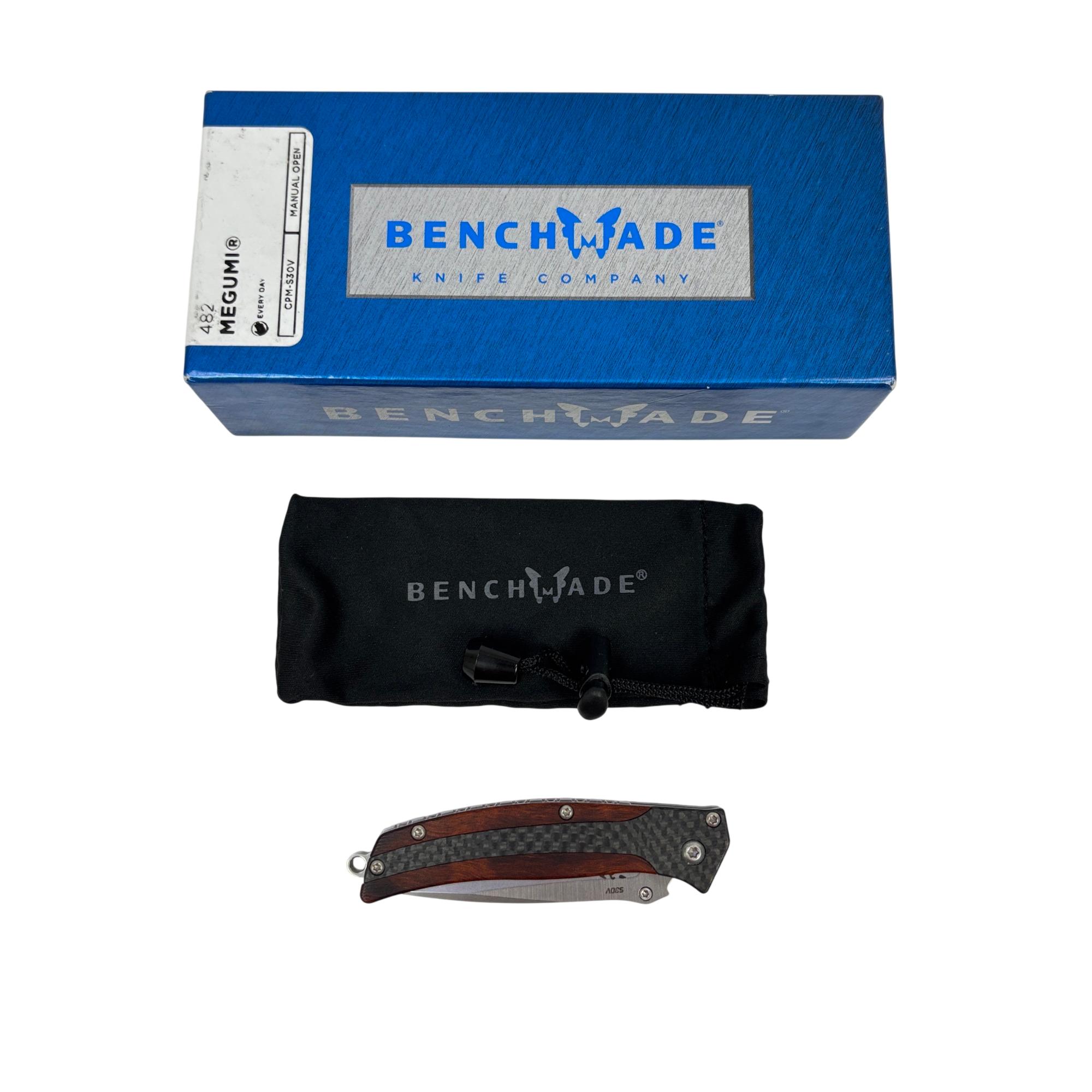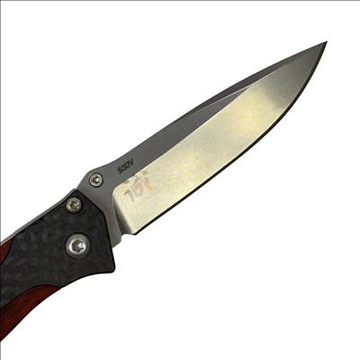 The Benchmade 482 Megumi Nakamura Design Nak-Lock CPM-S30V Pocket Knife features a high-performance CPM-S30V stainless steel blade known for excellent edge retention and corrosion resistance. Its ergonomic handle combines cocobolo wood and carbon fiber for a durable, stylish grip, while the reliable Nak-Lock mechanism ensures secure blade locking during use. Designed for everyday carry, this pocket knife blends precision craftsmanship with practical functionality.