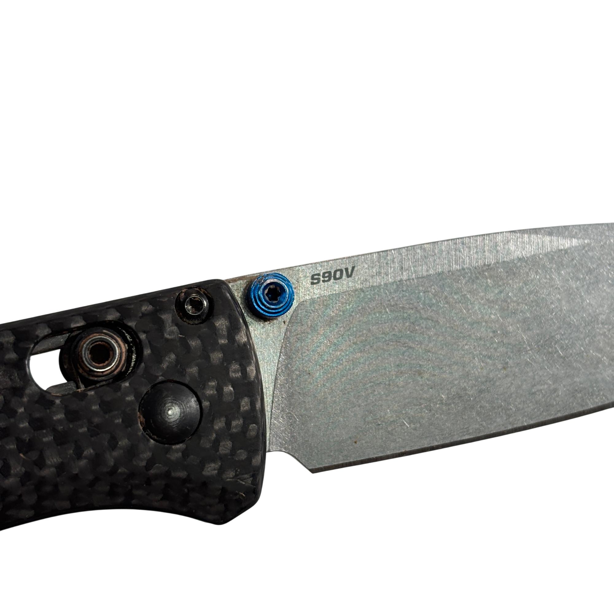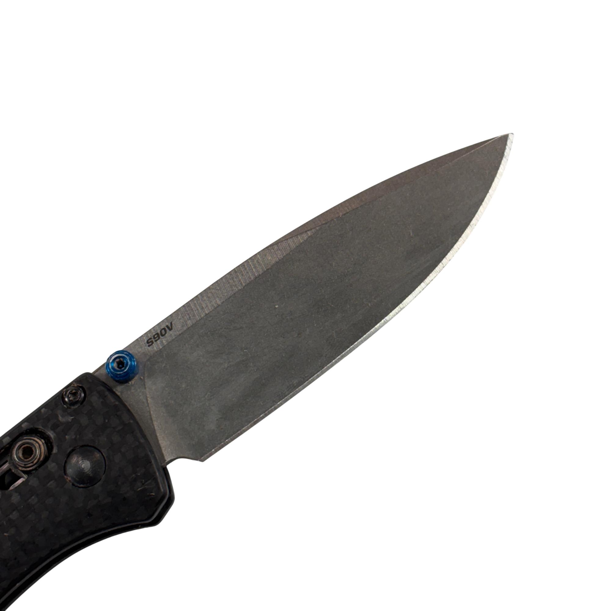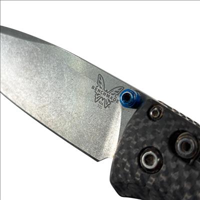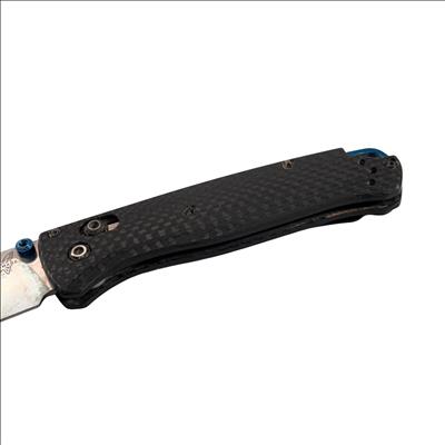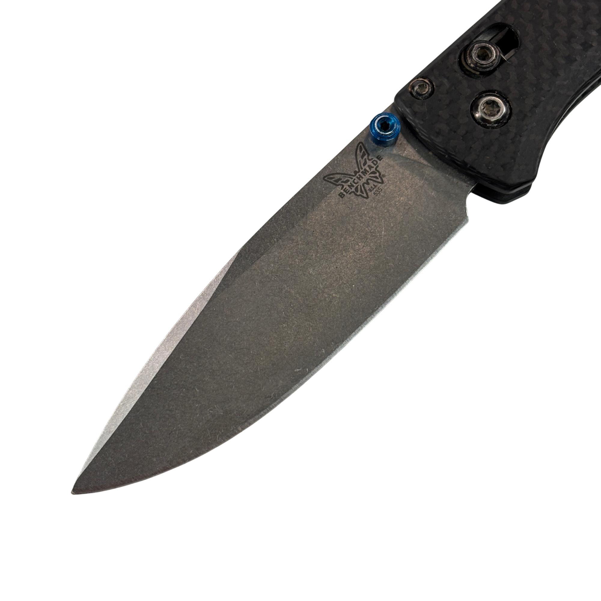 Benchmade 535-3 Bugout folding pocket knife featuring a lightweight carbon fiber handle and a slim, easy-carry profile. It has a 3.24-inch drop-point blade with a satin finish for precise cutting and everyday versatility, paired with a smooth Axis lock mechanism for secure one-handed operation. Compact when closed and comfortable in hand, this knife is designed for reliable performance with a tip-up deep-carry pocket clip for discreet everyday carry.