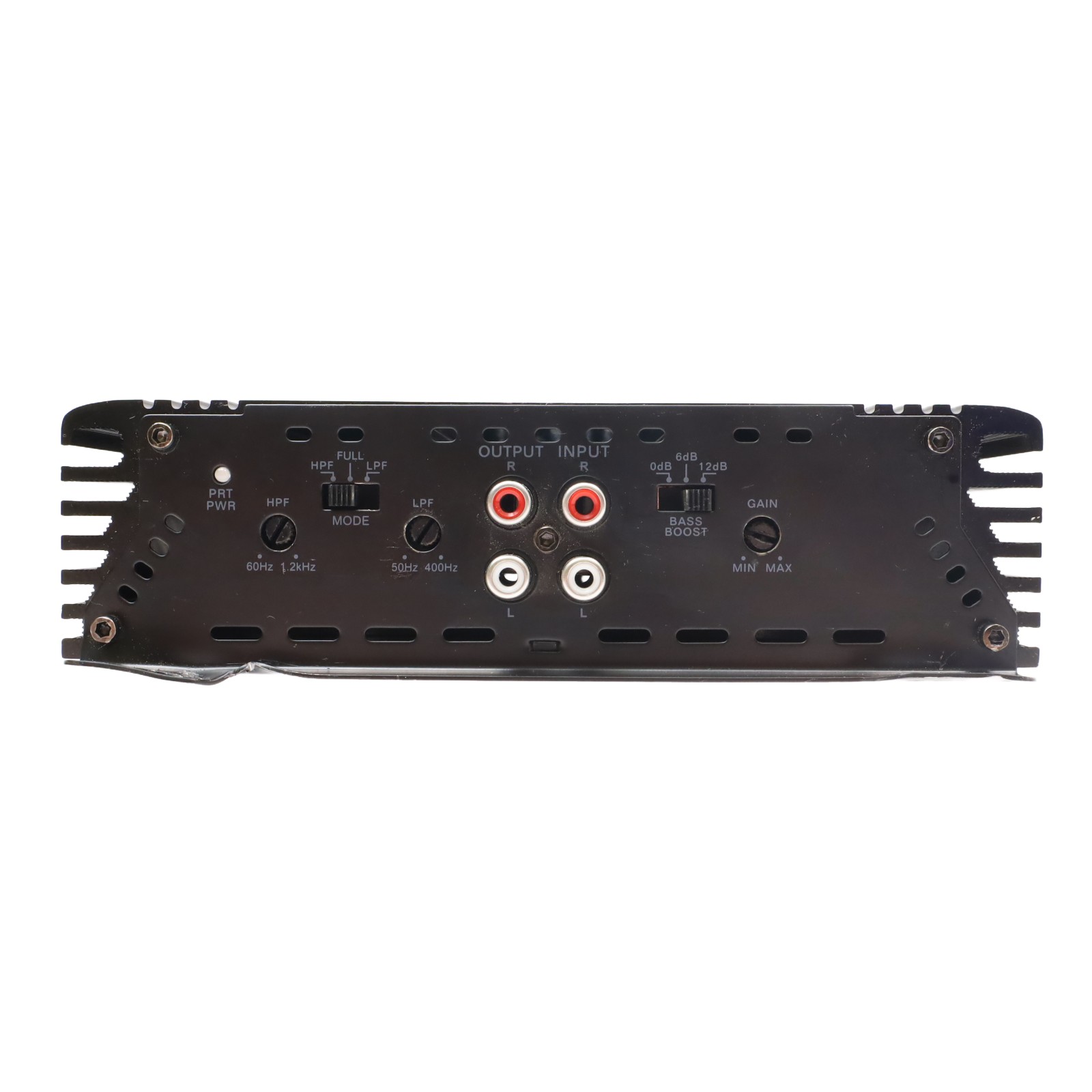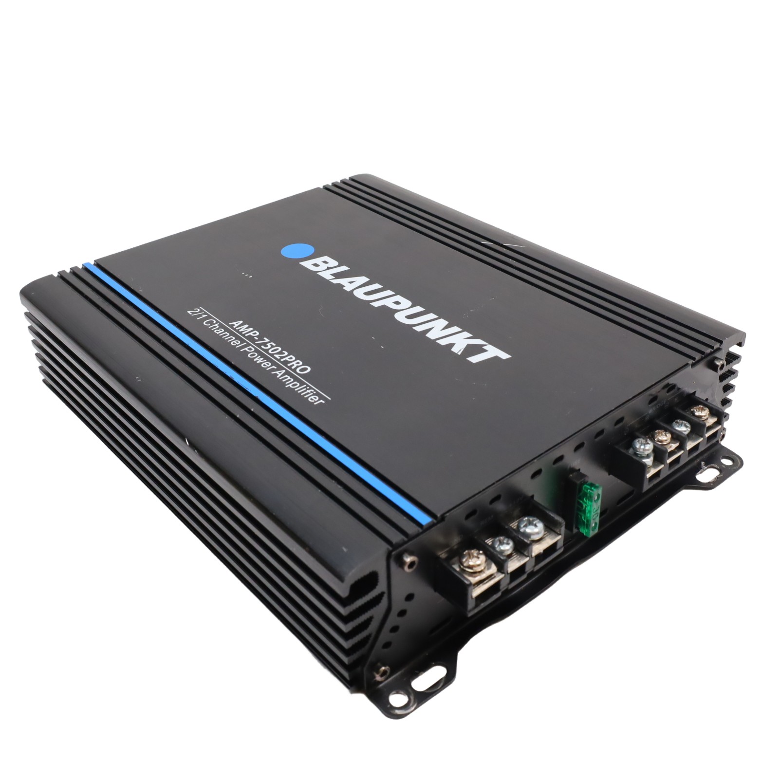 A 2-channel car audio amplifier delivering up to 750W of peak power. Utilizing a Class AB design, this amplifier prioritizes efficiency by minimizing power loss and heat generation. It provides an RMS power output of 325W x 2 at 2 Ohms and 160W x 2 at 4 Ohms, and supports a full range frequency response of 10Hz to 45kHz for detailed audio reproduction. Its compact design allows for discreet installation in various locations within a vehicle.