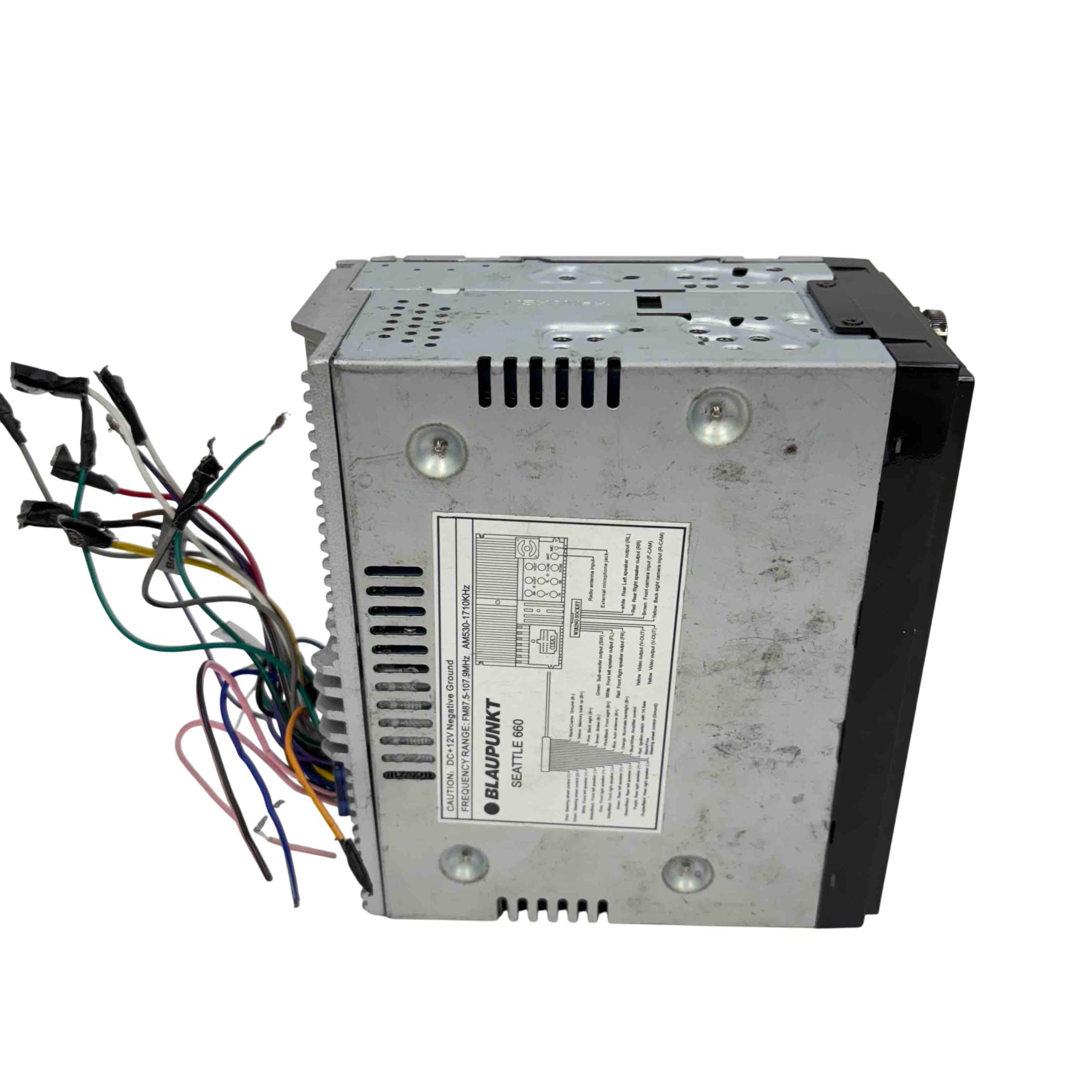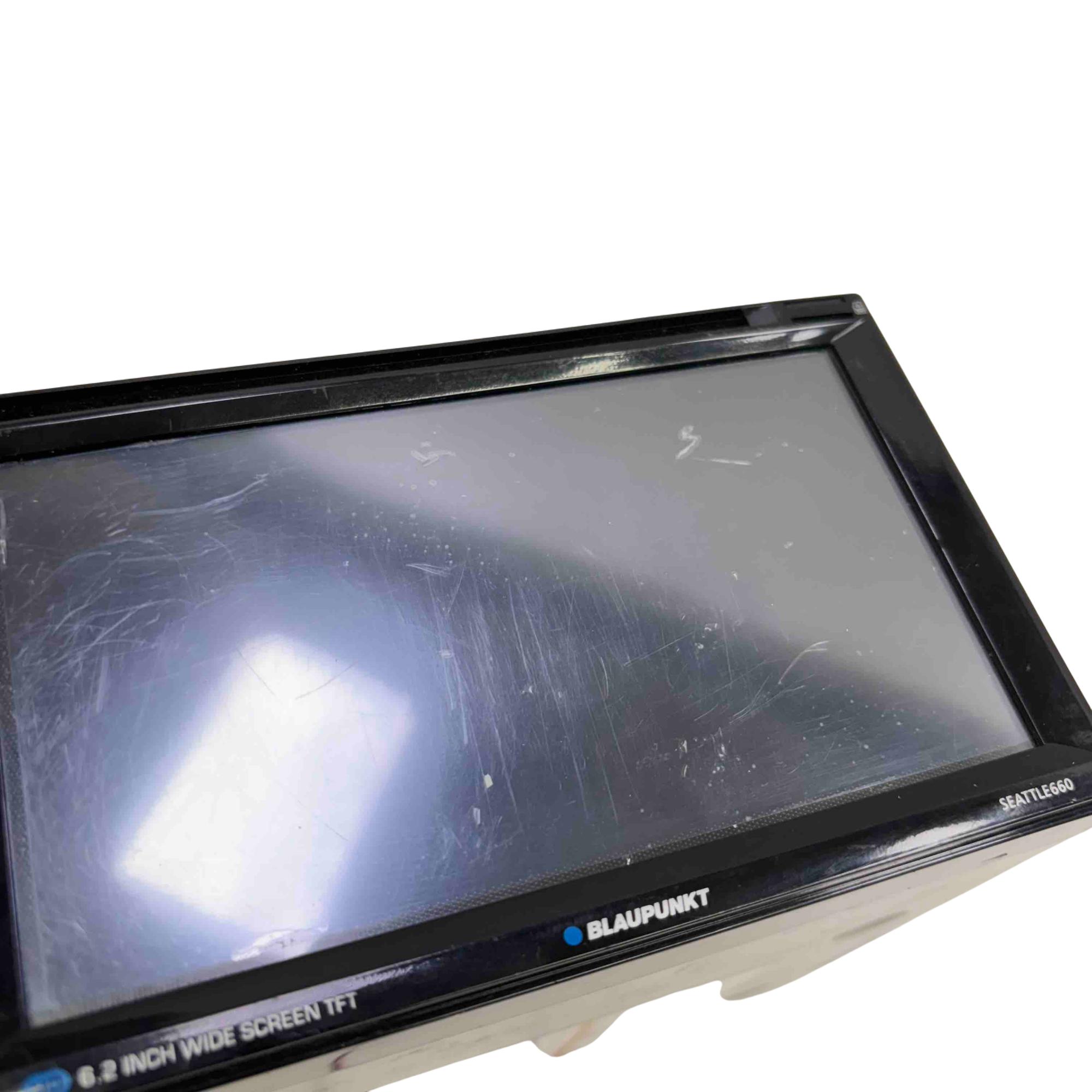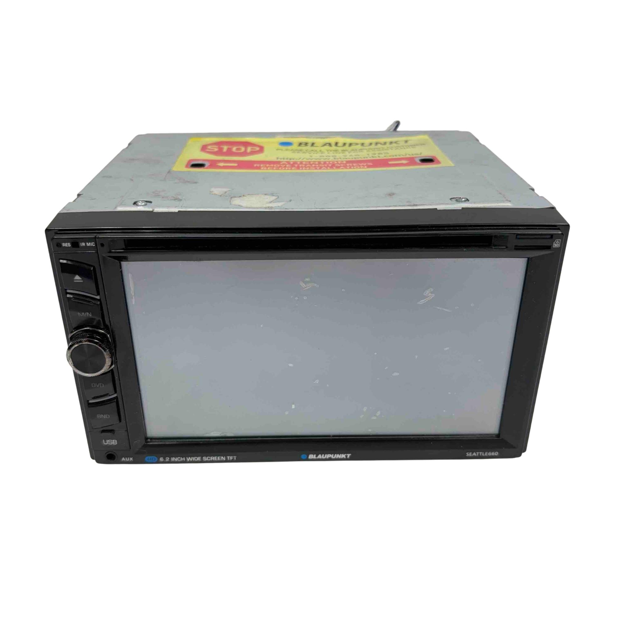 Upgrade your car audio experience with the Blaupunkt Seattle 660 Car Stereo. This sleek unit features a 6.2-inch wide TFT screen, USB and AUX inputs, and a built-in DVD player for versatile entertainment options on the go. Enjoy crystal clear sound and intuitive controls in this high-quality, lightly used device from Blaupunkt.