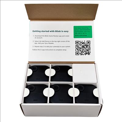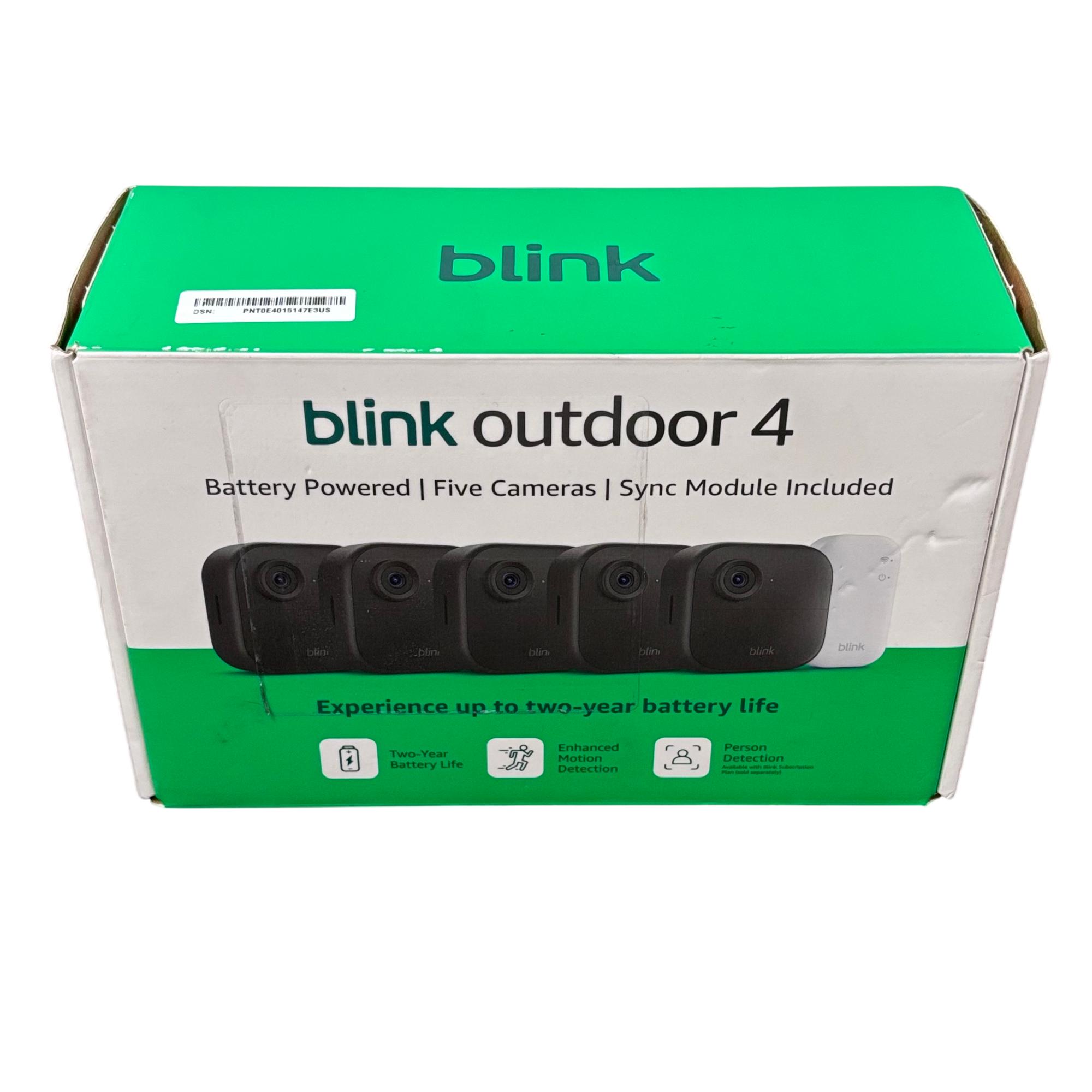 Blink Outdoor 4 Battery Powered 5-Camera Security System with Sync Module Included offers a wireless smart security solution designed for easy installation almost anywhere around your property. This system features HD live view and two-way talk functionality accessible through a dedicated app, providing clear video and communication capabilities. Its weather-resistant design ensures reliable outdoor monitoring in various conditions while delivering advanced motion detection for enhanced home security.