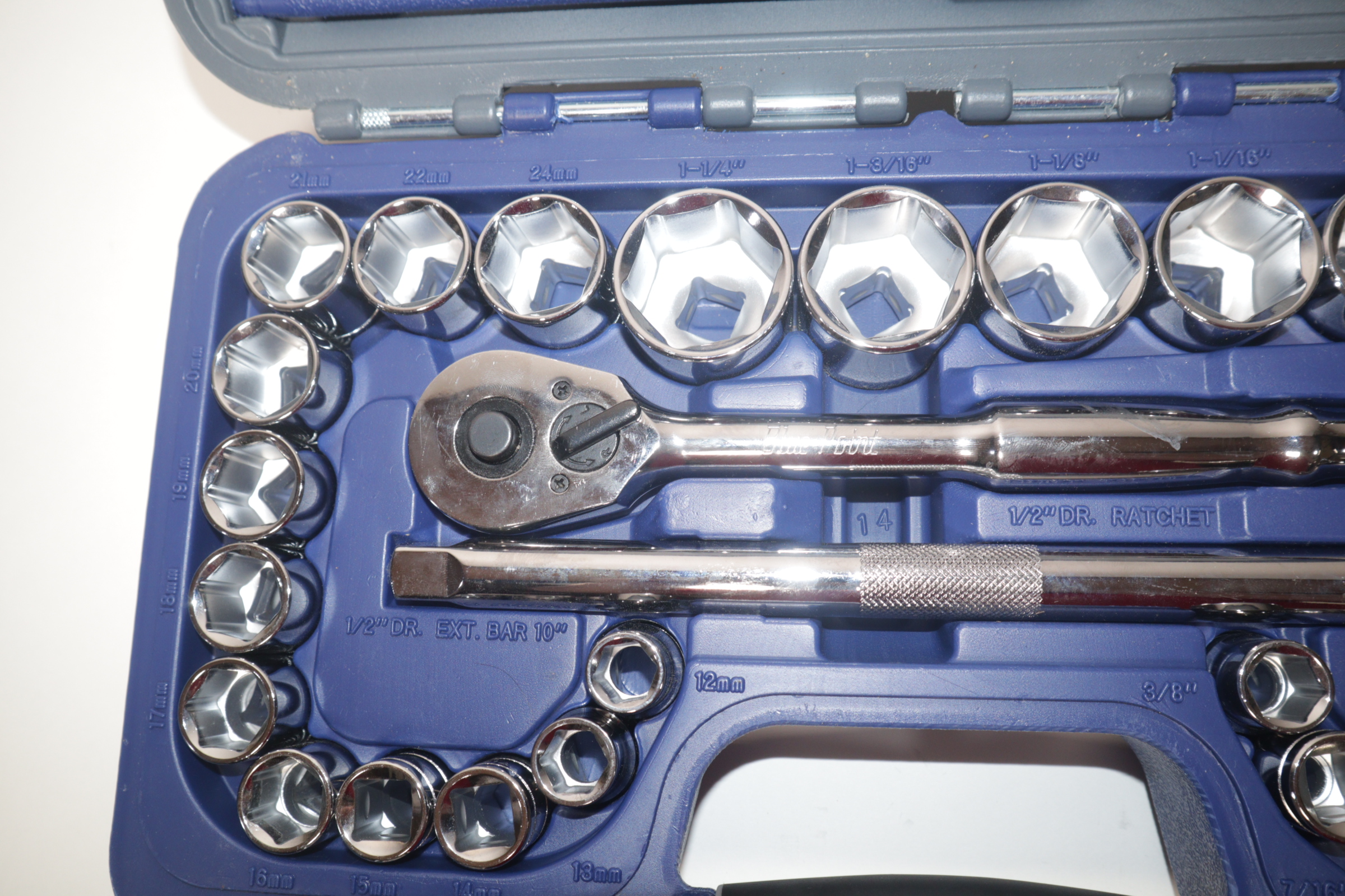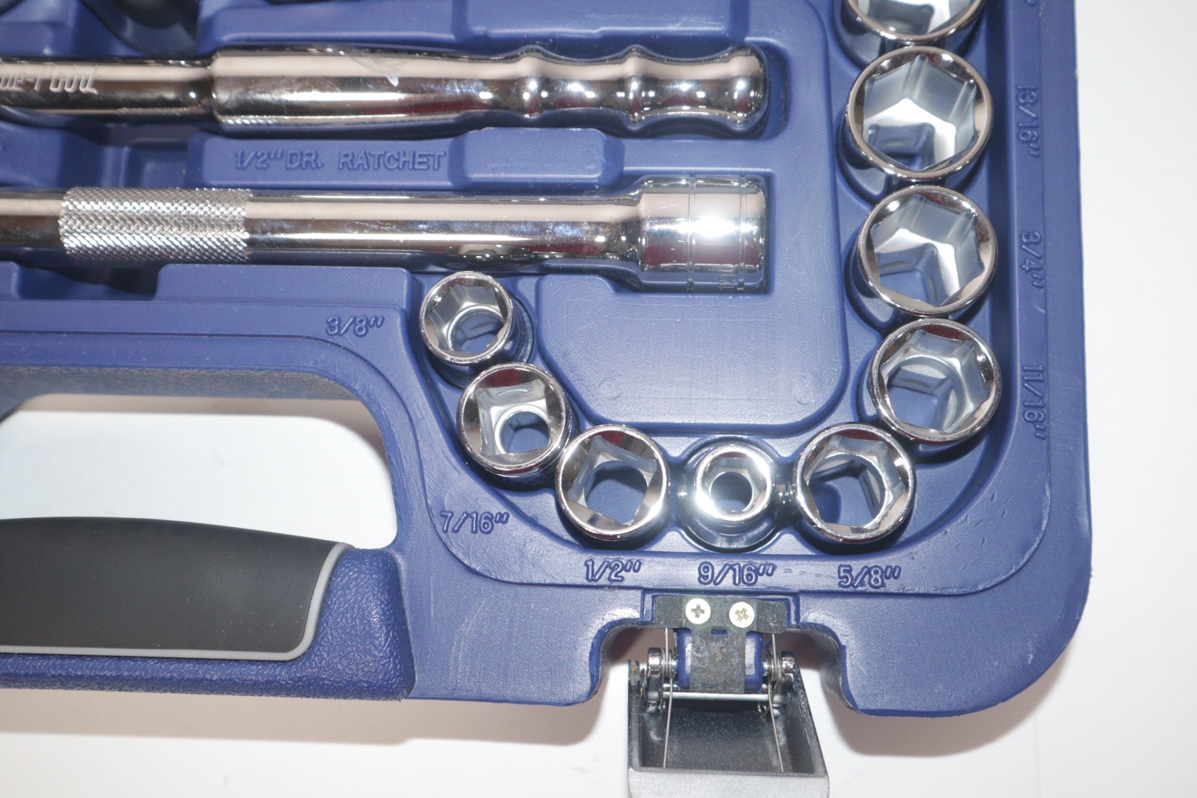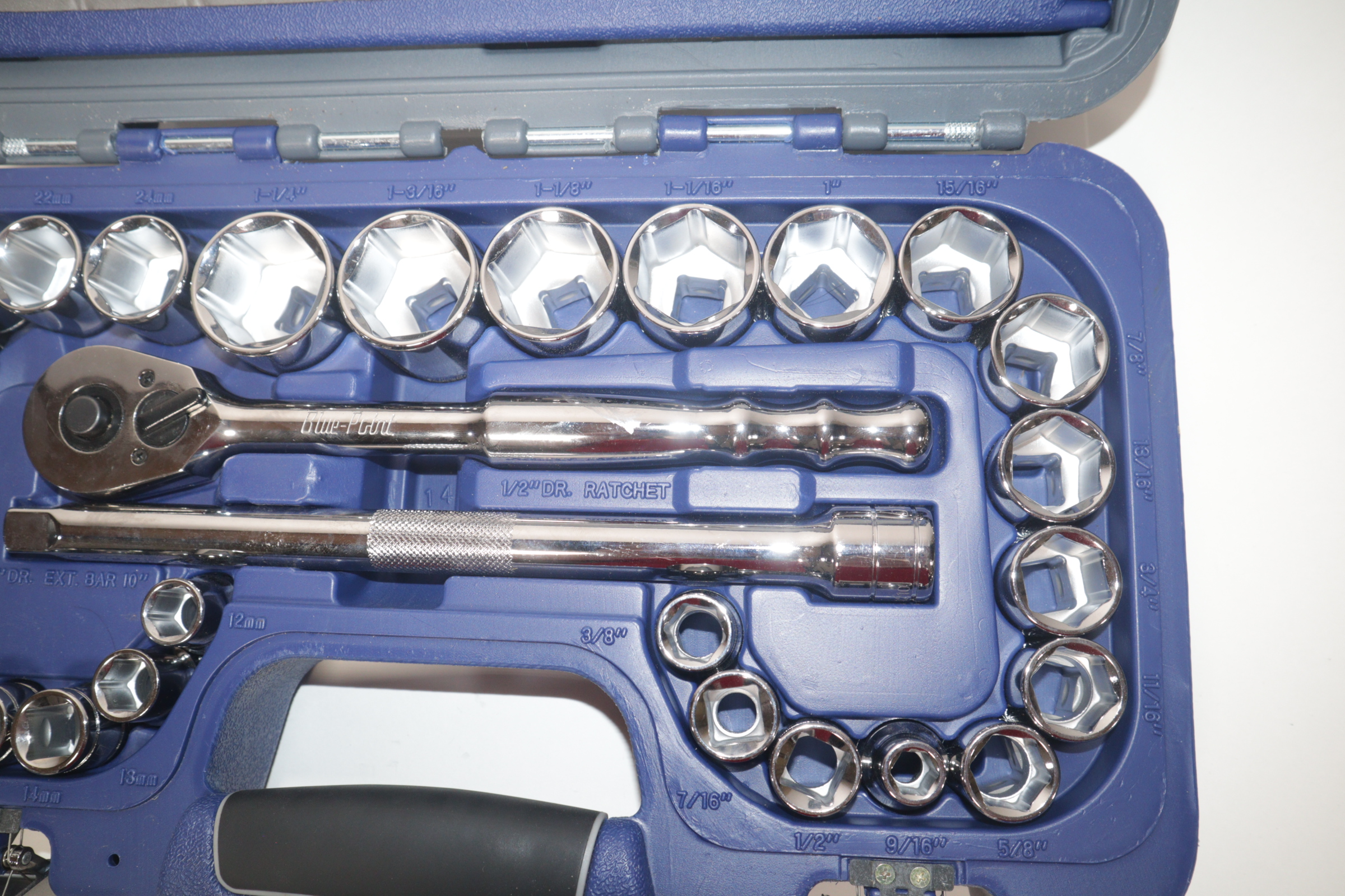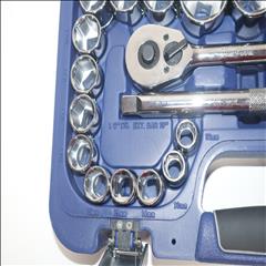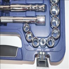 Includes (15) SAE (3/8-1-1/4") (12) Metric (12-24 mm) Standard Sockets, Breaker Bar, Universal Joint, Quick-Release Ratchet and (3) Extensions (3, 6 and 10")
