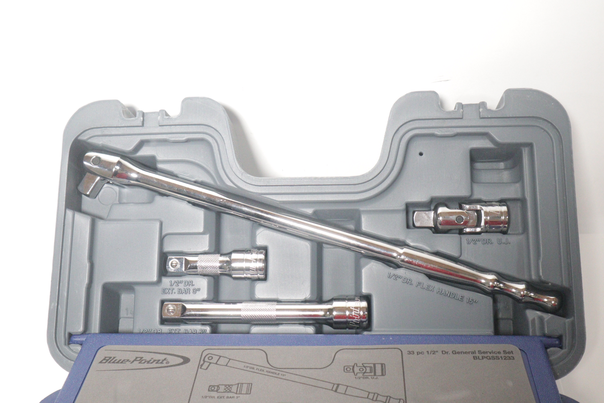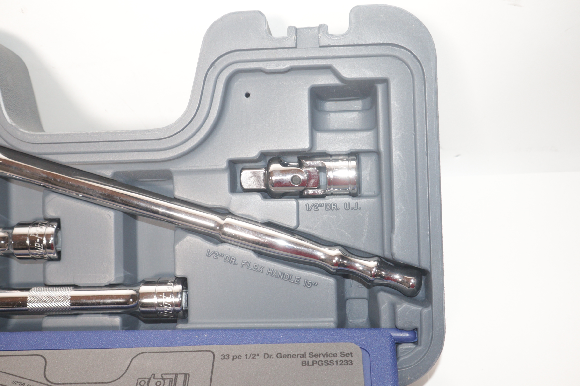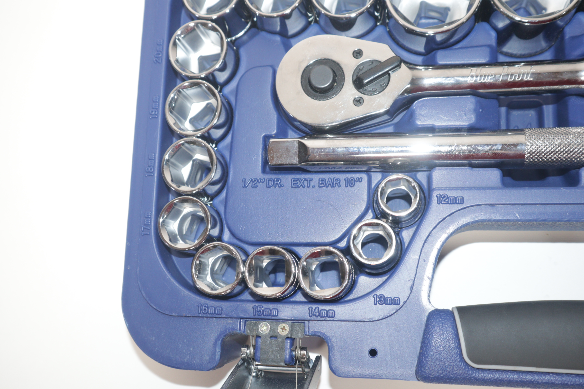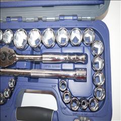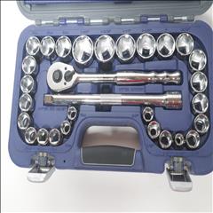 Includes (15) SAE (3/8-1-1/4") (12) Metric (12-24 mm) Standard Sockets, Breaker Bar, Universal Joint, Quick-Release Ratchet and (3) Extensions (3, 6 and 10")