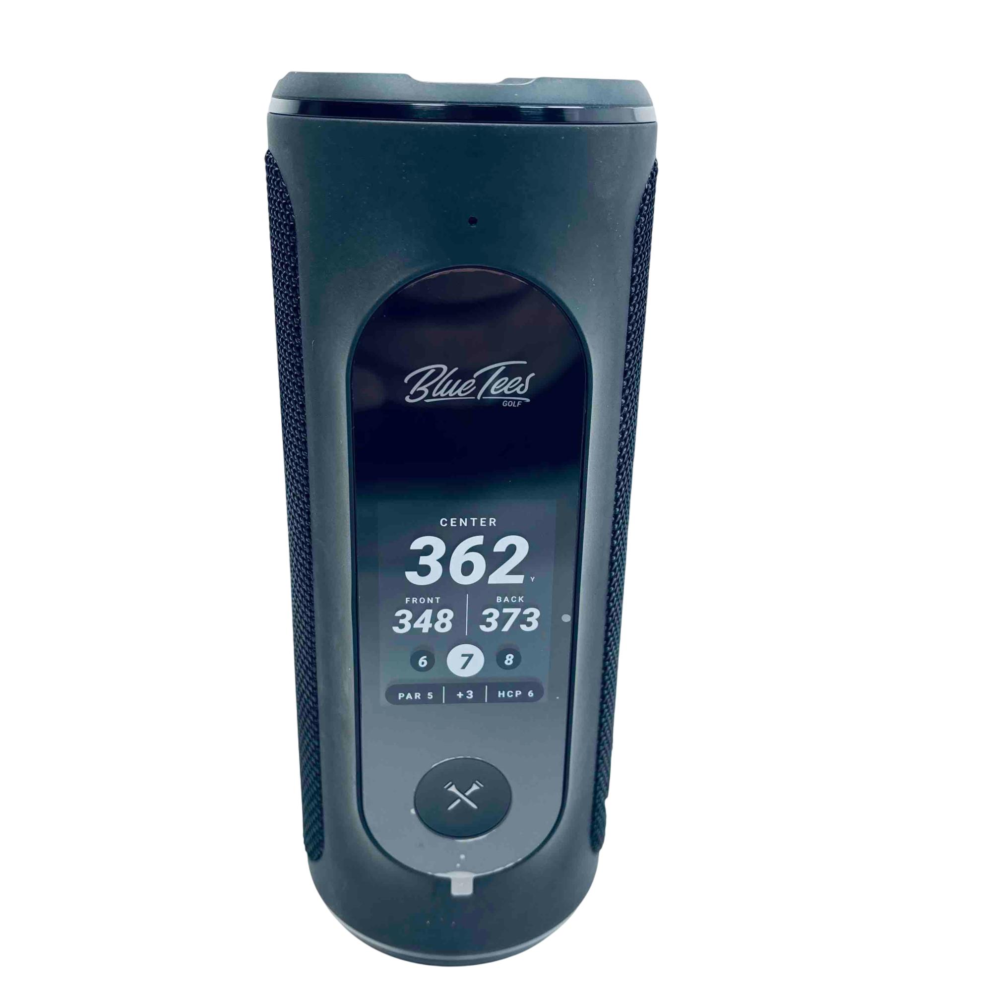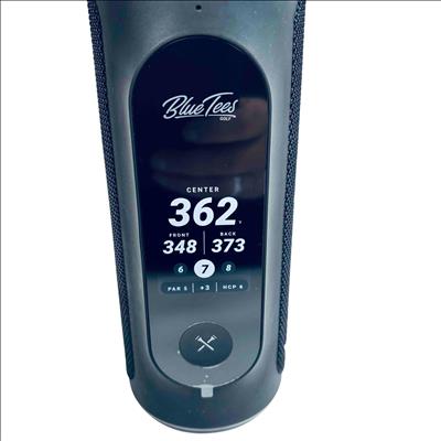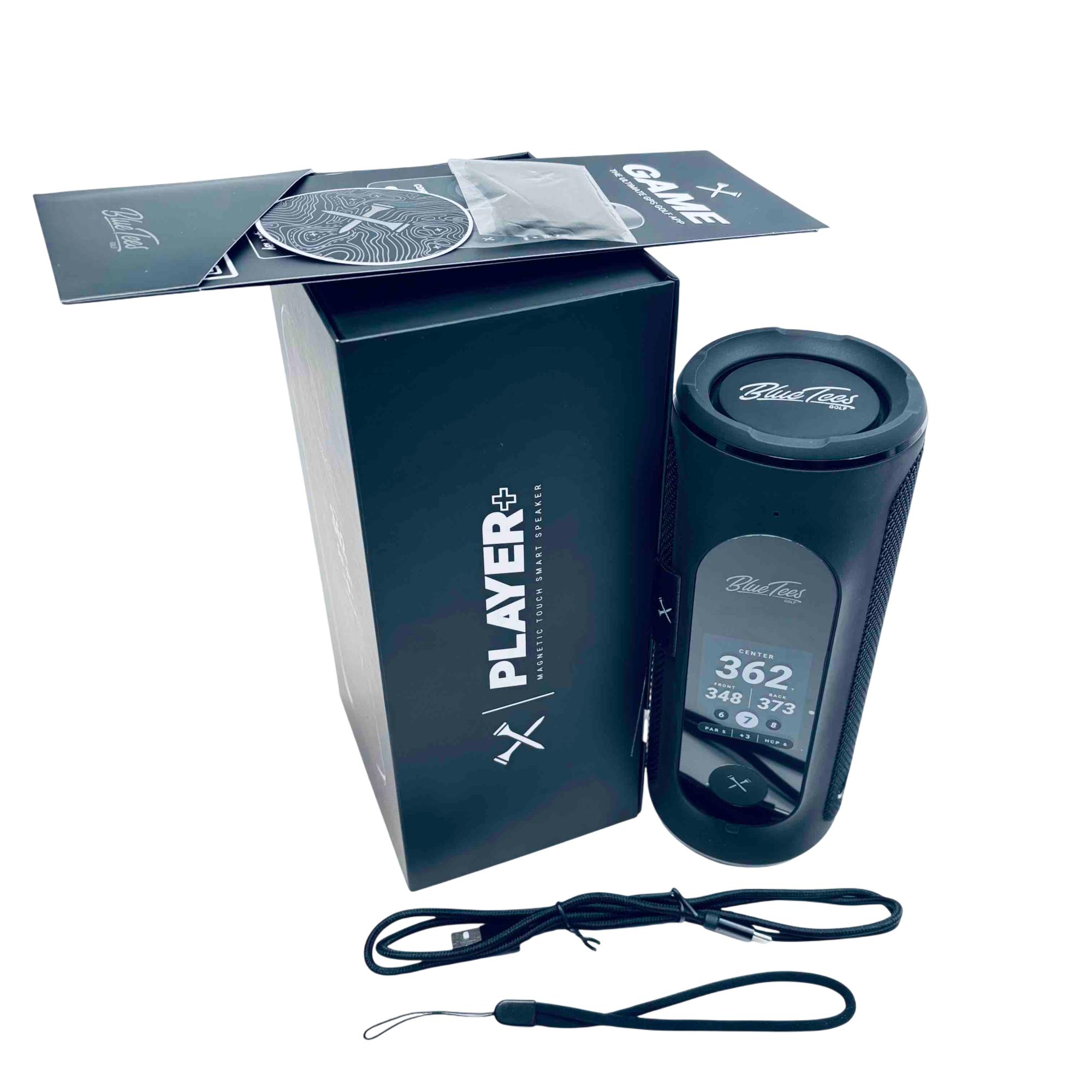 Blue Tees Golf Player+ Magnetic Touch Smart Speaker is a portable Bluetooth device designed for golfers, featuring a magnetic touch interface and GPS functionality to enhance your game. This smart speaker displays critical golf data such as hole numbers, par, handicap, and yardages, making it an essential gadget for on-course strategy and real-time course information.