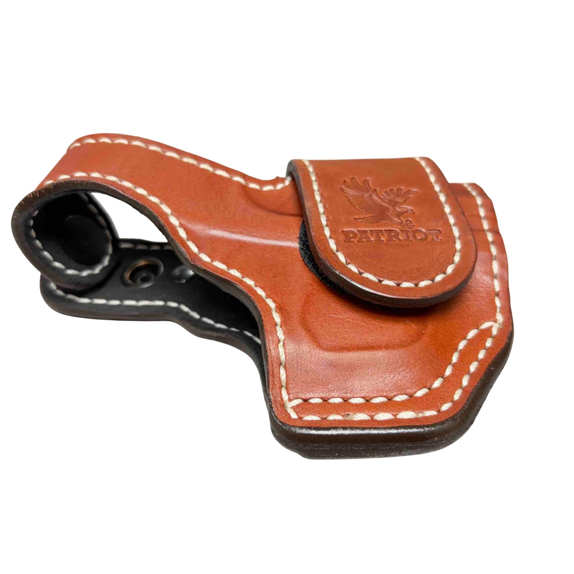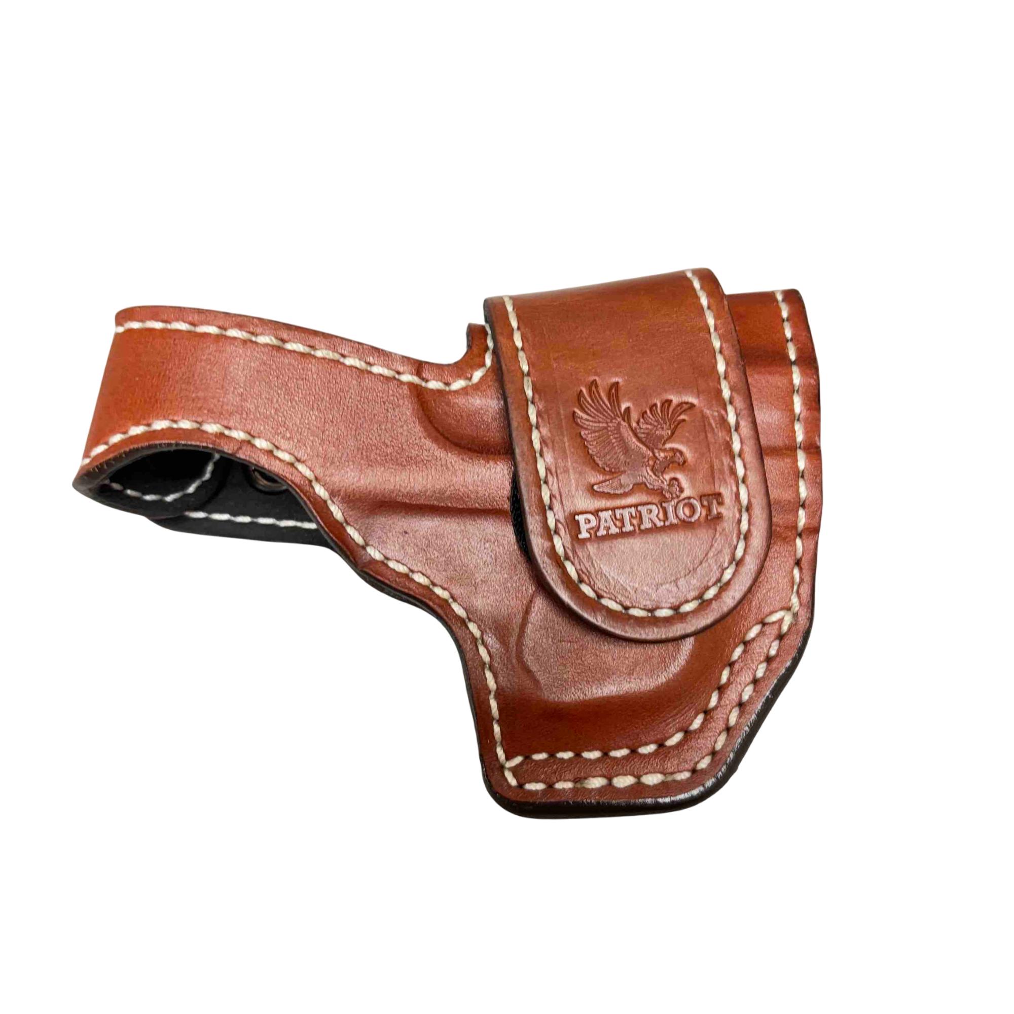 Show off your patriotism while ensuring your gun is securely and stylishly holstered with the Bond Arms Baht Patriot Gun Holster. Crafted from premium brown leather with intricate white stitching, this holster features an elegant eagle logo that adds a touch of class to your everyday carry. Built for durability and comfort, its an essential accessory for responsible gun owners who appreciate style and functionality.