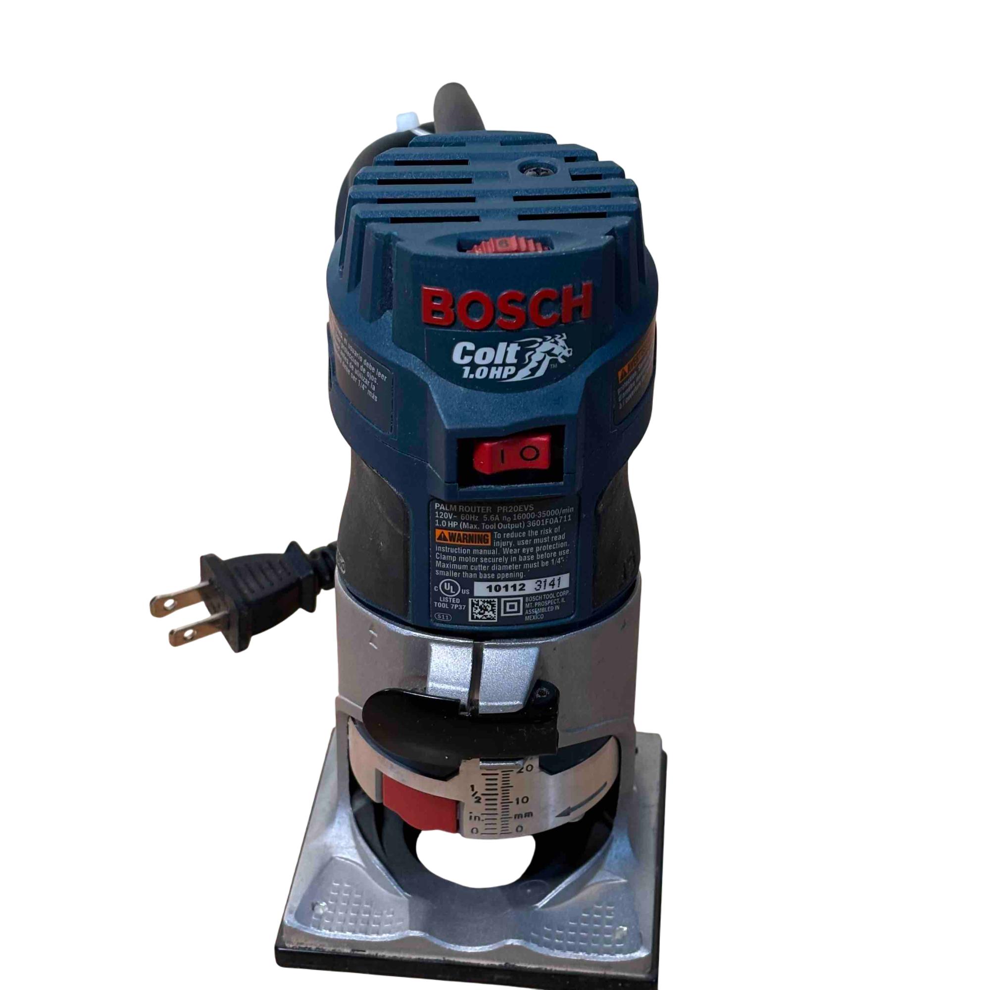 The Bosch Colt PR20EVS Palm Router is a compact, professional-grade woodworking tool featuring a powerful 1.0 HP motor, variable speed, and rugged construction. Ideal for precision edge forming and trimming, this versatile router ensures clean results and top-tier control for any woodworking project. Comes with a durable carrying case, perfect for both hobbyists and professionals seeking reliability and portability.