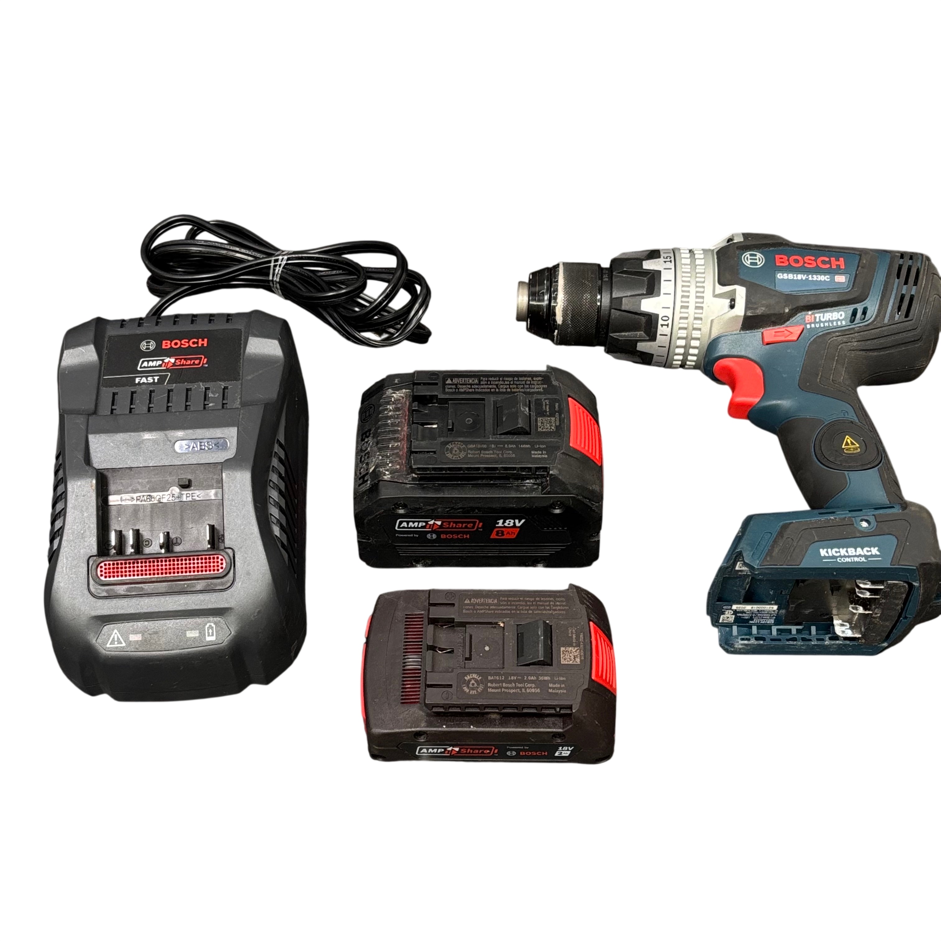 The Bosch GSB18V-1330C Cordless Hammer Drill is a powerful 18V tool equipped with BITURBO brushless motor technology for enhanced performance and durability. Featuring a 1/2 inch (13mm) keyless chuck and kickback control for safety, this drill is designed for heavy-duty drilling and fastening tasks. The set includes an 8Ah high-capacity battery, a 2Ah battery, and a fast charger, providing extended runtime and convenience. Ideal for professionals and serious DIYers, this hammer drill delivers reliable power and precision in a compact, ergonomic design.