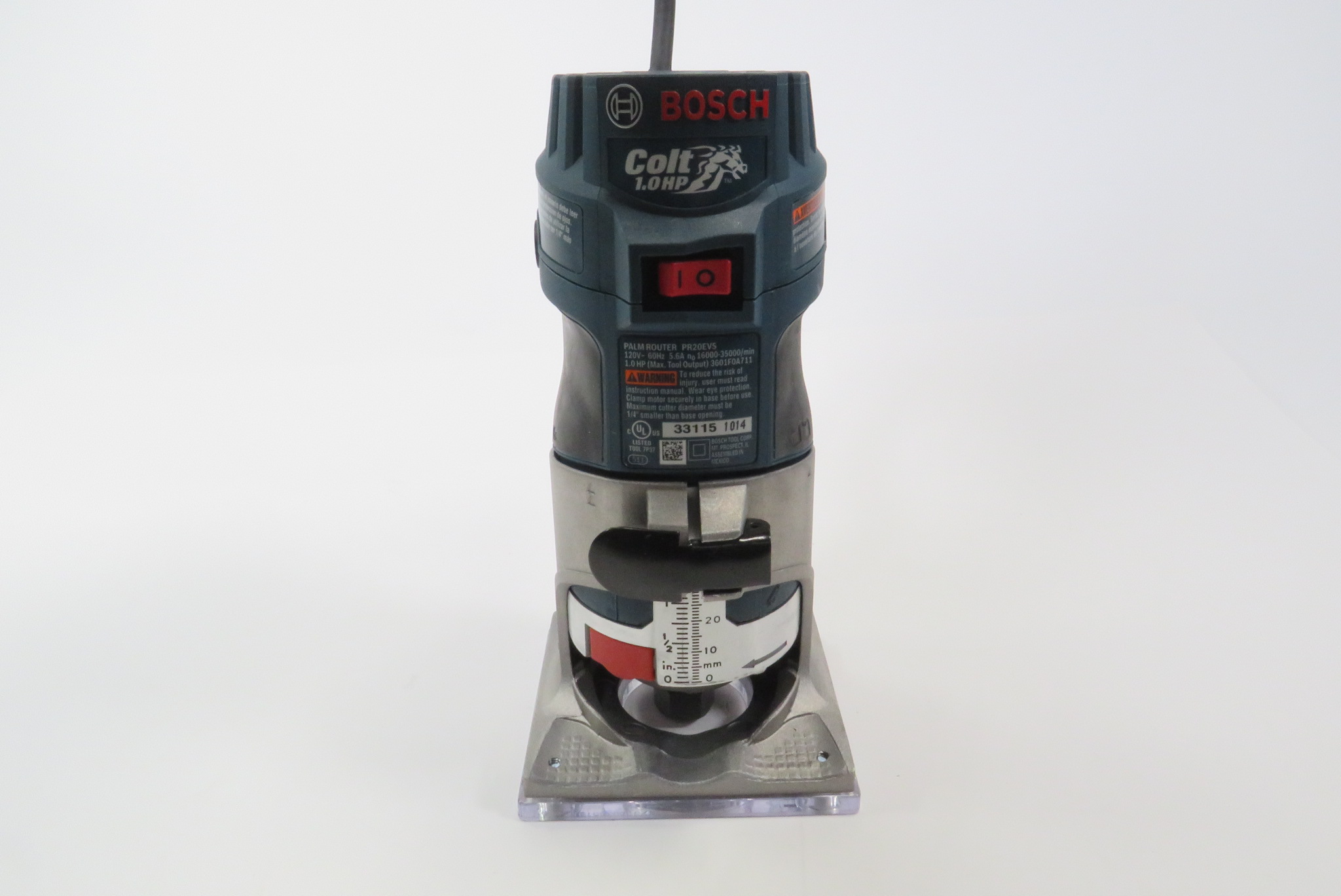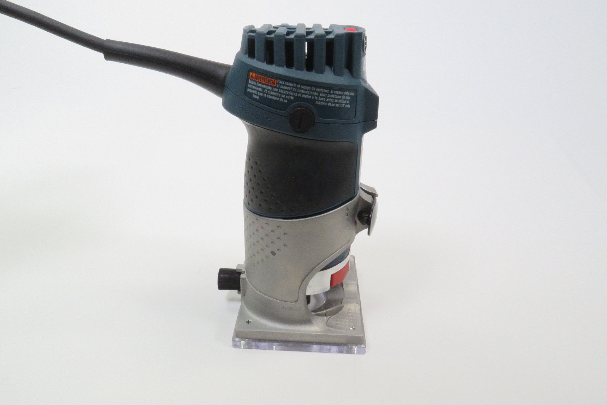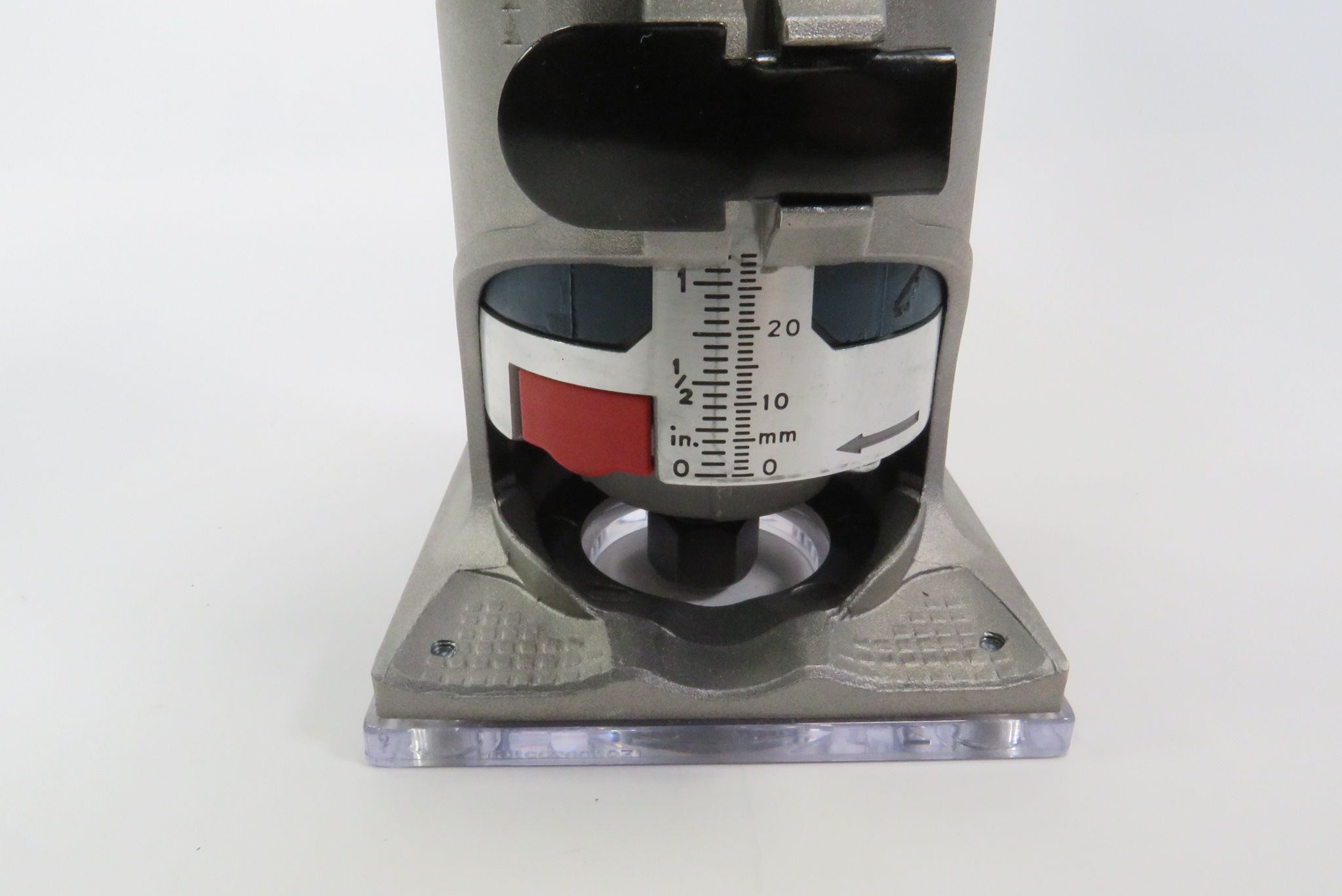 Combines power, precision and versatility in a small-sized tool. It has a 1.0 HP, 5.6 Amp motor that spins at a variable speed of 16,000 to 35,000 RPM. The variable speed dial is conveniently mounted on top of the tool body. The router features Constant Response circuitry, which maintains a consistent speed by detecting heavy loads and increasing power to maintain the selected RPM. It features soft-start circuitry, which reduces startup torque. Additionally, depth adjustment is simple; just align and lower the motor and then lock the router in position with the clamping level. Micro-fine adjustments are equally effortless, thanks to the wheel on the back of the router's base. It accepts standard 1/4 In. bits for flexibility, with an impressive max cutter diameter of 1-5/16 In. The motor housing has a palm-shaped, rubber over-molded grip that allows for comfortable operation.