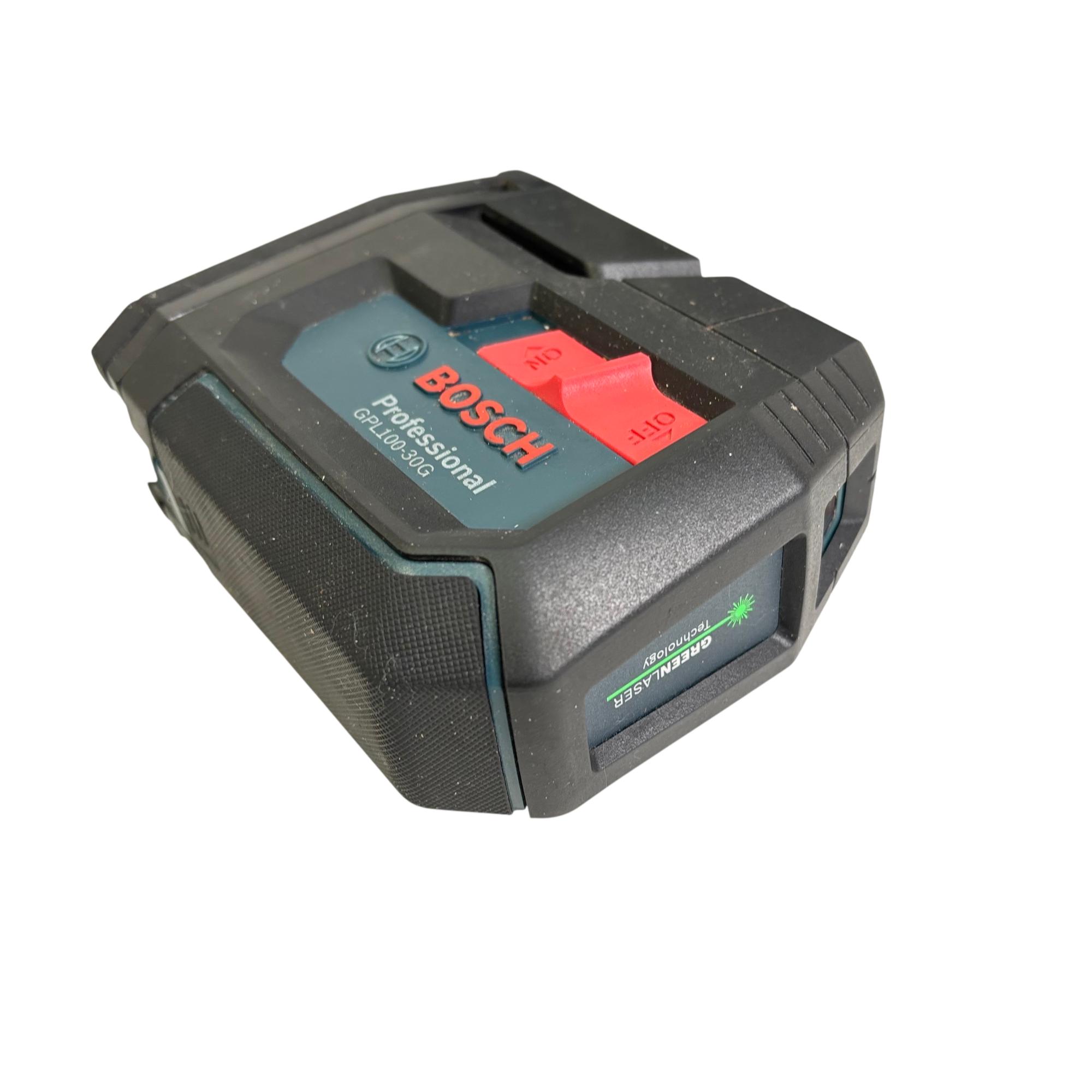 Bosch Professional GPL100-30G 3-Point Green-Beam Self-Leveling Laser Level delivers precise, bright green laser lines for accurate alignment and layout tasks. This professional-grade device features three distinct laser points with self-leveling capability, making it ideal for construction and interior applications requiring high visibility and accuracy.