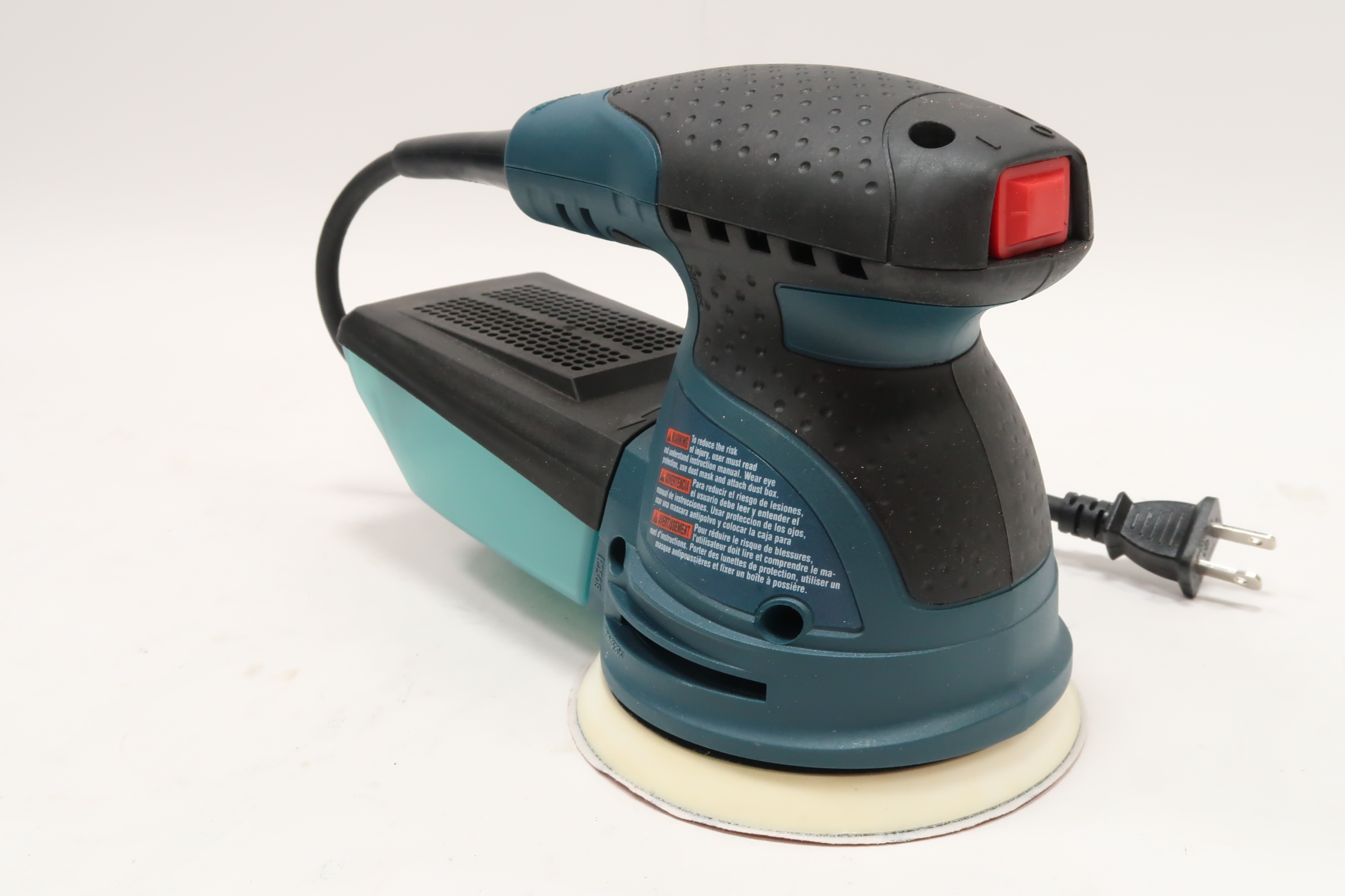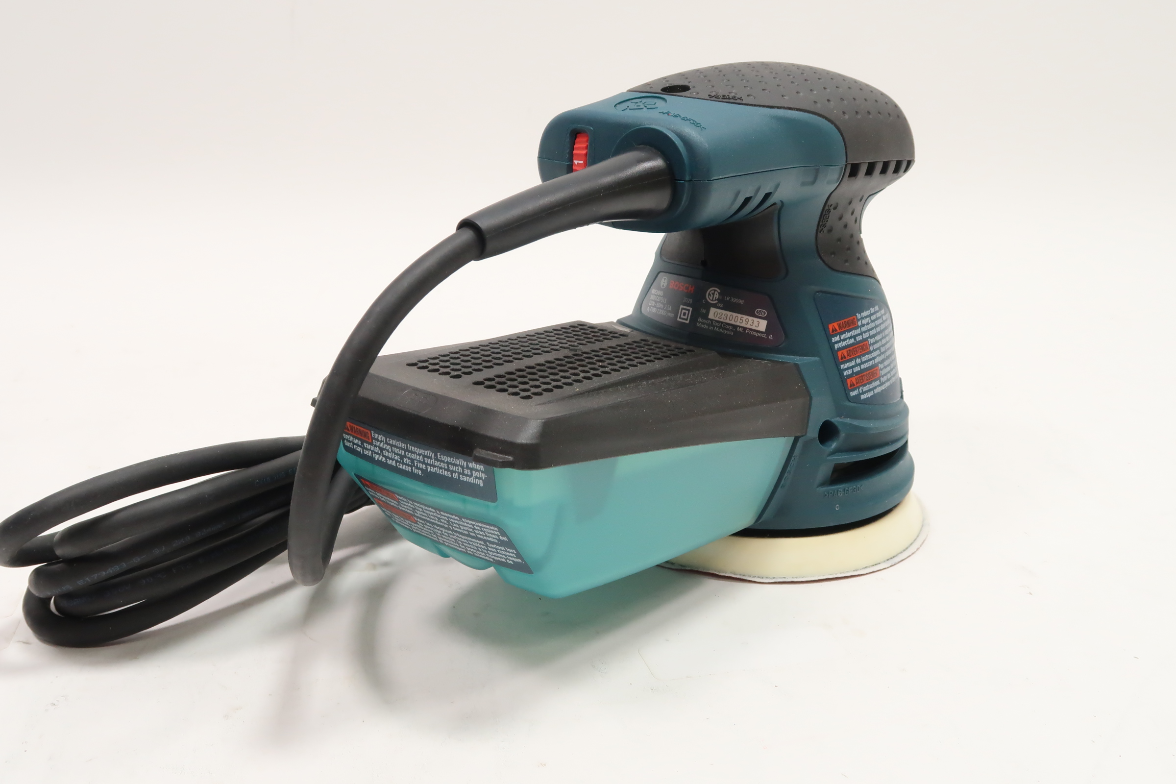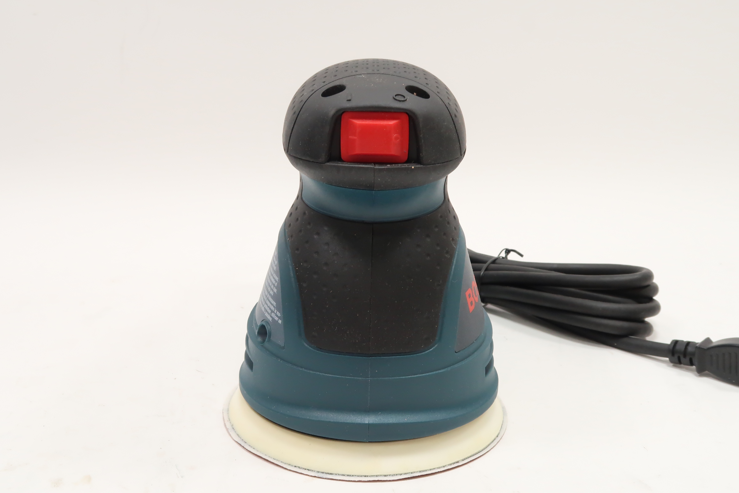 The Bosch ROS20VSC 5 In. Random Orbit Sander/Polisher delivers fast removal and a well-blended, ultra-smooth finish, so woodworkers and finish carpenters can sand quickly and to exacting standards. It is designed to eliminate swirl marks on the workpiece, thanks to an integral pad dampening braking system. Bosch’s hook-and-loop disc attachment ensure firm grip of the disc during use. Additionally, the microcellular backing pad is pliable to ensure a smooth, fine finish on both flat and contoured surfaces alike. With a comfortable soft-grip top and body design, this tool has variable-speed control from between 7,500 and 12,000 OPM to match the speed to the task.