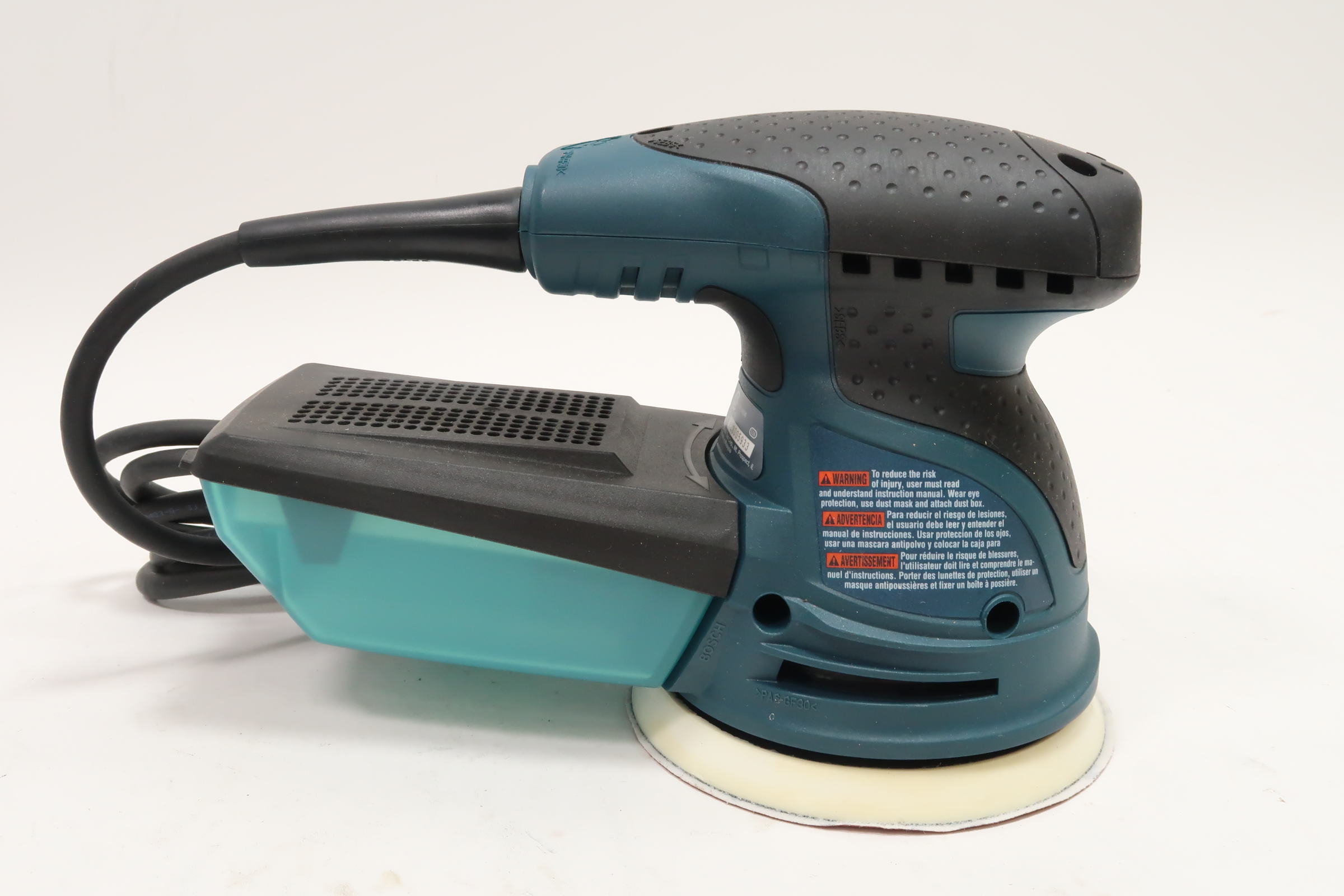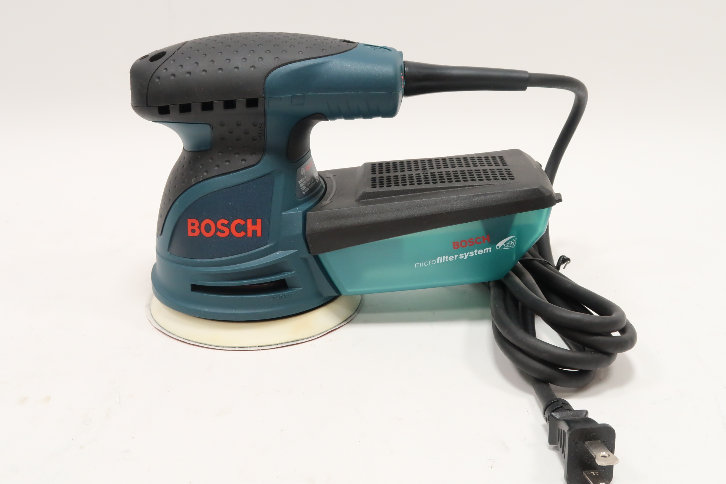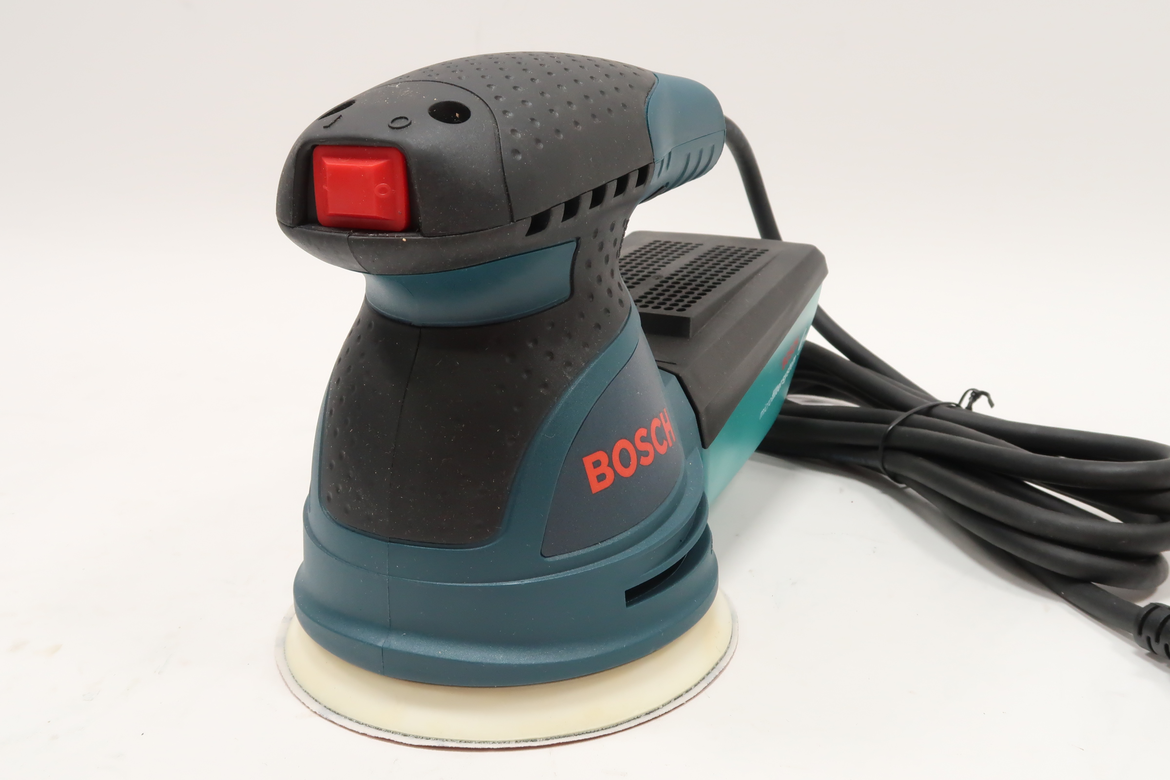The Bosch ROS20VSC 5 In. Random Orbit Sander/Polisher delivers fast removal and a well-blended, ultra-smooth finish, so woodworkers and finish carpenters can sand quickly and to exacting standards. It is designed to eliminate swirl marks on the workpiece, thanks to an integral pad dampening braking system. Bosch’s hook-and-loop disc attachment ensure firm grip of the disc during use. Additionally, the microcellular backing pad is pliable to ensure a smooth, fine finish on both flat and contoured surfaces alike. With a comfortable soft-grip top and body design, this tool has variable-speed control from between 7,500 and 12,000 OPM to match the speed to the task.