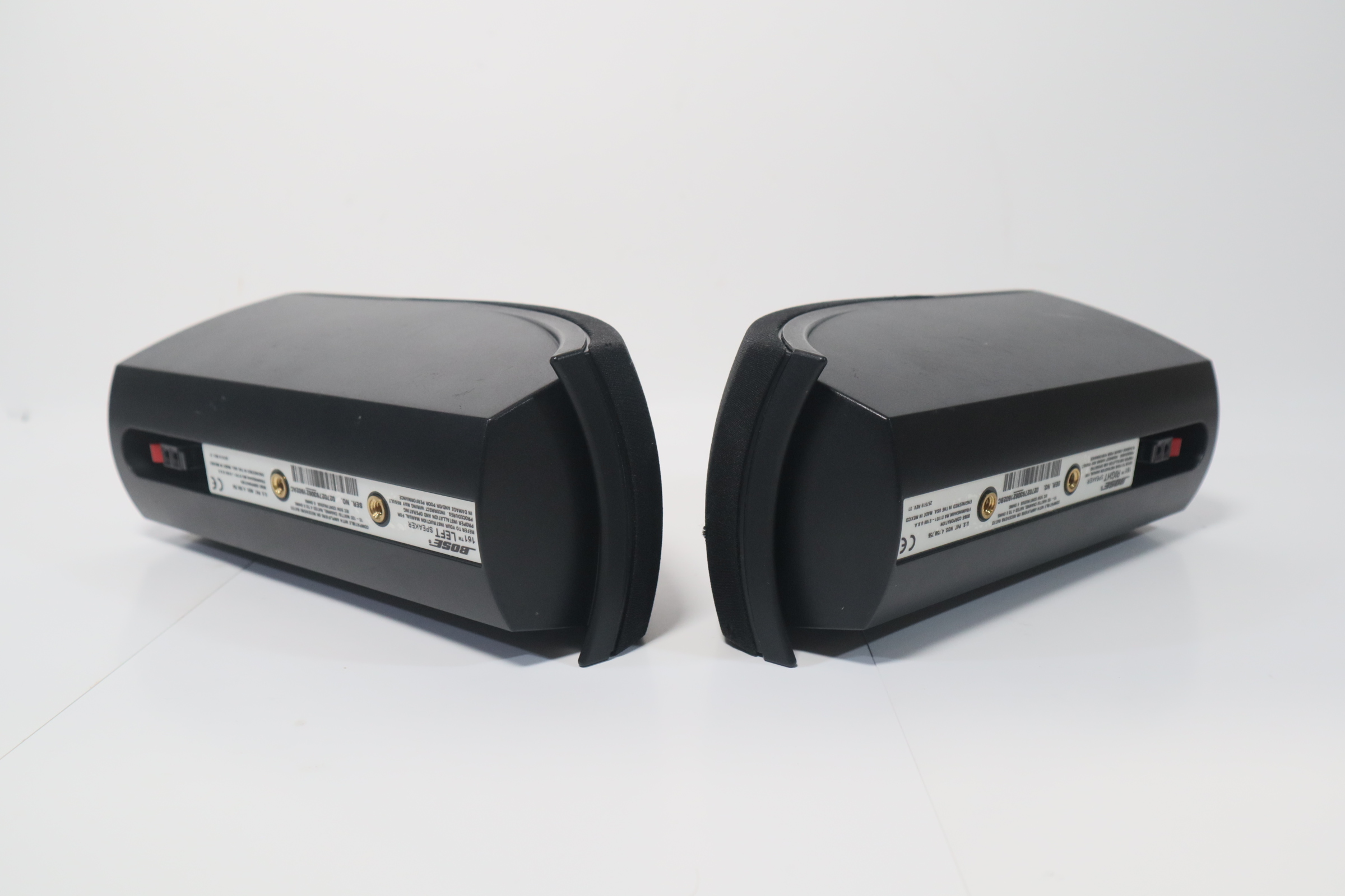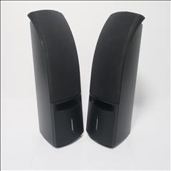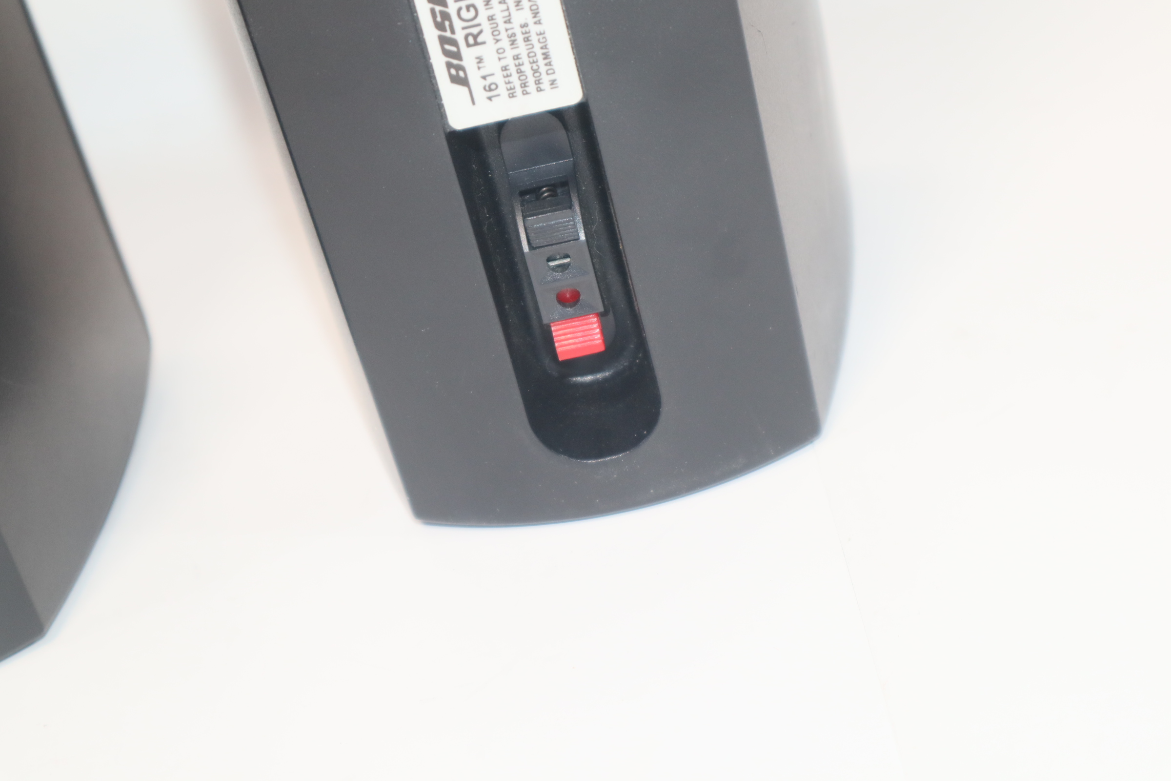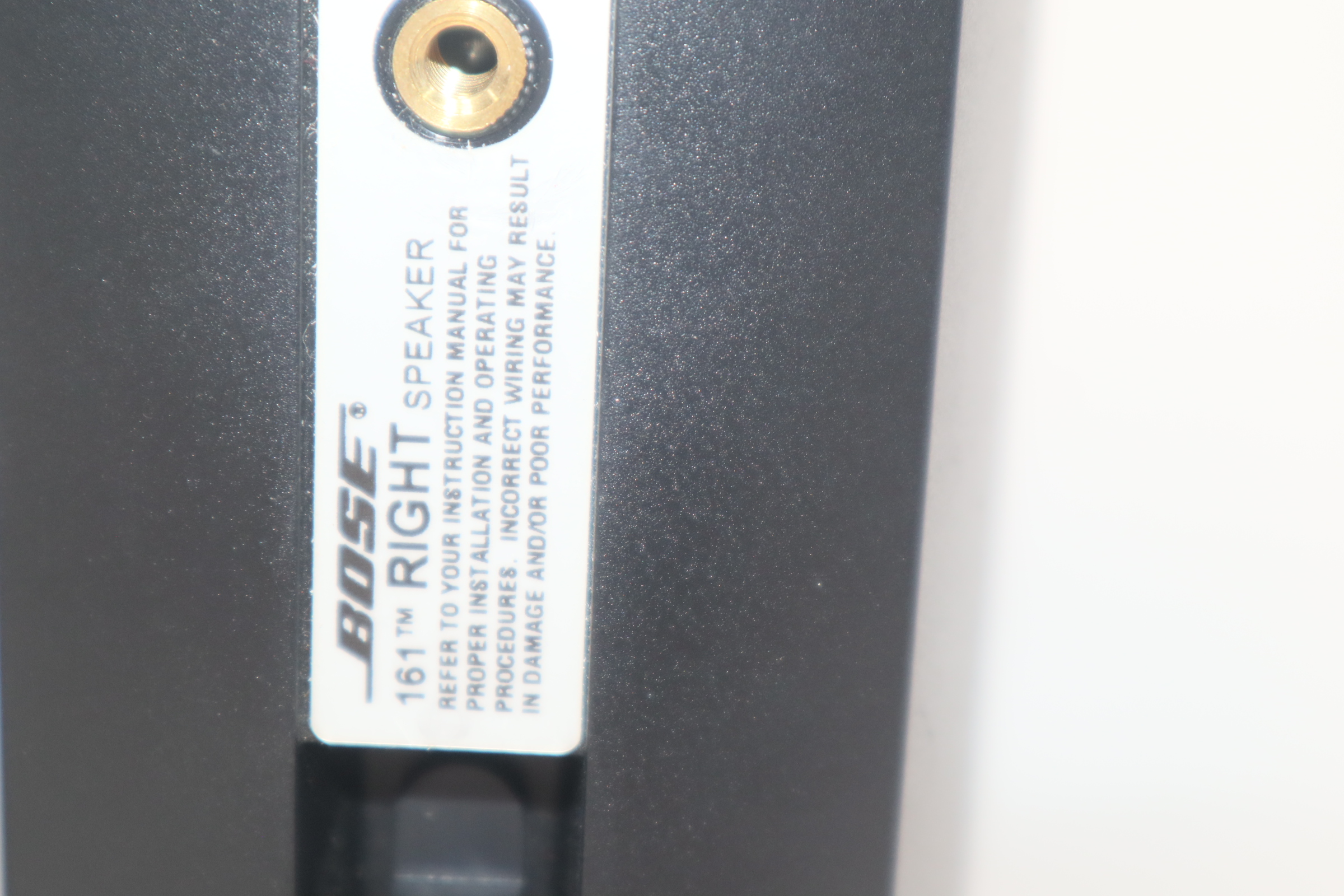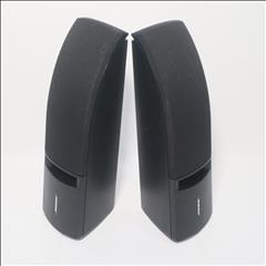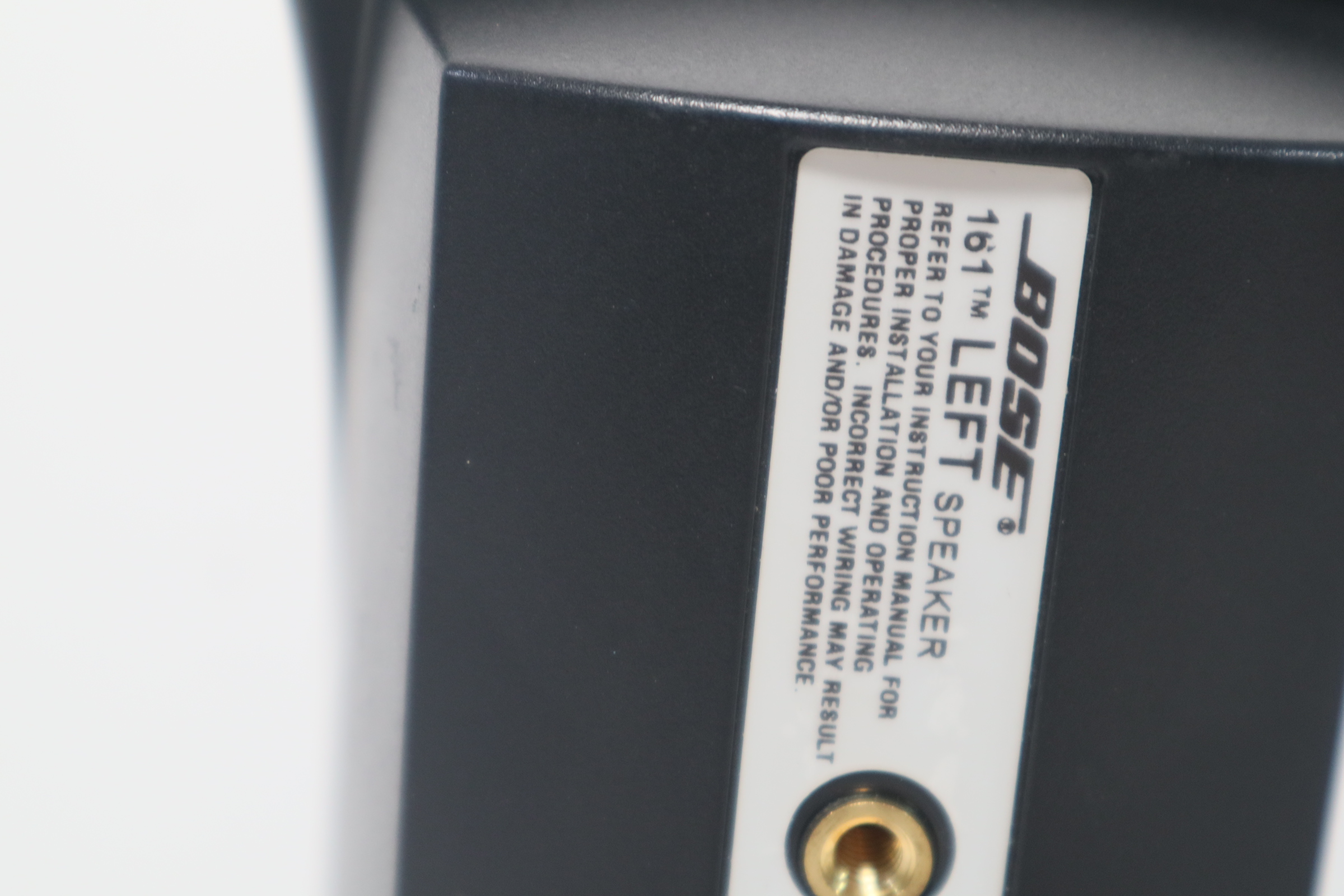 Enjoy rich, full sound from music or movies with this compact pair of sleek Bose speakers. Whether placed on a desk or bookshelf or mounted on a wall for use as surround speakers, these speakers are designed to deliver balanced, spacious sound with minimal or moderate amplifier power (10 to 100 watts per channel). Automatic protection circuitry keeps the speaker drivers from being overdriven, heightening the speakers' reliability without interfering with your listening. Bose 161 speakers in black If you'll be using them in a home-theater capacity, keep in mind that they're designed to blend seamlessly with the Bose VCS-10 center-channel speaker and any Direct/Reflecting Bose speaker system. Unlike conventional speakers, which radiate sound in a single direction, these speakers use Articulated Array driver positioning and Stereo Everywhere technology to deliver balanced sound throughout your listening area. Further, Bose's two 2.5-inch proprietary Twiddler drivers per speaker move more air from their small enclosures than similarly sized conventional drivers, creating a sound you'd expect from much larger speakers.