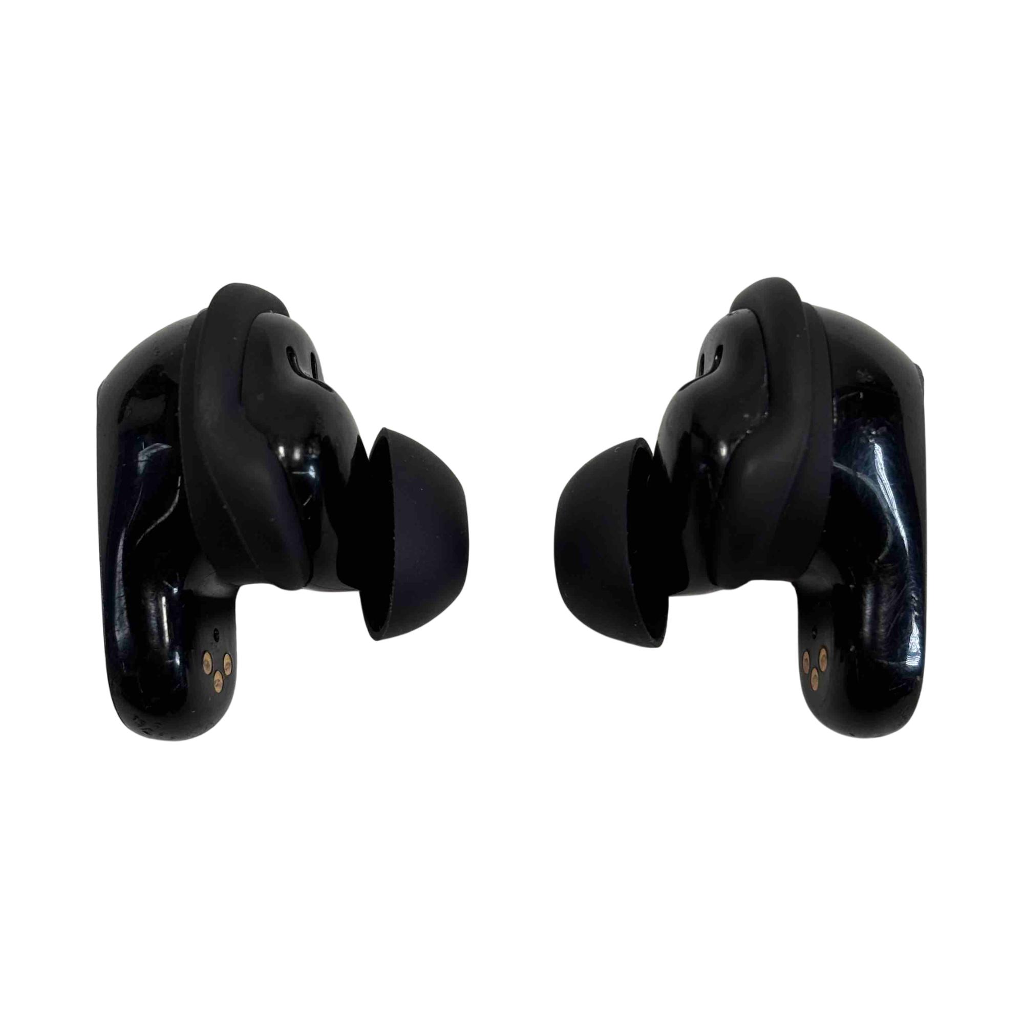 The Bose 441408 QuietComfort Ultra Black Wireless Bluetooth Earbuds deliver advanced noise cancellation and exceptional sound quality in a sleek black design. These in-ear earbuds feature a secure fit with black covers and provide immersive audio performance ideal for on-the-go listening.