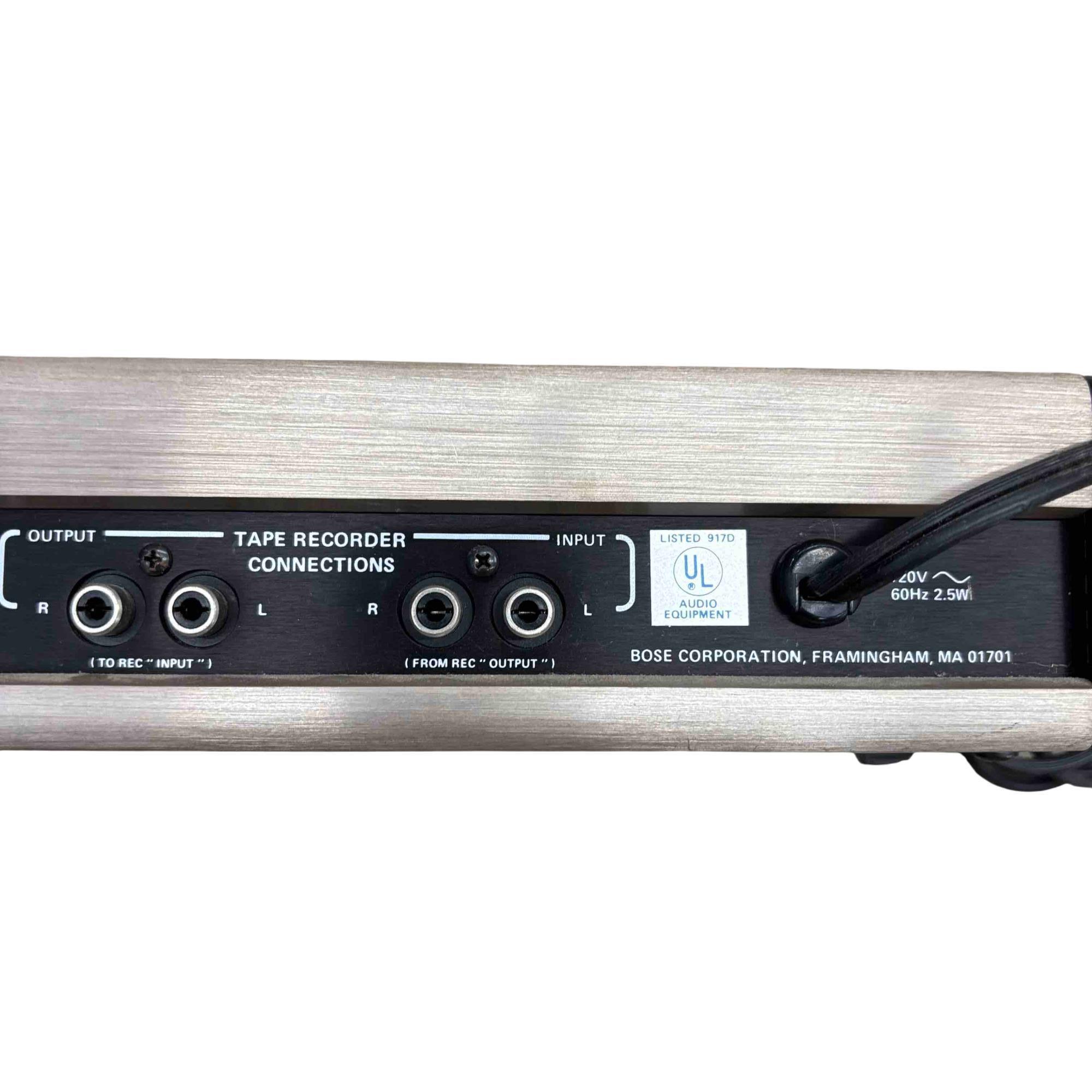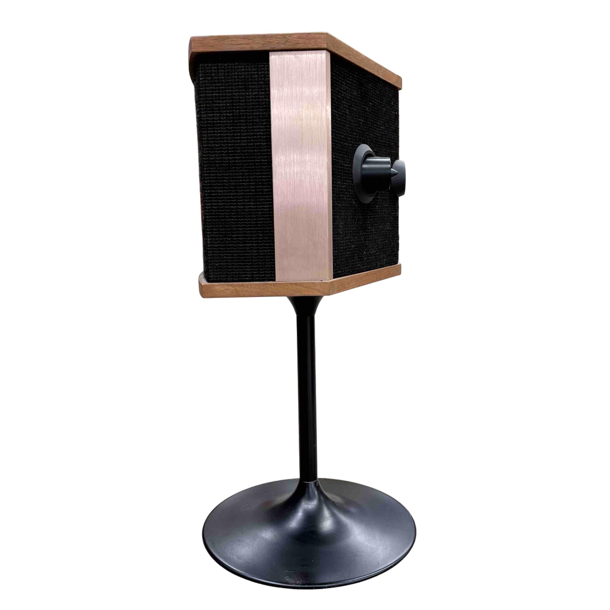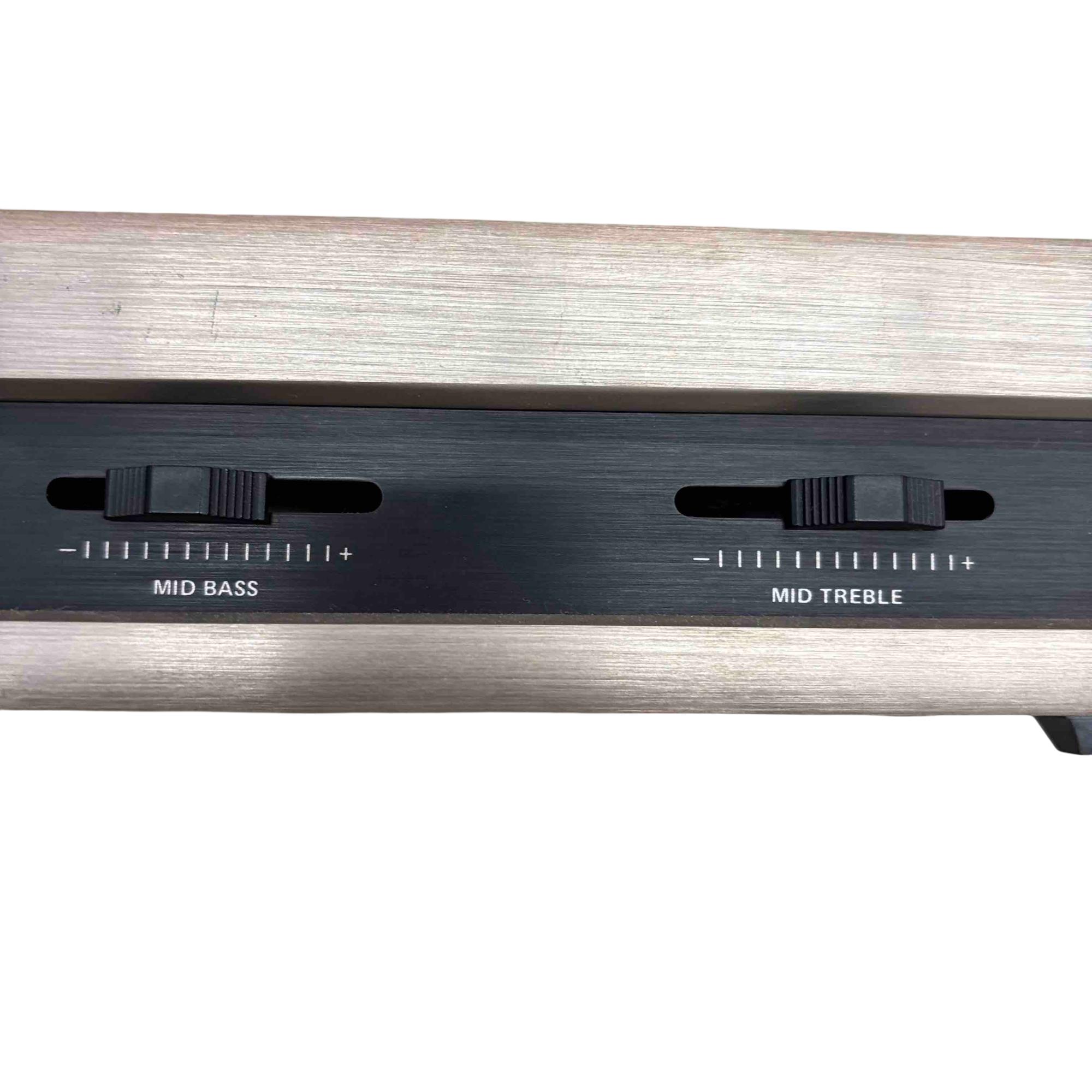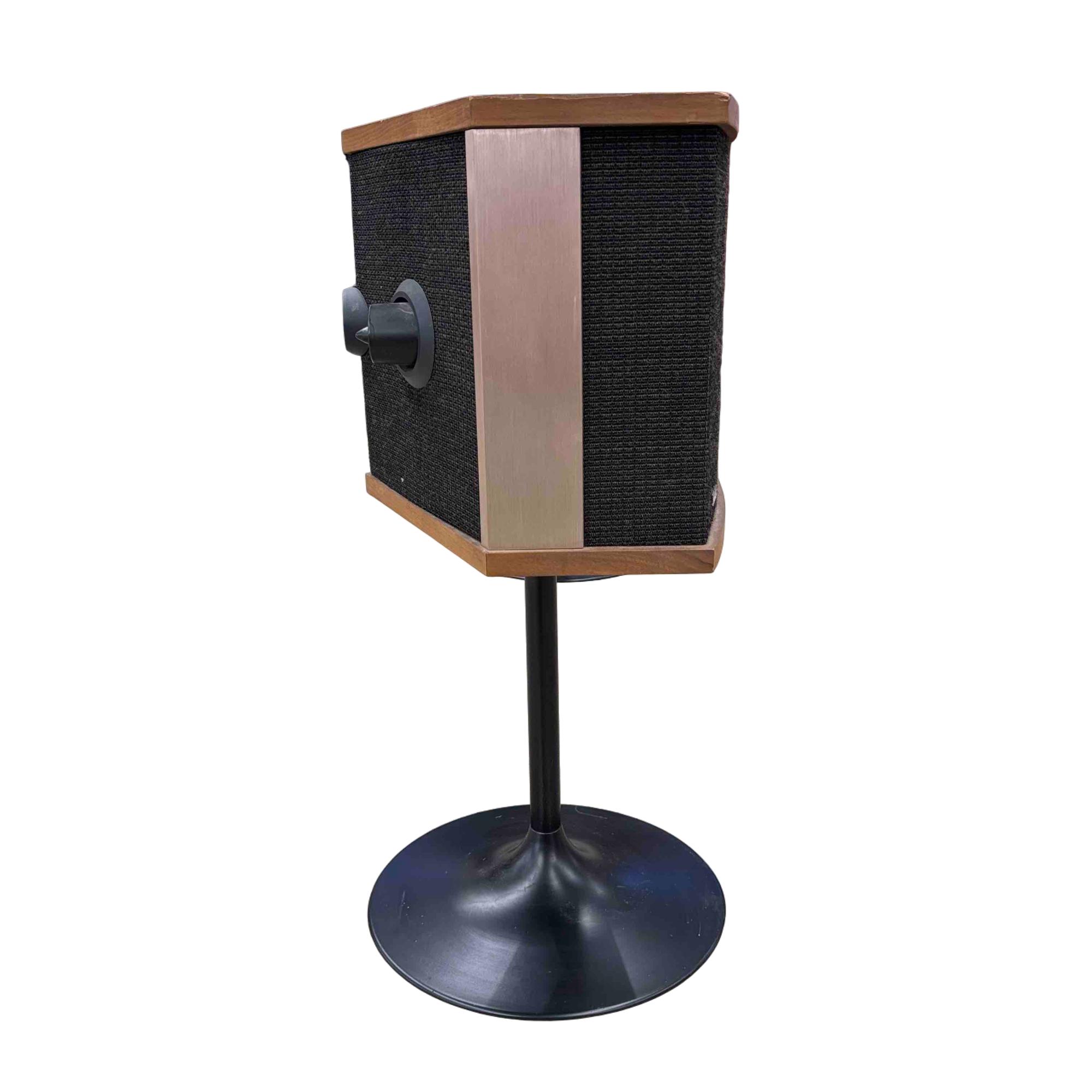 Utilizes a direct/reflecting design with nine full-range drivers per speaker, consisting of four pairs on the angled rear panels and one driver facing forward. The rear drivers reflect sound off walls to emulate the acoustics of a live performance, while the front driver provides stereo localization. Each speaker features a complex plastic "Acoustic Matrix" vented enclosure with nine chambers, two couplers, and three reactive air columns, providing isolation for the drivers while combining their outputs. The cabinets measure 21 inches wide, 13 inches deep, and 12-5/8 inches high, weigh 35 pounds each, and are covered with a non-removable dark-brown grille. The system supports an 8-ohm nominal impedance, can handle high power levels, and operates efficiently with as little as a 10-watt amplifier. The system offers a frequency response of 38 Hz to 20 kHz within ±3 dB.