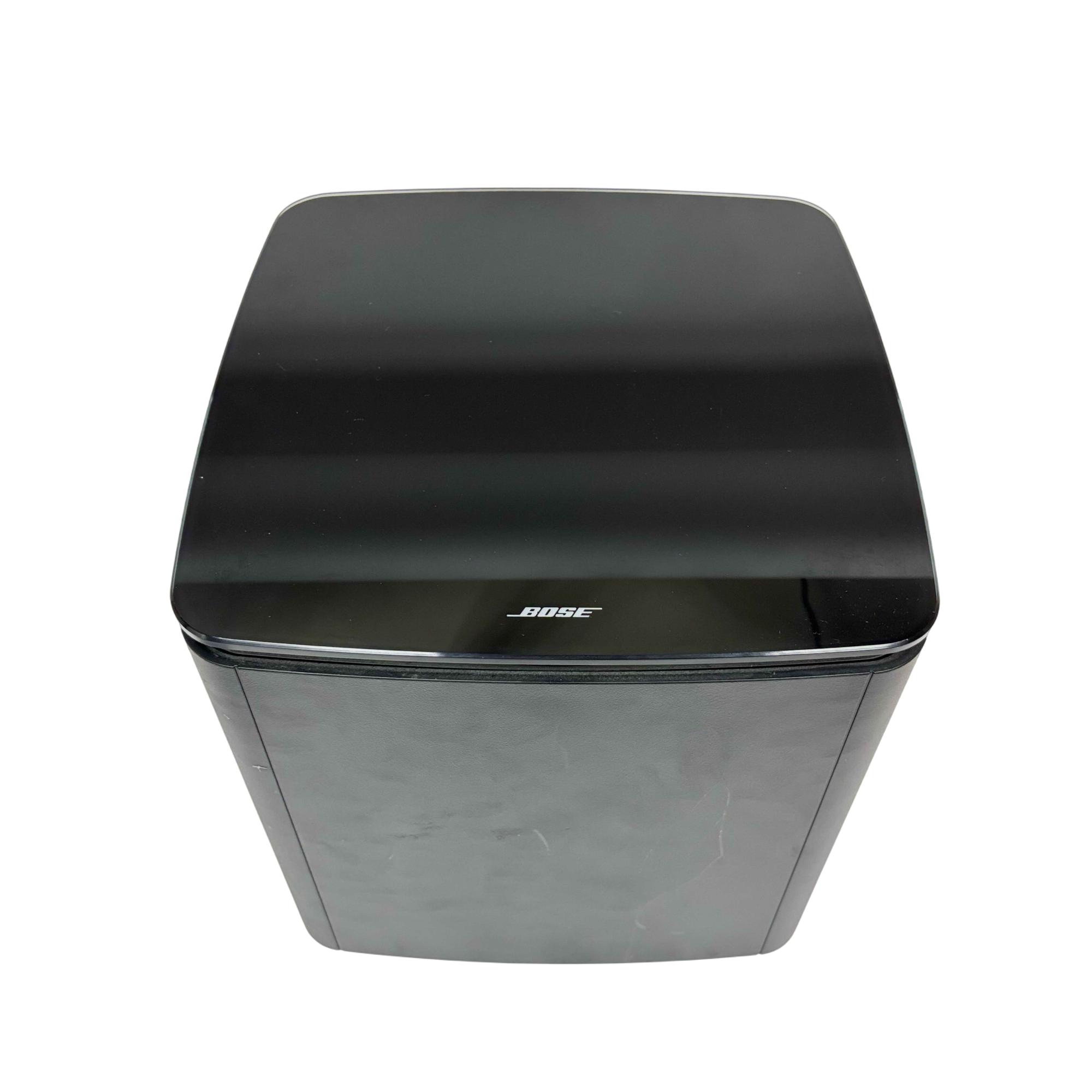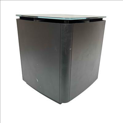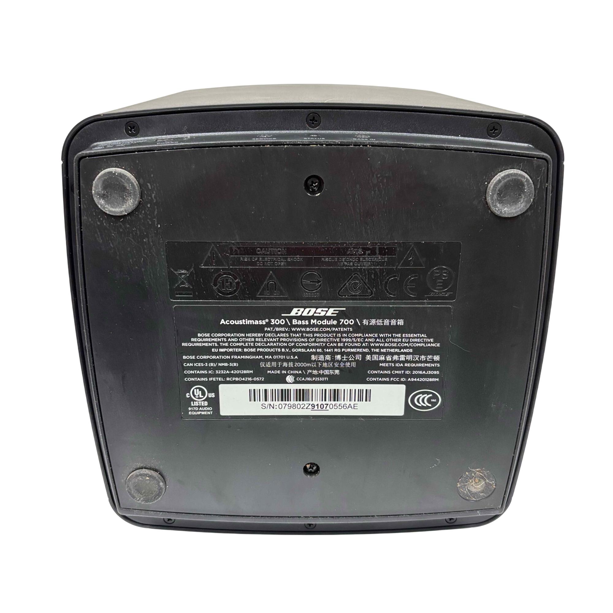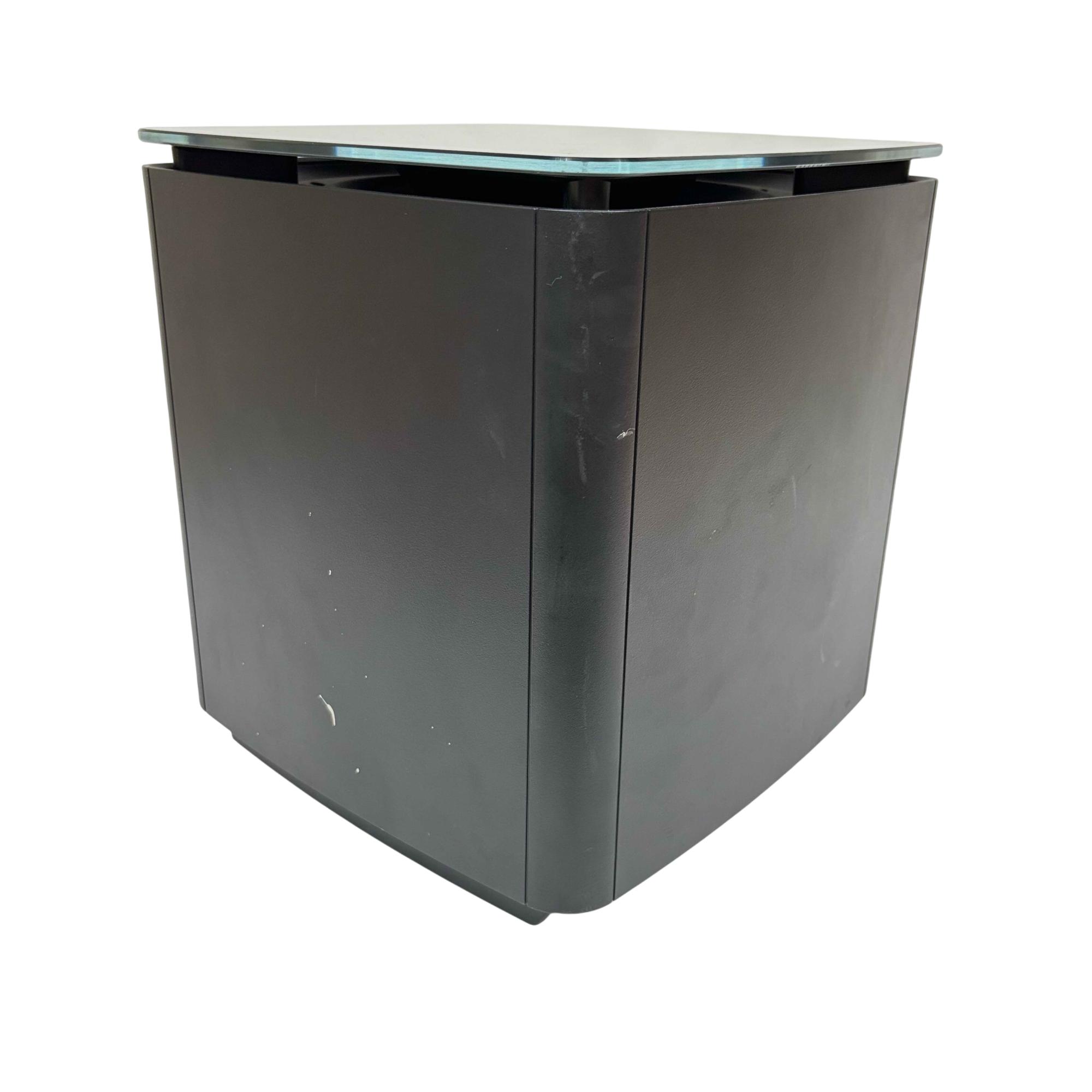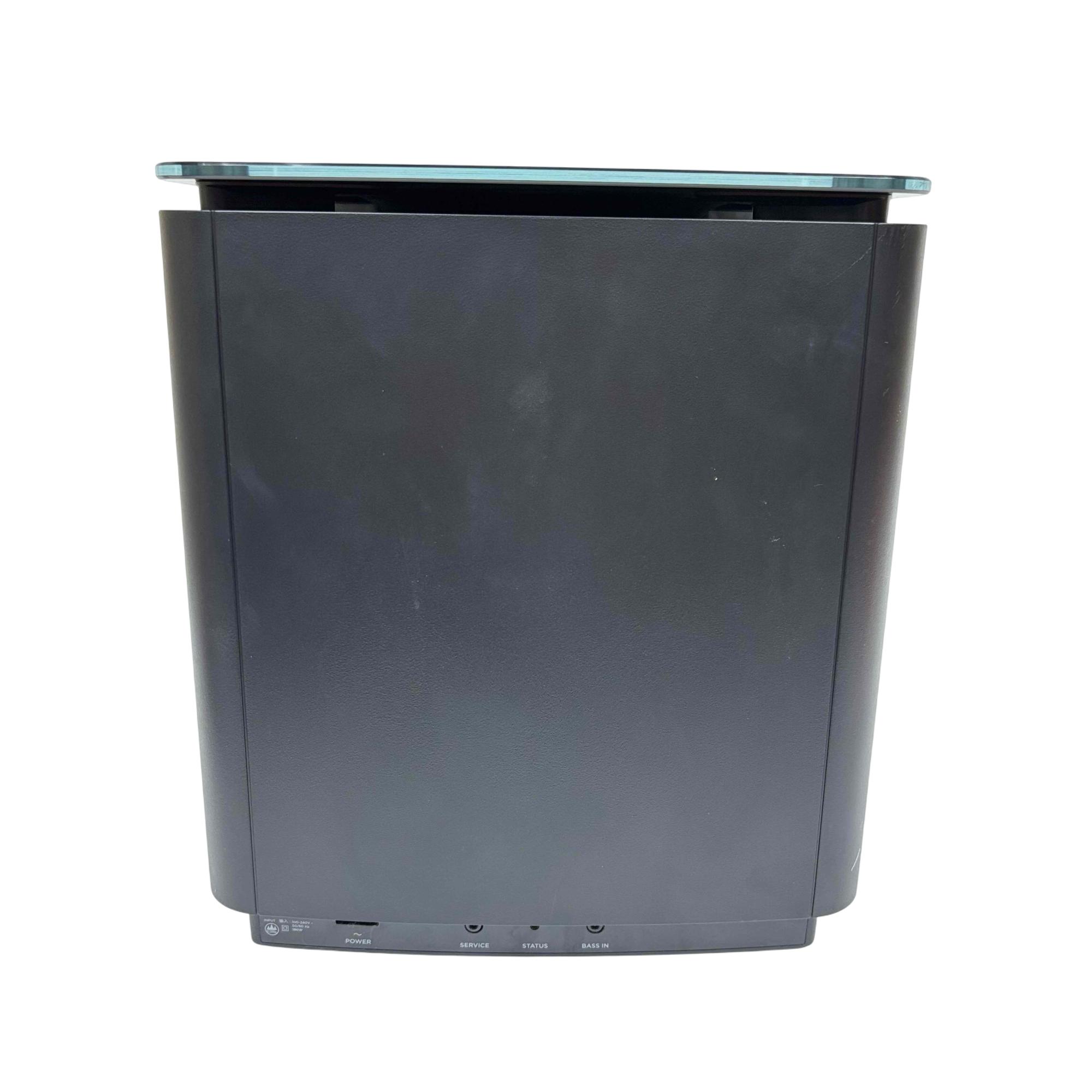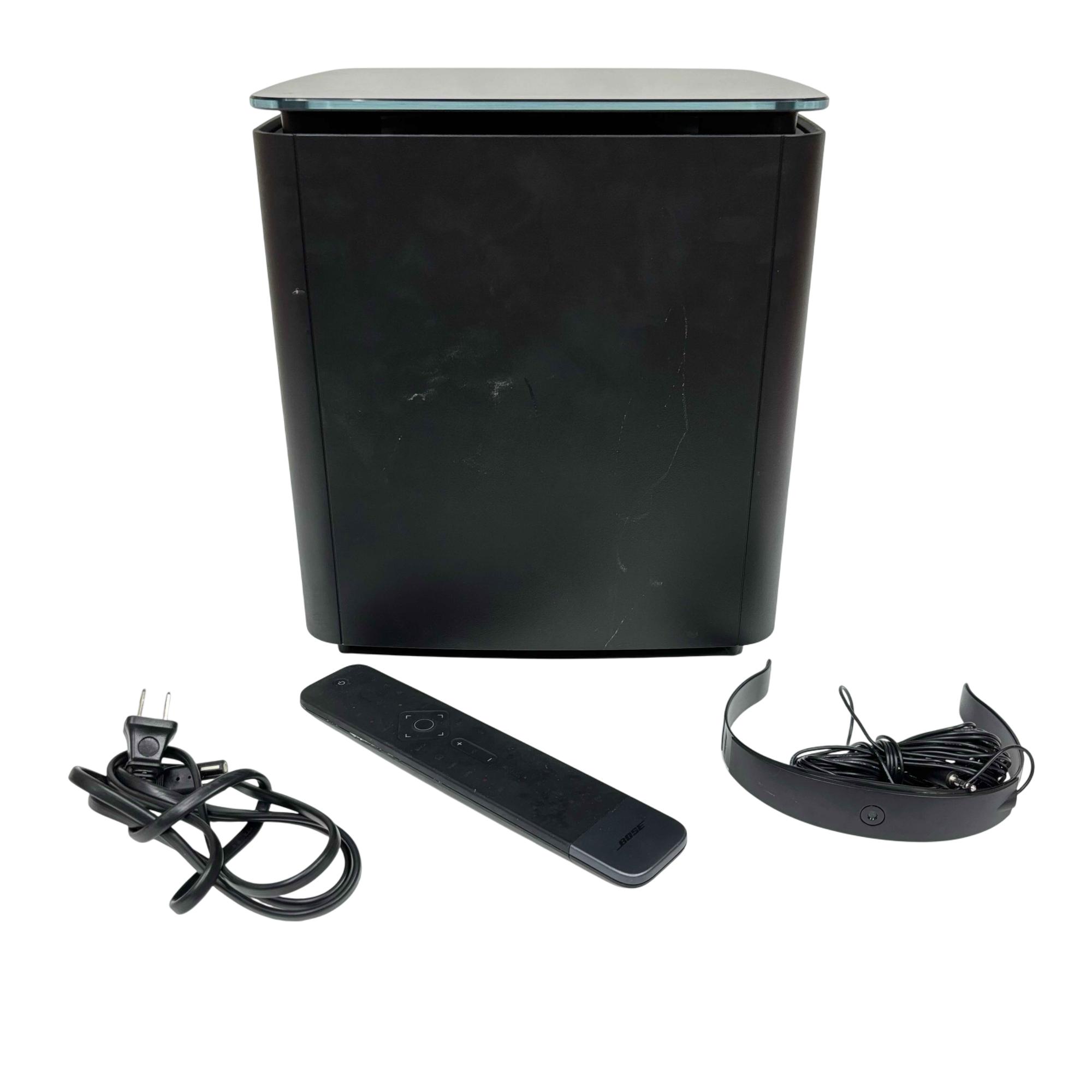 The Bose Acoustimass 300 Wireless Bass Module with Remote features a sleek black rectangular design topped with glass, combining modern aesthetics with powerful audio performance. Engineered to deliver deep, rich bass, this module integrates seamlessly with compatible sound systems for an enhanced listening experience. Its compact form and minimalist style make it a perfect addition to any home entertainment setup.