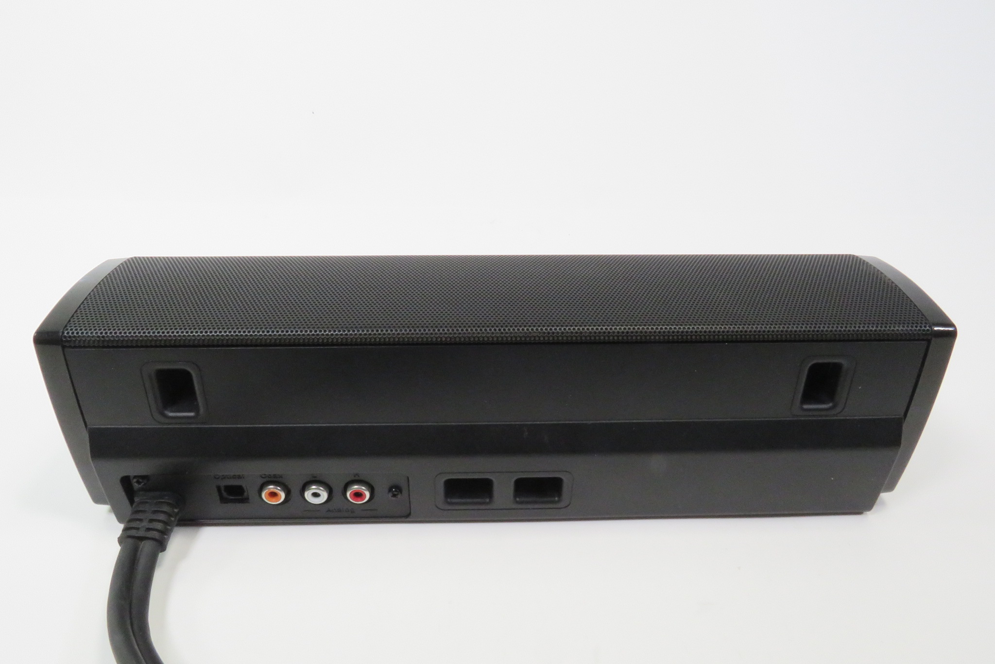 Soundbar fits easily in front of TV and connects with just one cable