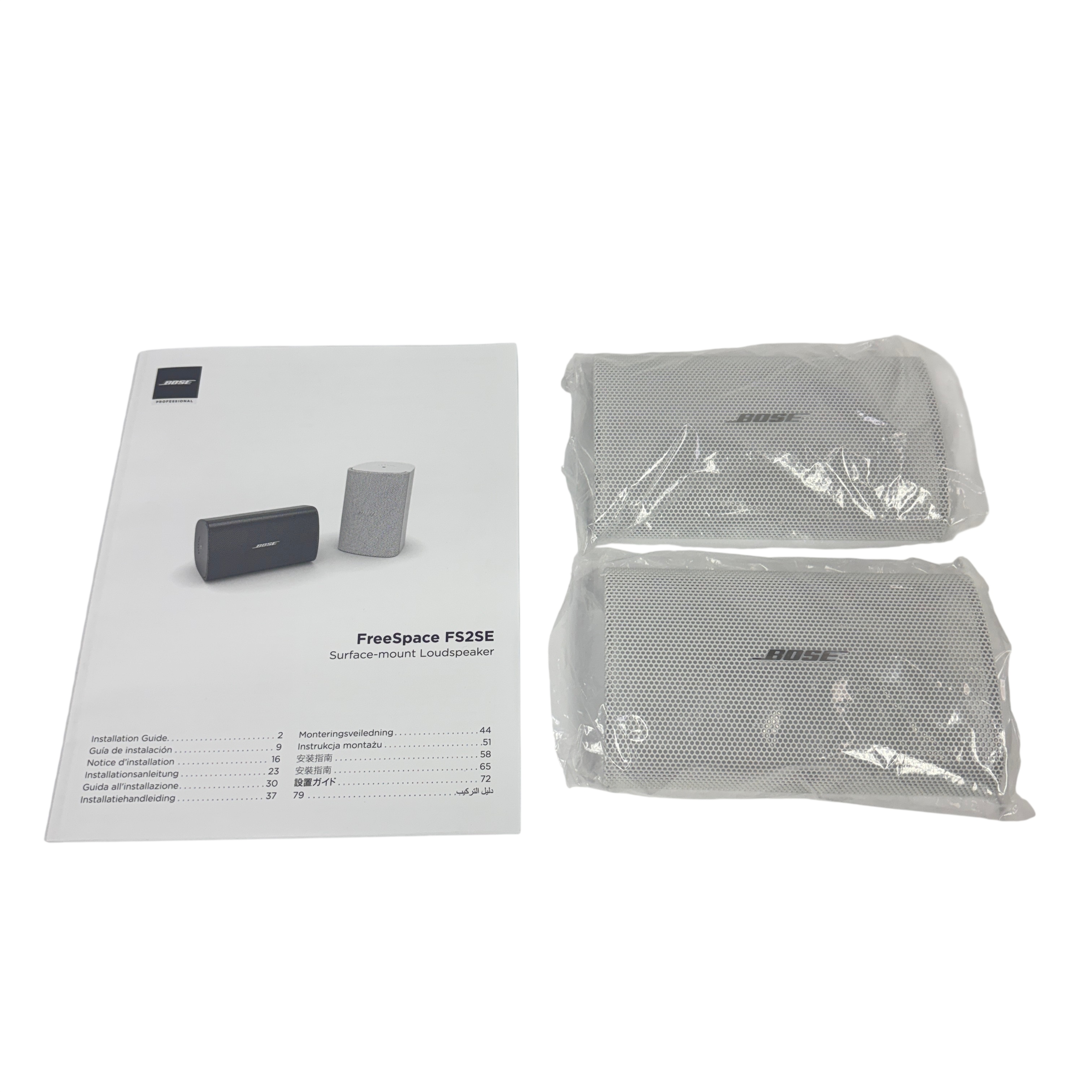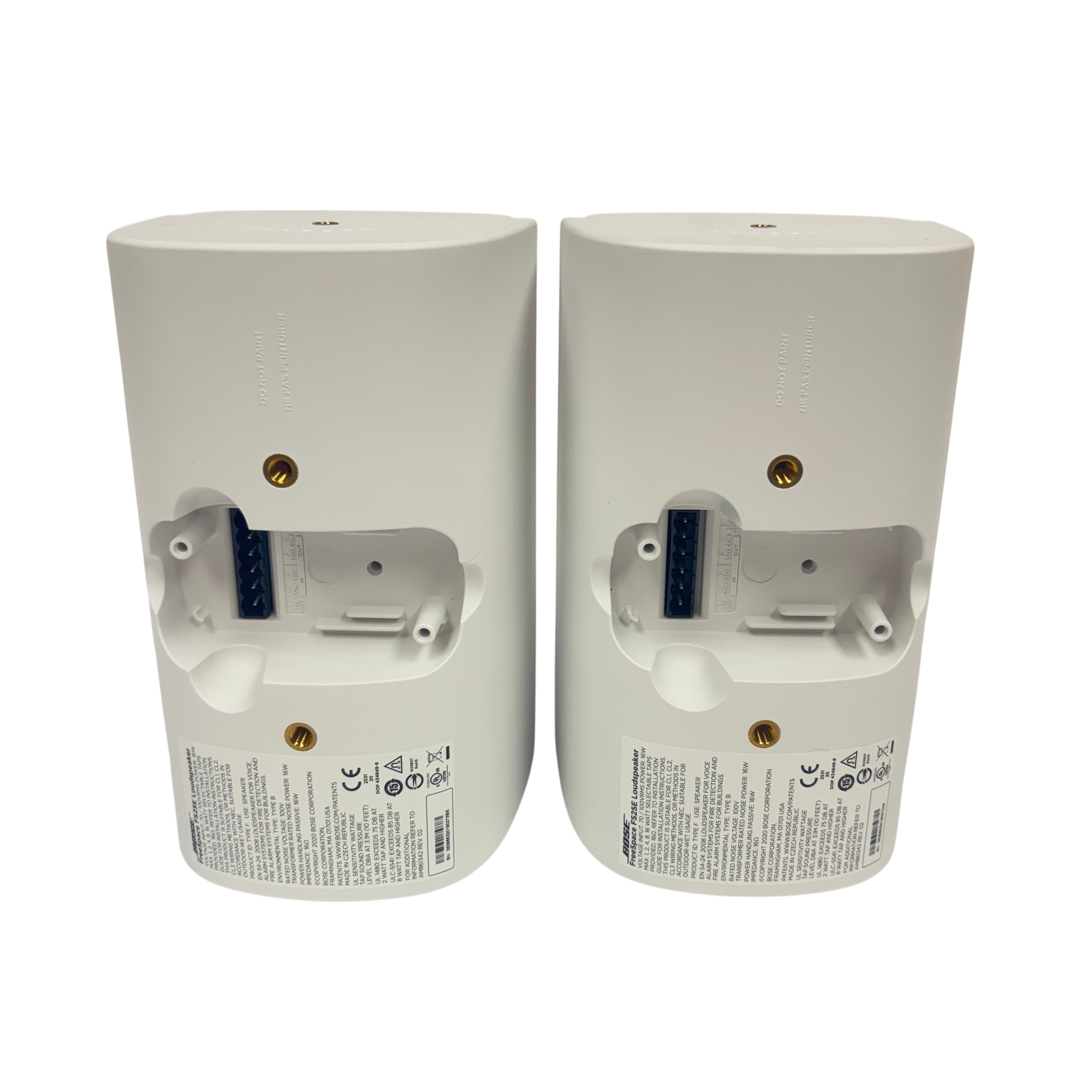 These Bose FreeSpace FS2SE Surface-Mount Loudspeakers deliver professional-grade audio performance with a compact, weather-resistant design ideal for both indoor and outdoor installations. Each speaker features a 16-watt power rating and a 70V/100V transformer, making them perfect for commercial audio systems requiring clear, reliable sound. The set includes two white loudspeakers with mounting brackets and an installation guide, allowing for easy surface mounting on walls or ceilings. With a frequency response of 150 Hz to 15 kHz and a sensitivity of 87 dB, these speakers provide balanced sound quality in a durable enclosure suited for various environments.