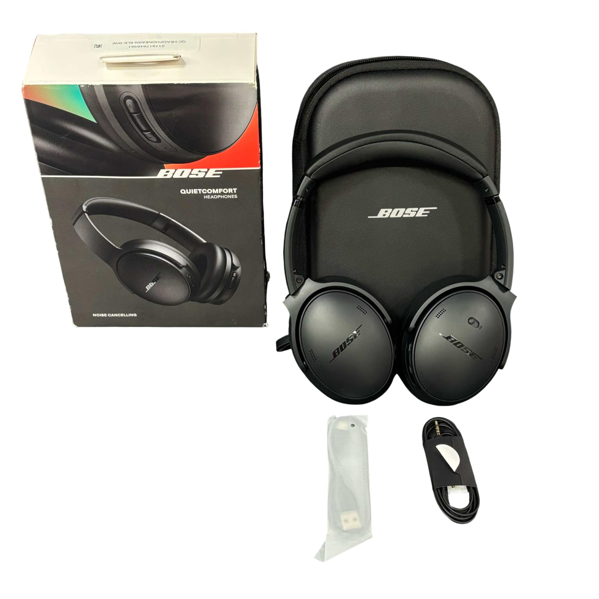 Bose QuietComfort 45 Wireless Bluetooth Noise Cancelling Headphones deliver high-fidelity sound with advanced noise cancellation technology for an immersive listening experience. These over-ear headphones feature a sleek black design with plush ear cushions and seamless Bluetooth connectivity, making them perfect for both travel and everyday use.