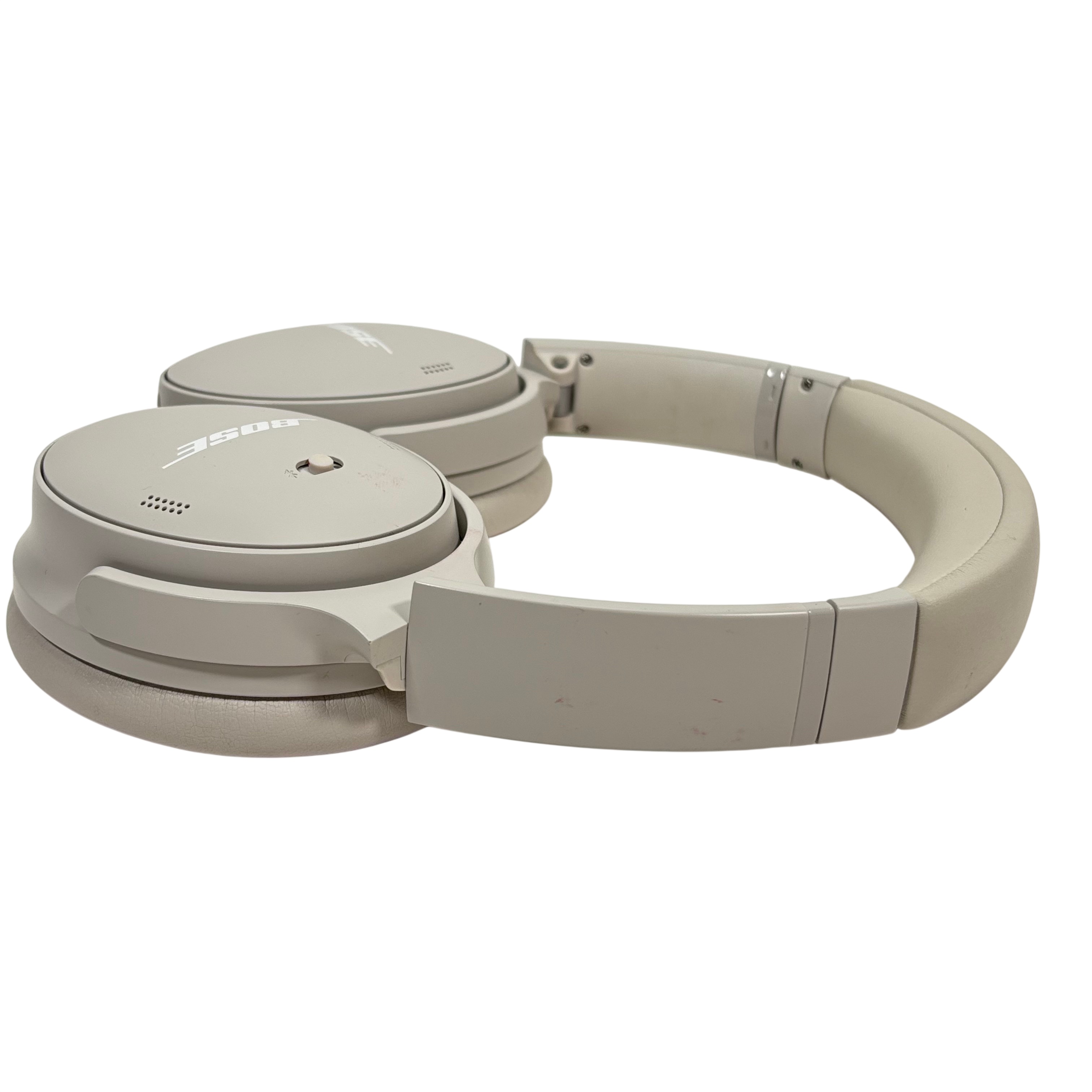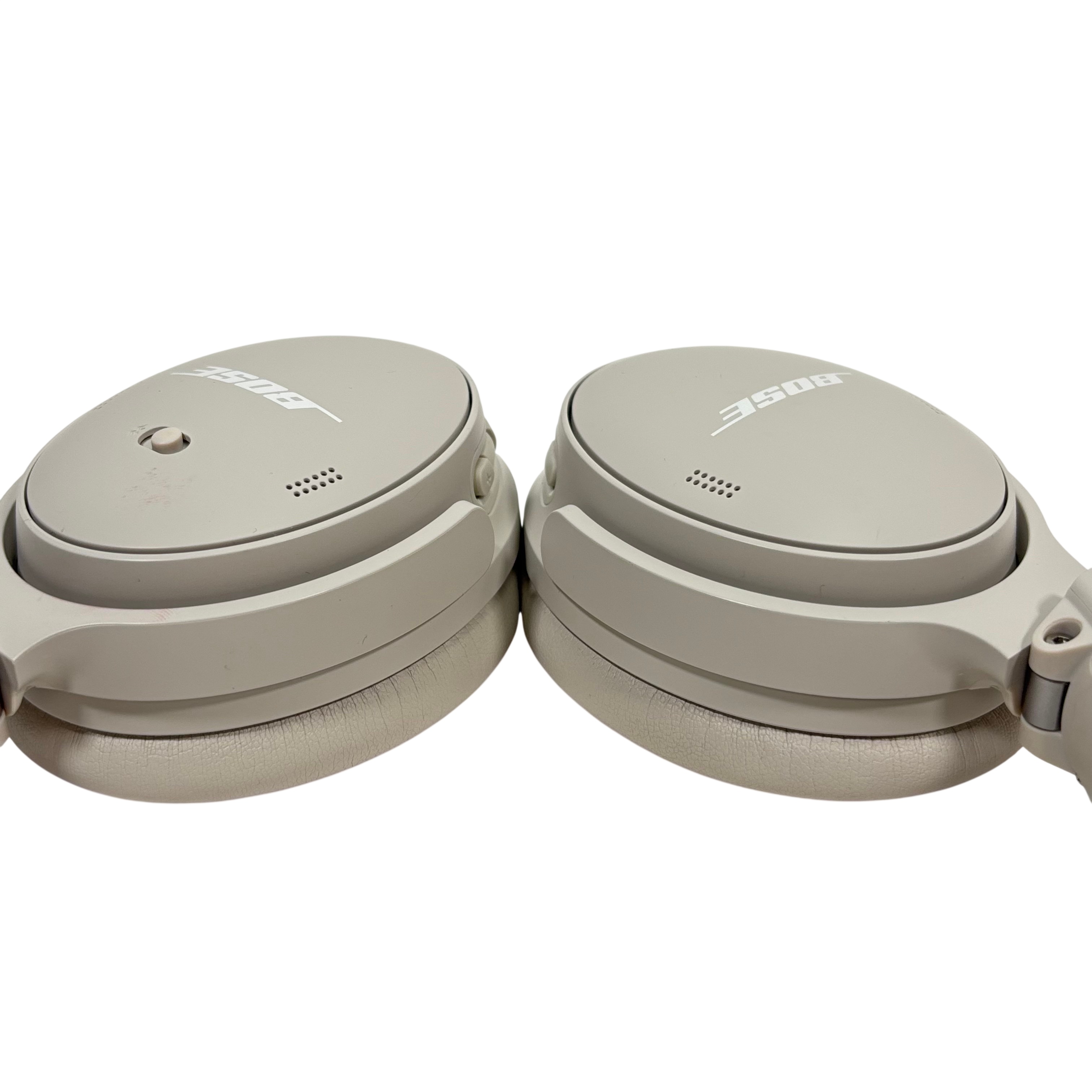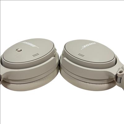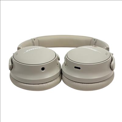 Bose QuietComfort Headphones offer premium over-ear wireless audio with active noise cancellation for immersive sound experiences. These light gray headphones feature Bluetooth connectivity and a rechargeable battery powered by a 5V 0.5A charger. Included is a protective carrying case for convenient storage and transport. Designed for comfort and high-quality sound, they are ideal for travel, work, or leisure listening.