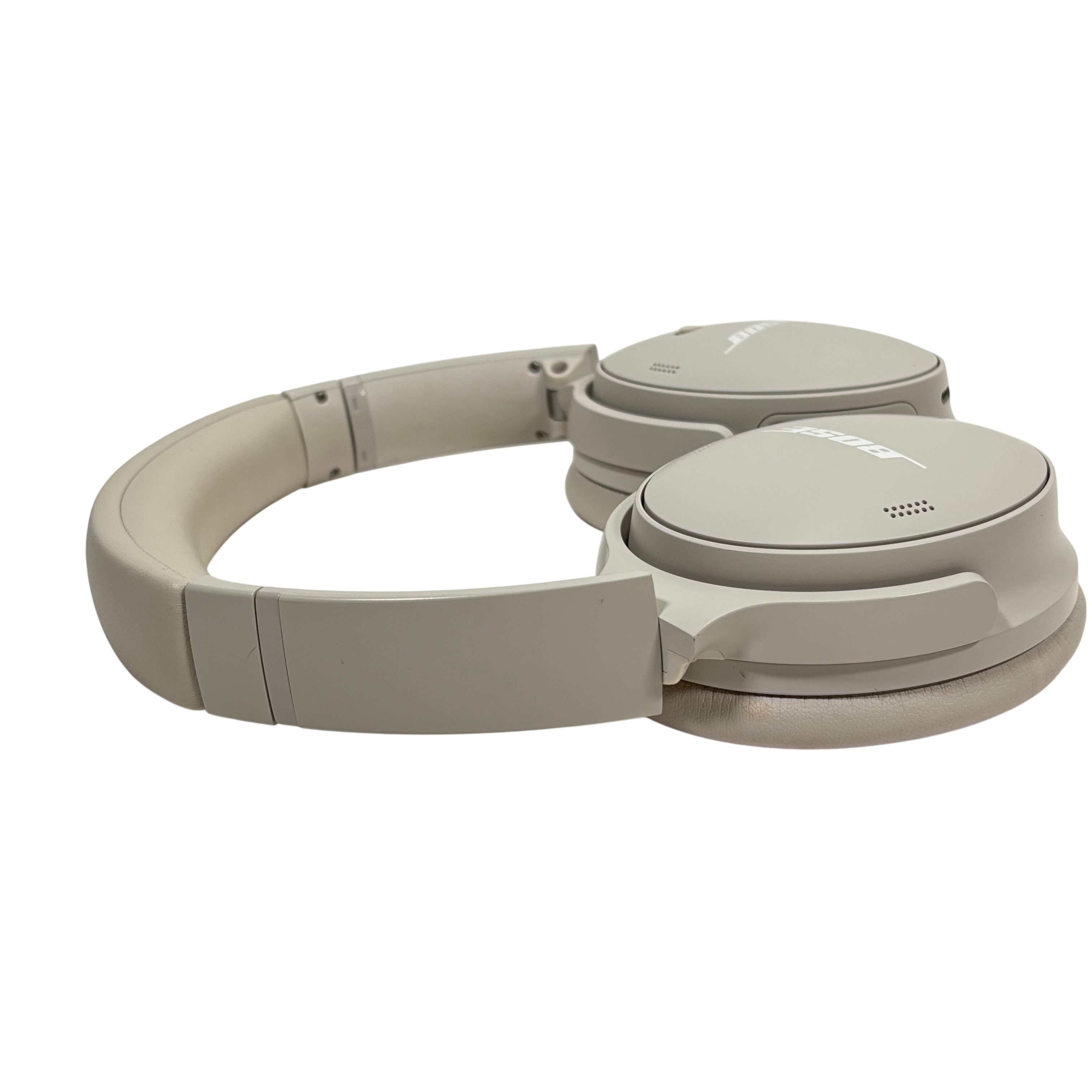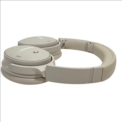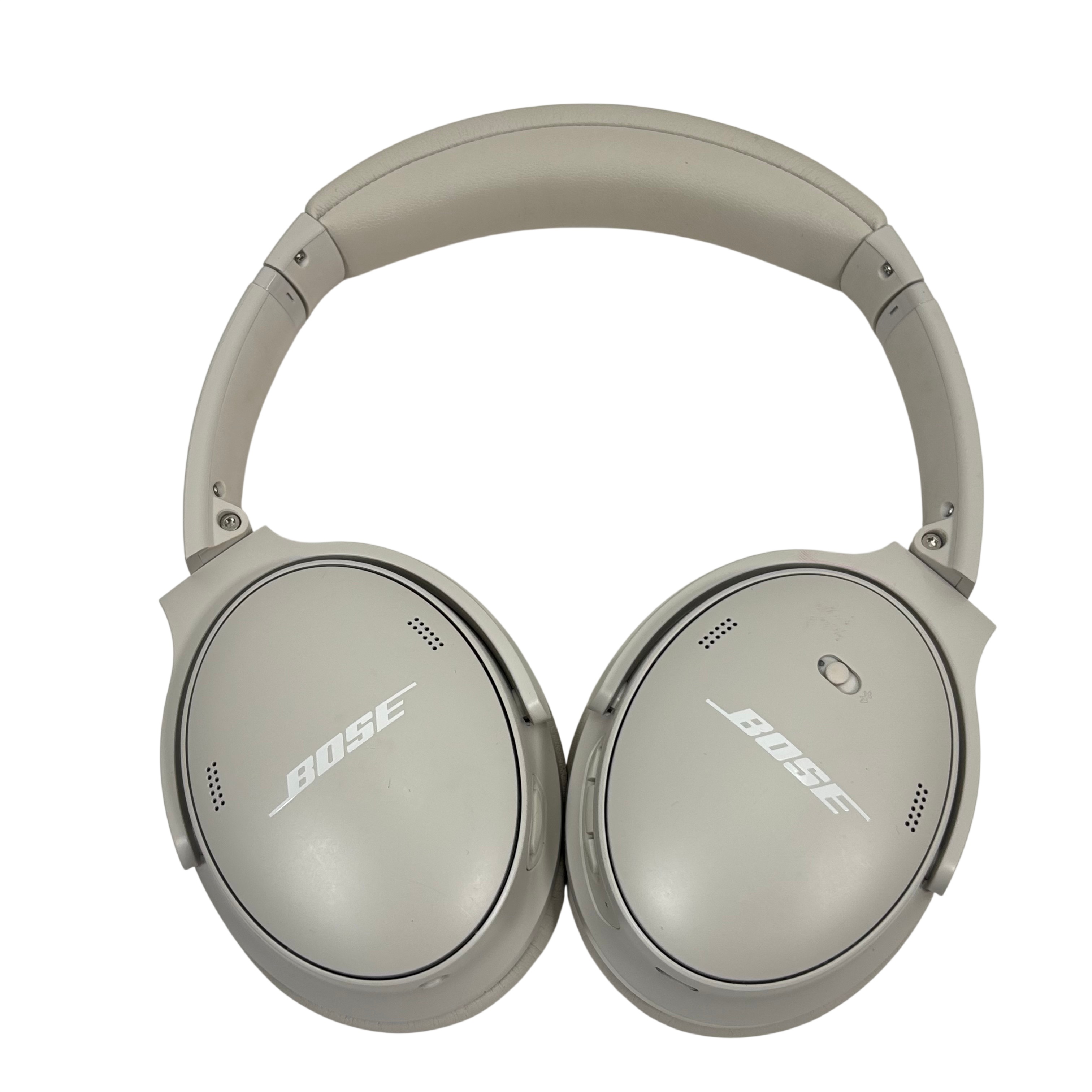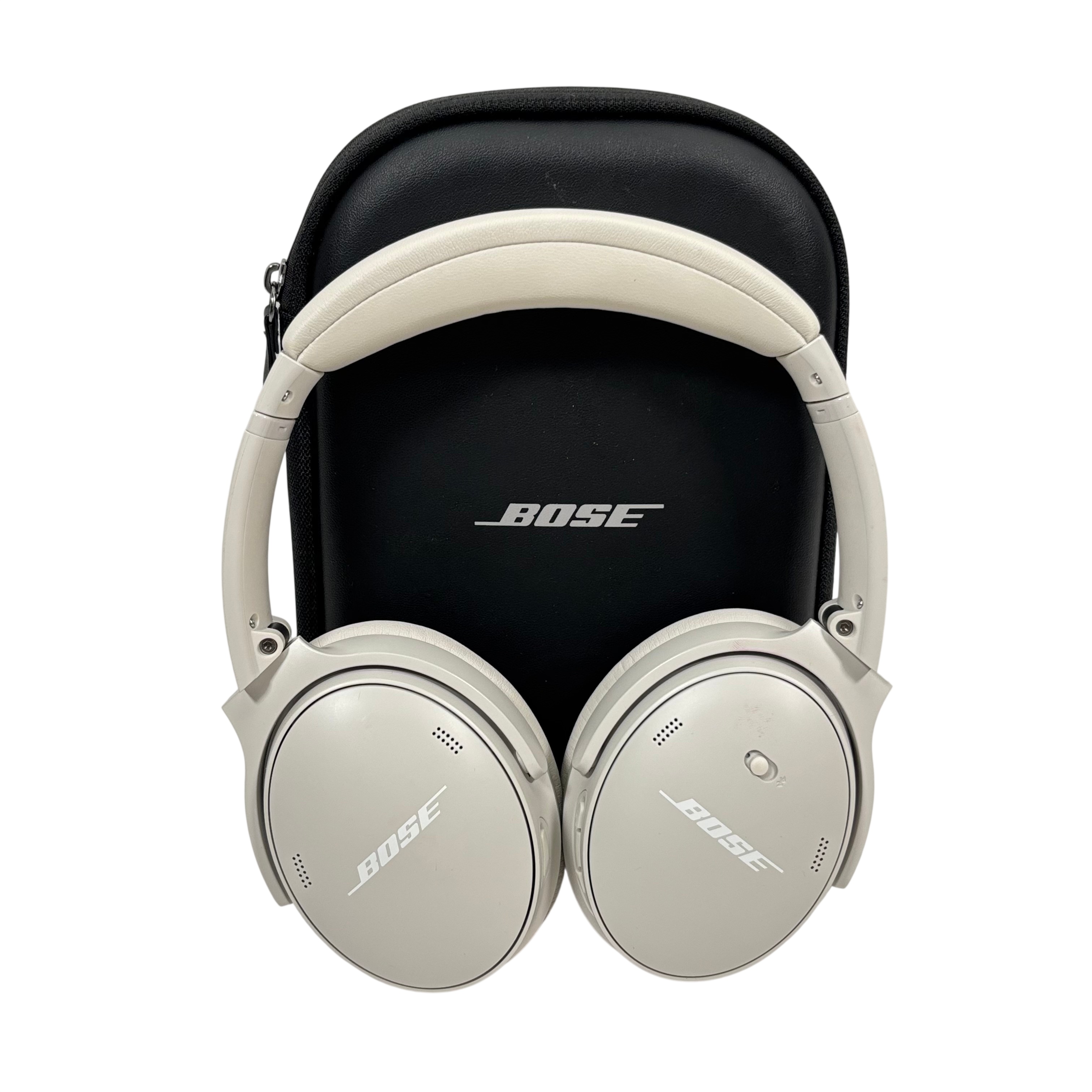Bose QuietComfort Headphones offer premium over-ear wireless audio with active noise cancellation for immersive sound experiences. These light gray headphones feature Bluetooth connectivity and a rechargeable battery powered by a 5V 0.5A charger. Included is a protective carrying case for convenient storage and transport. Designed for comfort and high-quality sound, they are ideal for travel, work, or leisure listening.