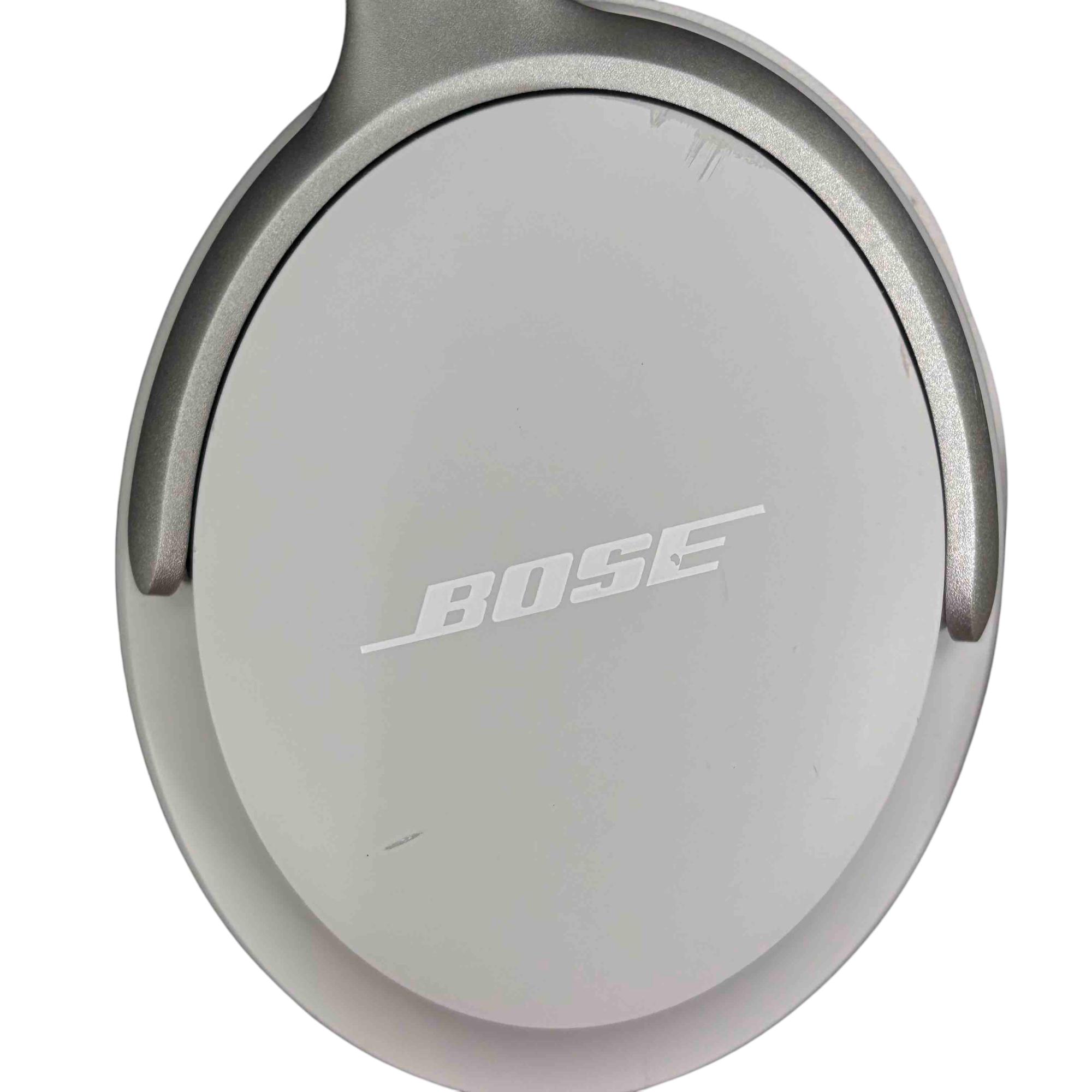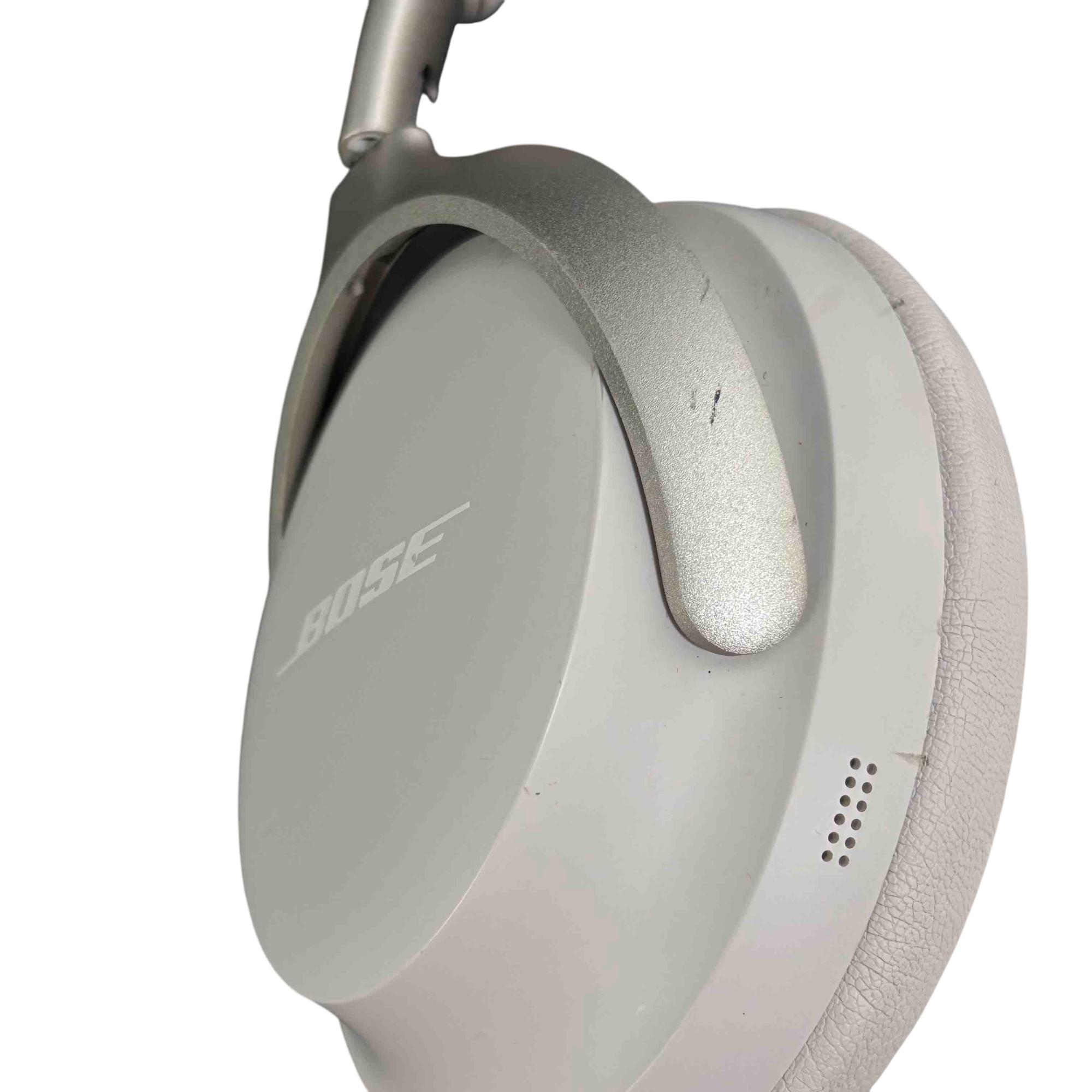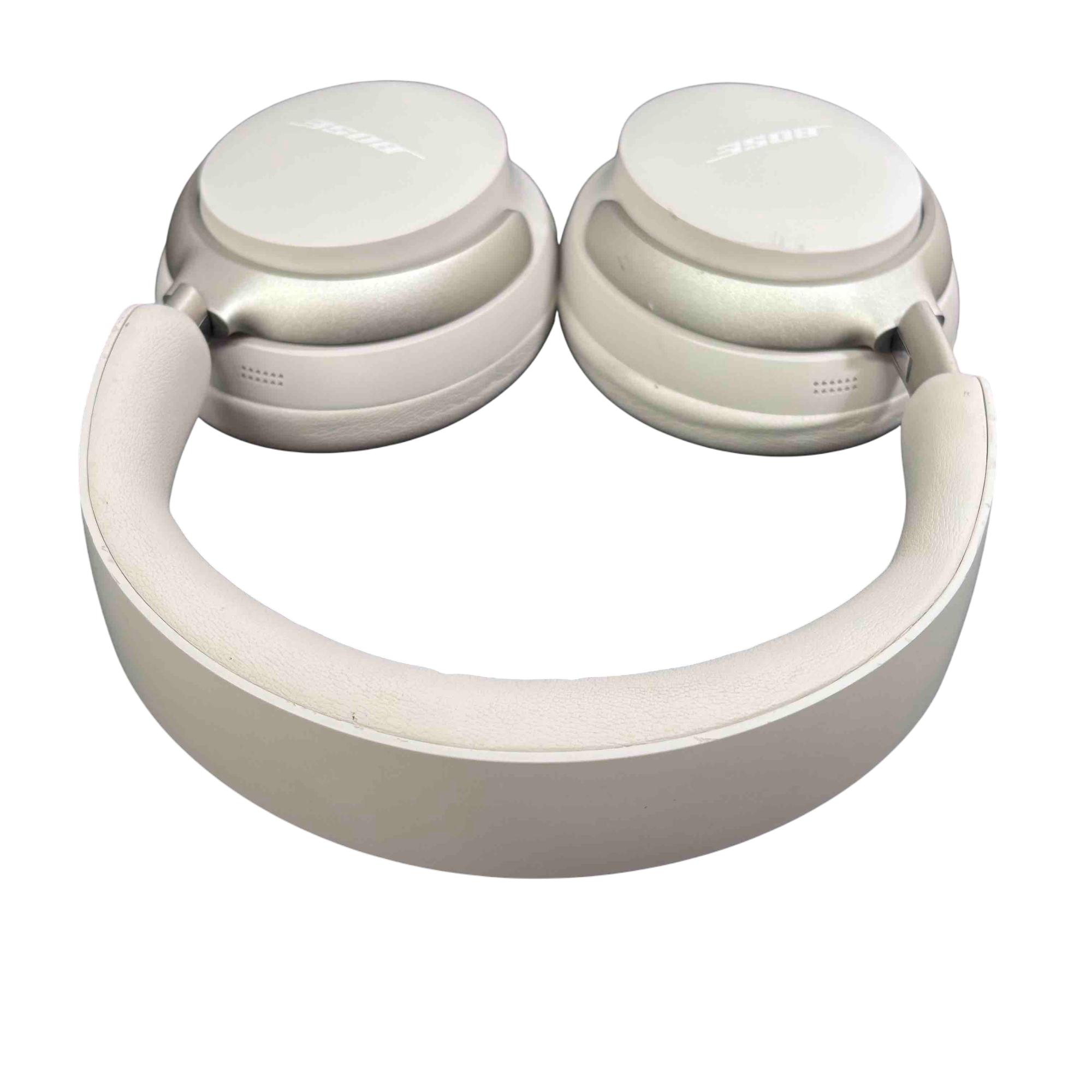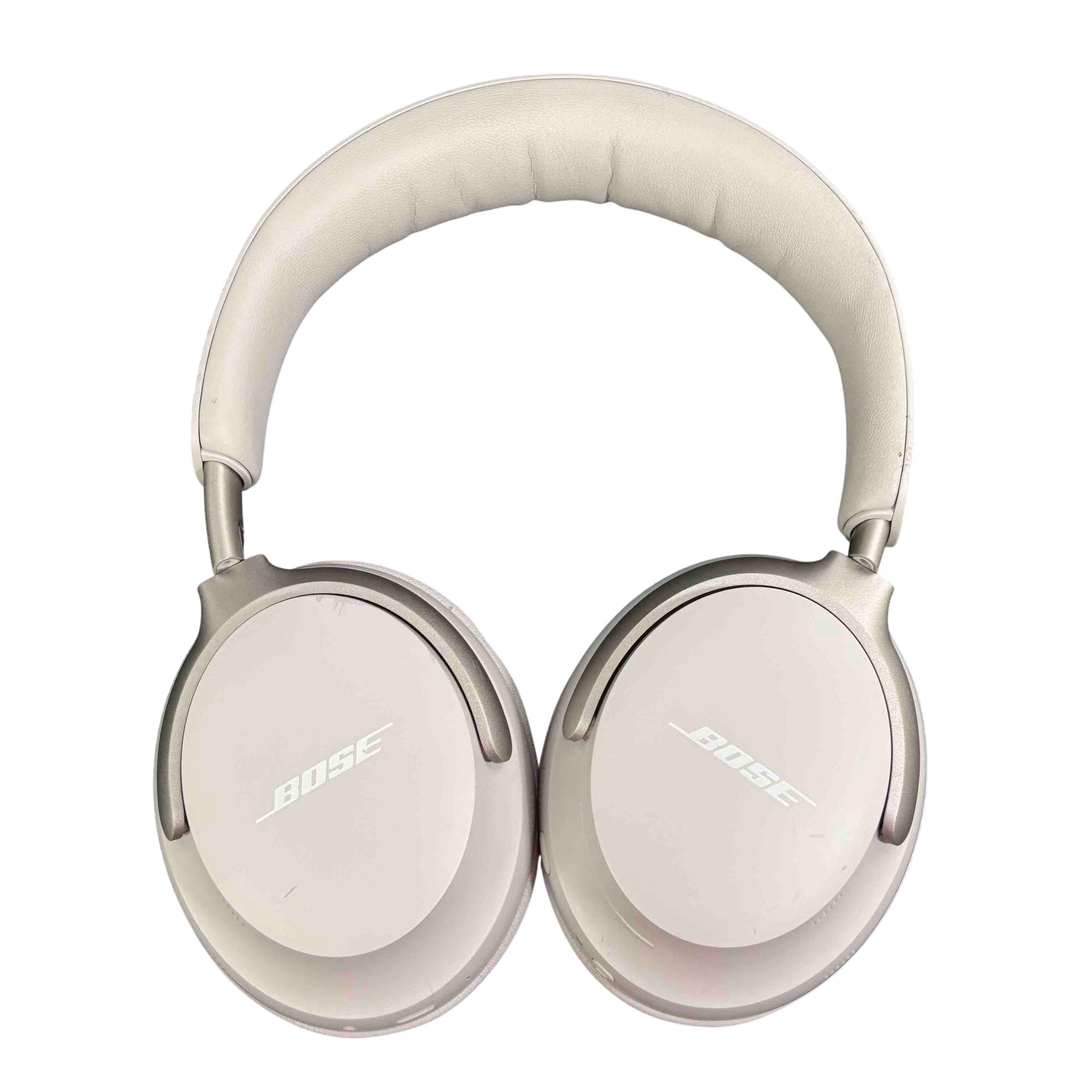 Bose QuietComfort Ultra 440108 Wireless Noise Cancelling Headphones in White deliver premium audio quality with advanced noise-cancelling technology. Featuring a sleek white design with silver metal accents and a comfortable over-ear fit, these headphones provide immersive sound and long-lasting comfort for everyday use.