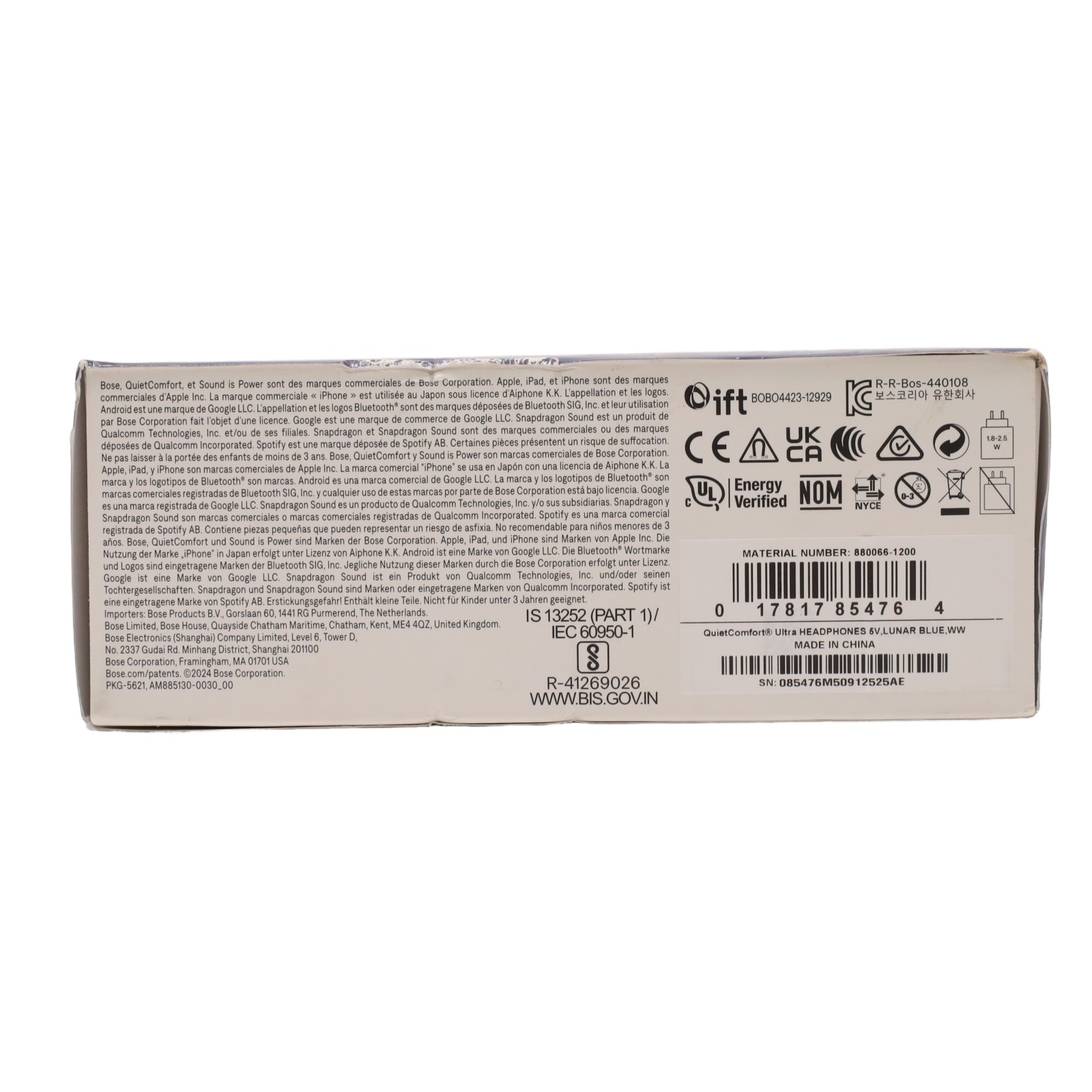 Features hybrid noise-canceling technology designed to reduce ambient sounds, paired with CustomTune technology that adjusts audio based on the listener’s ear shape. They offer spatial audio for an immersive listening experience and include Quiet Mode for focused environments and Aware Mode for situational awareness. Twelve microphones enhance call clarity by isolating the user’s voice. Bluetooth 5.3 connectivity supports multipoint pairing with two devices simultaneously, while Bose SimpleSync and Spotify Tap enable seamless integration with compatible devices. The headphones include a USB-C charging cable, a 3.5mm to 2.5mm audio cable for wired use, and a carrying case. A sleek design with plush earcups and an even-pressure headband ensures comfort during extended use, and touch controls allow for intuitive playback and mode adjustments.