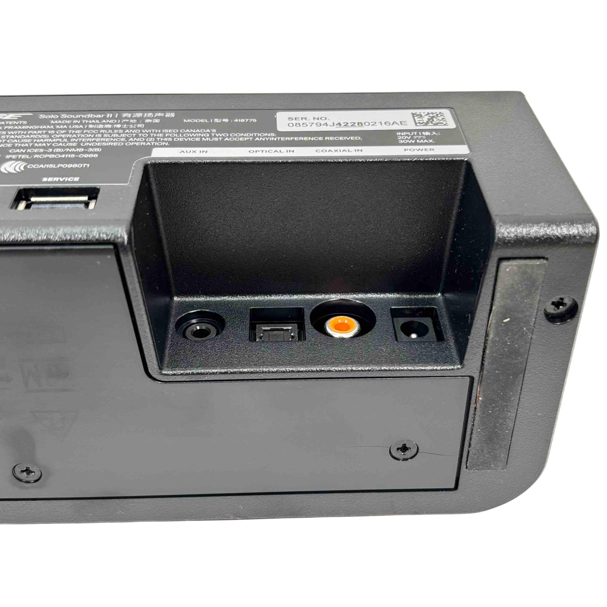 Bose Solo 5 TV Soundbar Sound System with Remote Control delivers clear, powerful sound in a compact, sleek black rectangular design. This soundbar features easy setup with included power cord and a remote, enhancing your TV audio experience with rich bass and crisp dialogue clarity. Optimized for seamless compatibility with various TV models, it offers wireless Bluetooth streaming for versatile use.