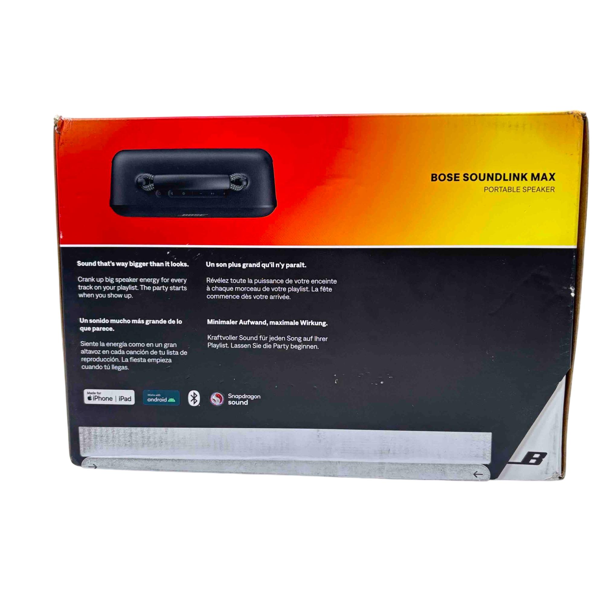 Experience premium sound on the go with the Bose SoundLink Max Portable Speaker. Engineered for rich, immersive audio and equipped with Bluetooth connectivity, this powerhouse offers lasting battery life and rugged portability, complete with a handy carry handle. Whether at home, in the park, or at a party, elevate your music experience with legendary Bose quality.