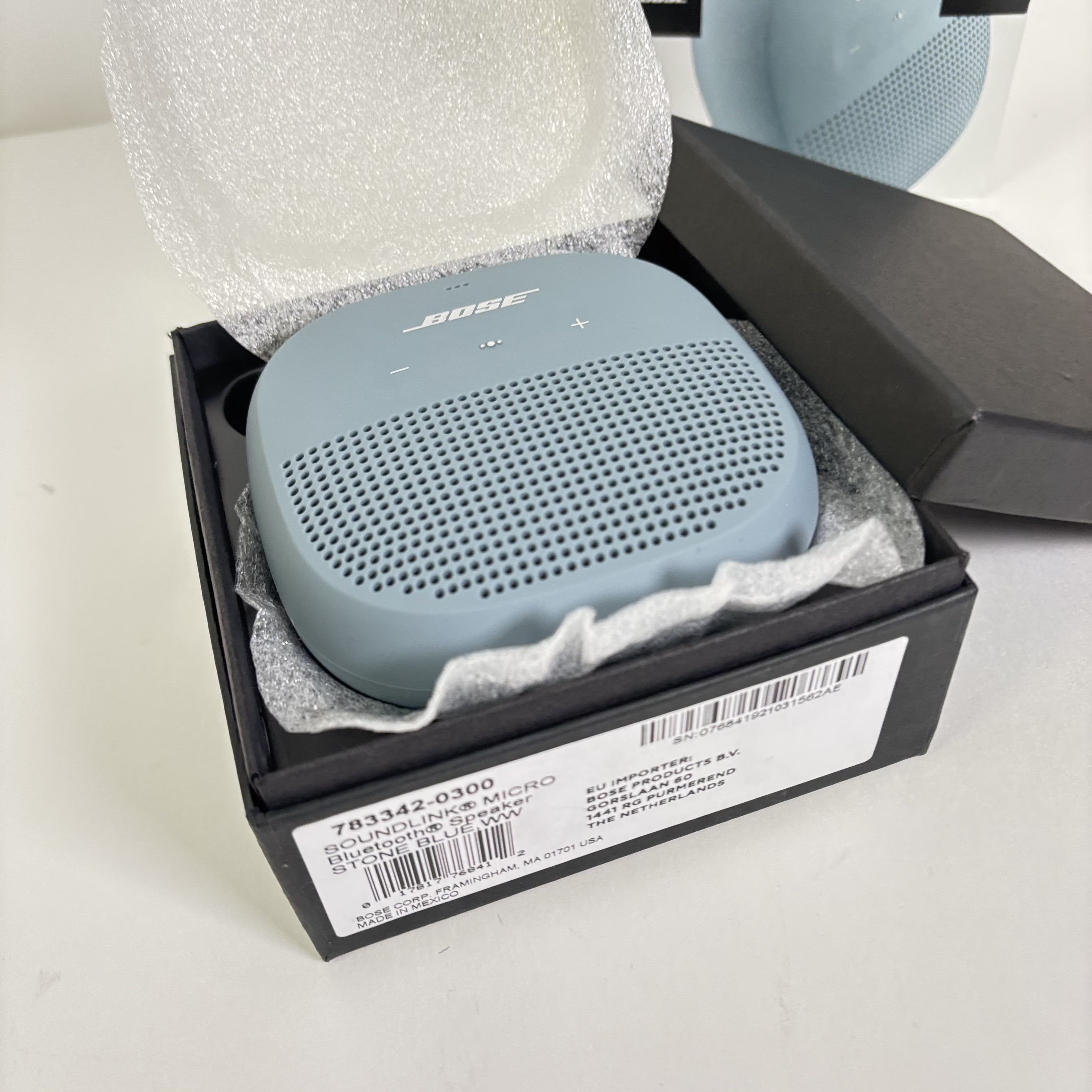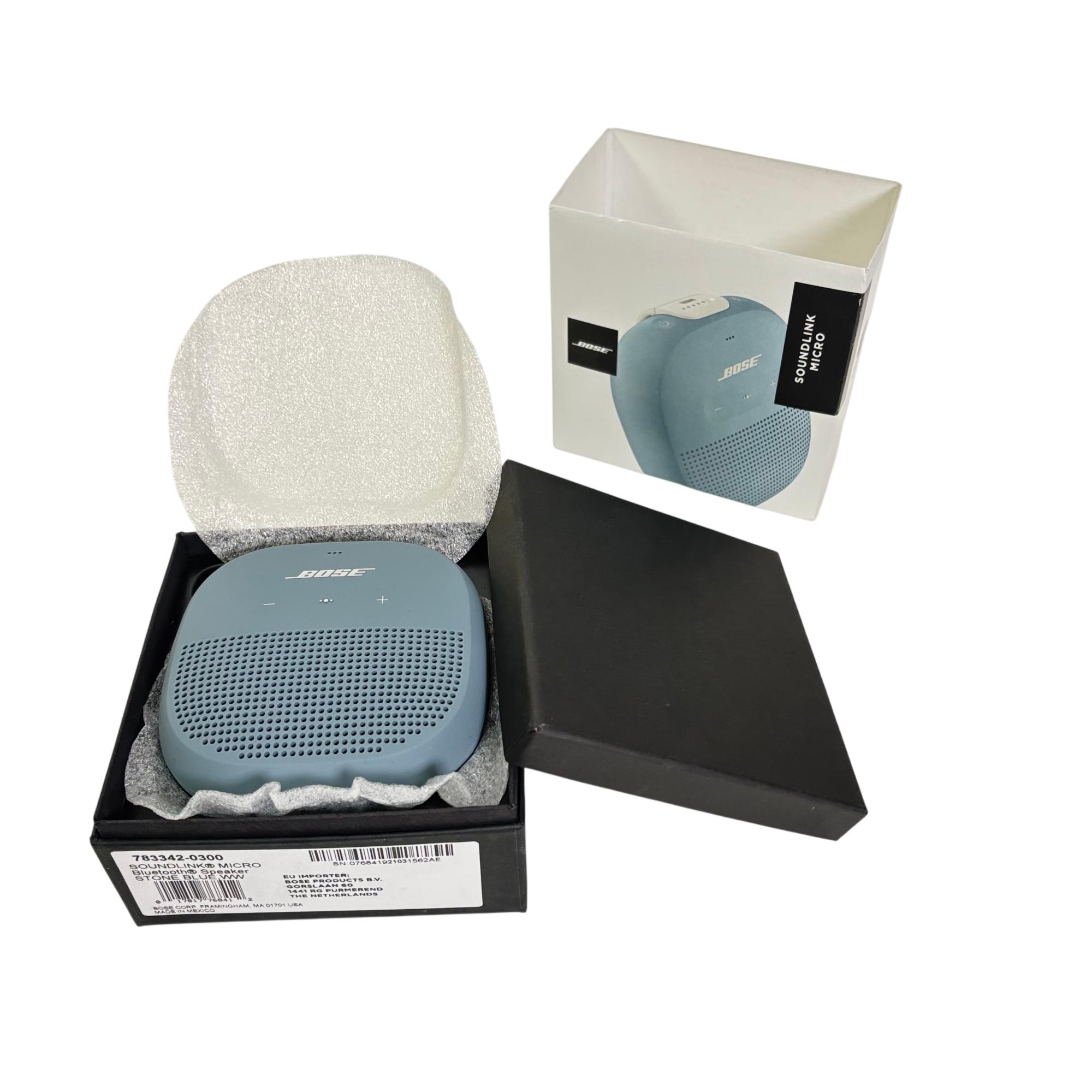 Bose SoundLink Micro Bluetooth Speaker (Model 783342-0300, Stone Blue) delivers powerful, crisp sound in a compact, rugged design perfect for on-the-go use. This portable speaker features durable materials that resist impact, making it ideal for outdoor adventures and everyday activities. Its sleek Stone Blue finish combines style and functionality to enhance any sound experience.