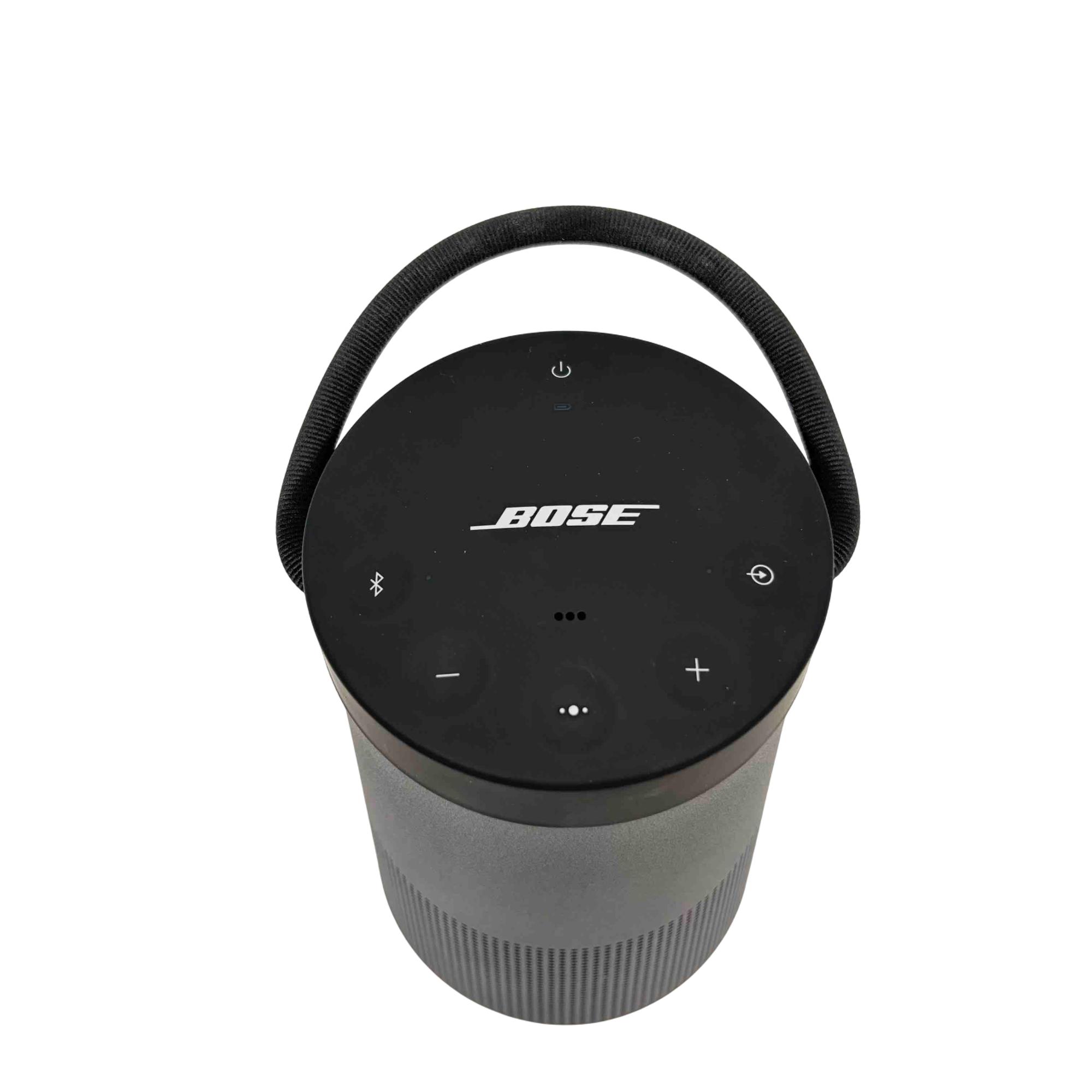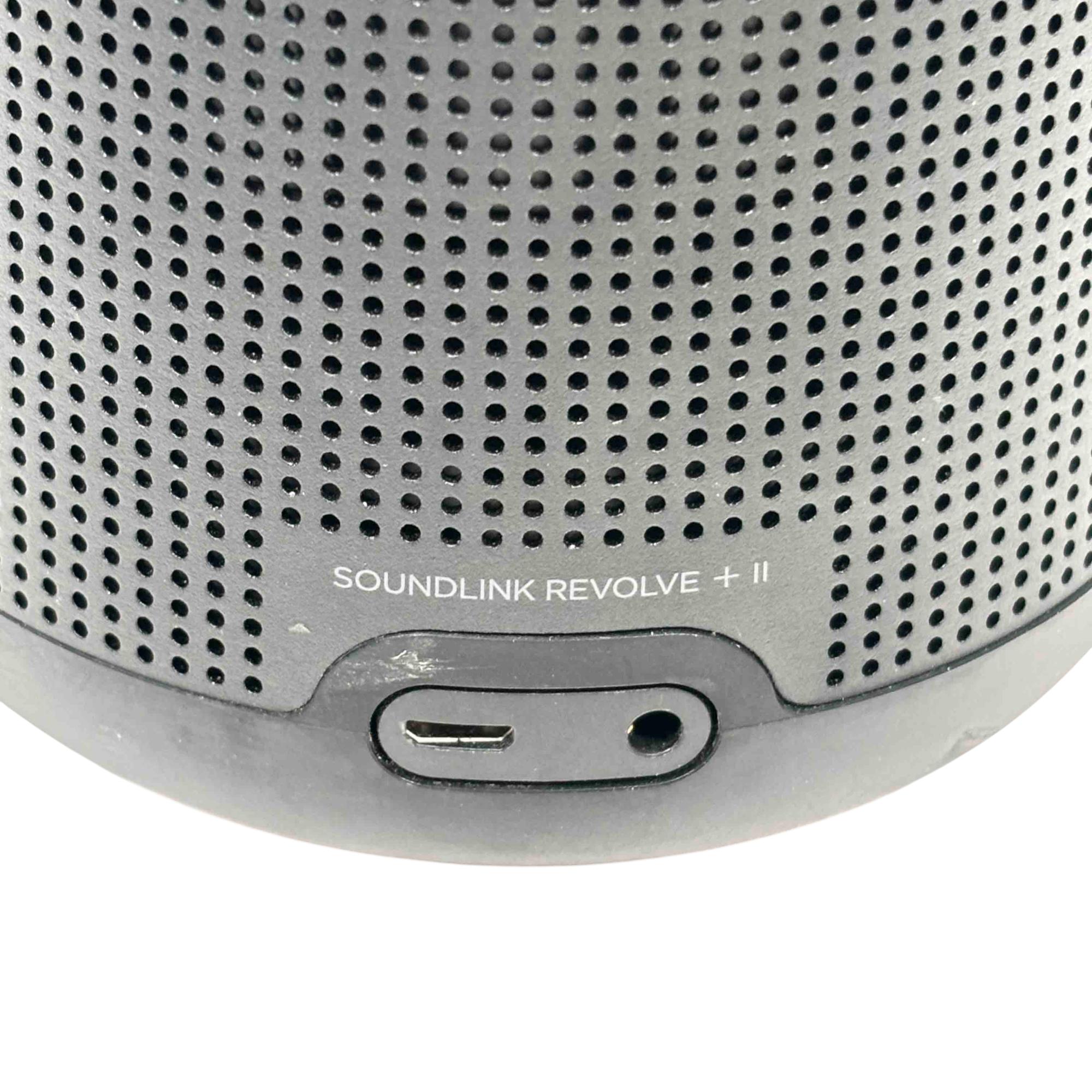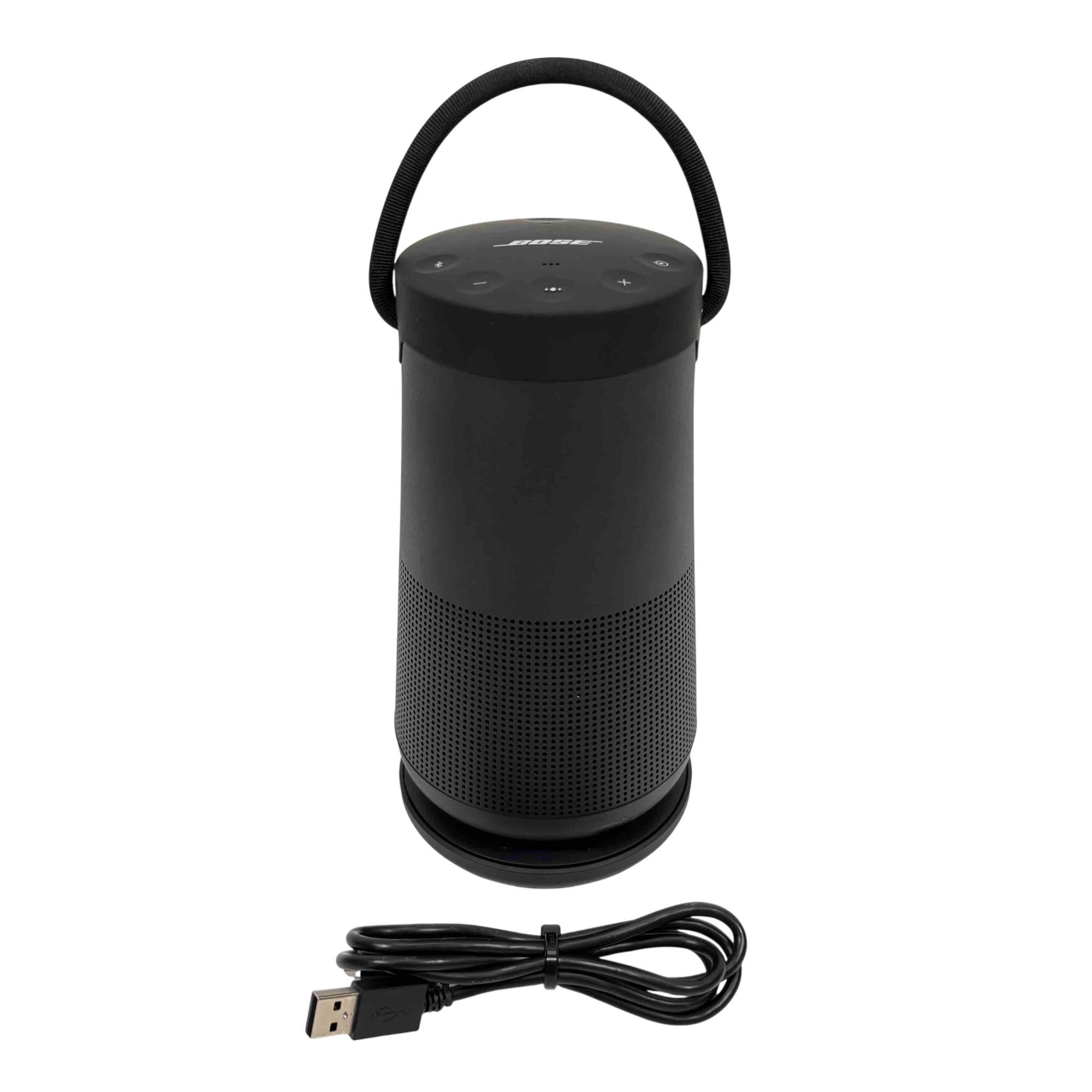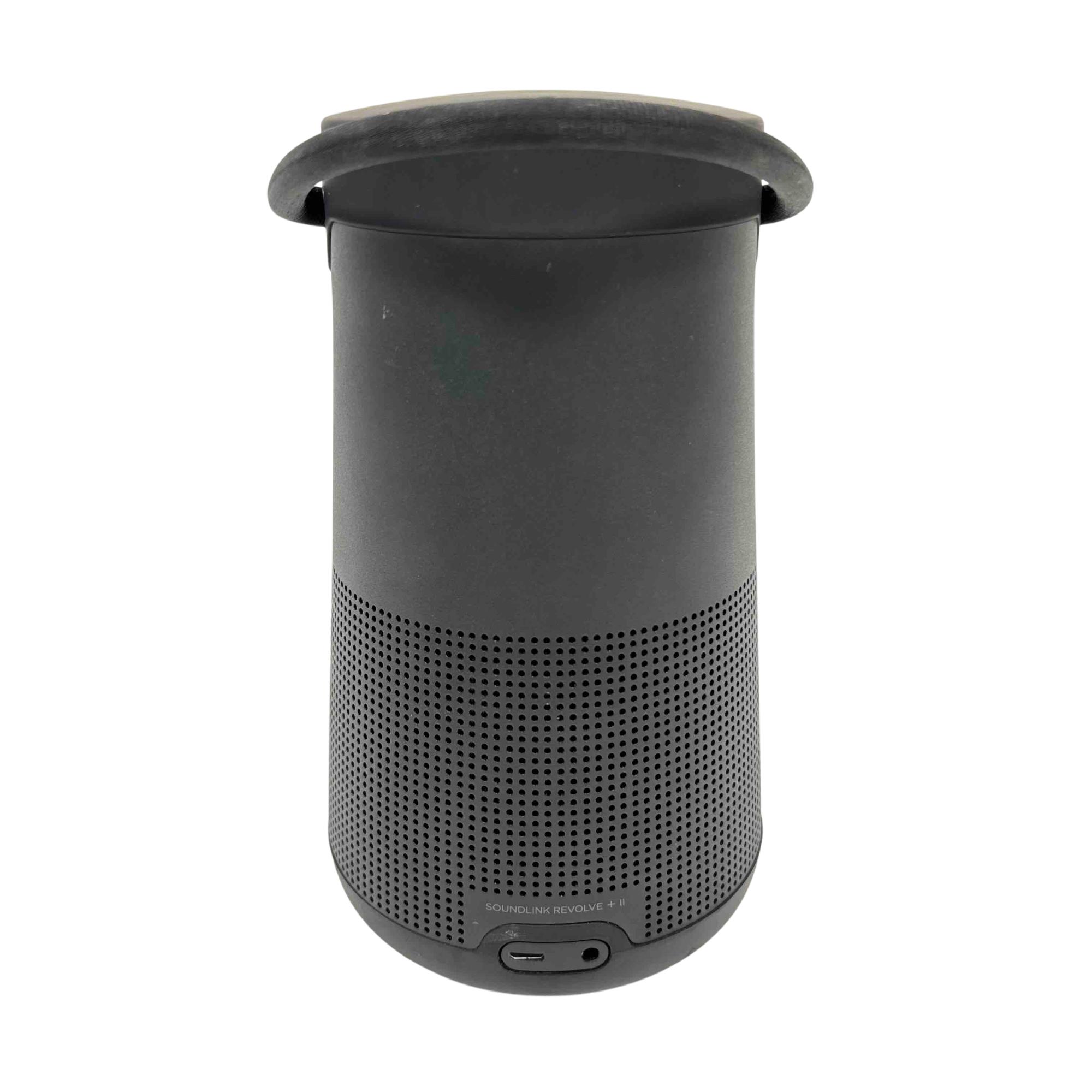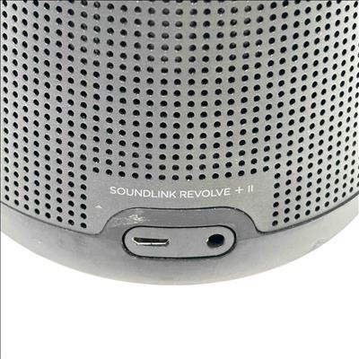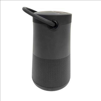 Bose SoundLink Revolve+ II Portable Bluetooth Speaker, Black, Model 419356 offers powerful 360-degree sound in a sleek, cylindrical design. Featuring Bluetooth and Wi-Fi connectivity, this portable speaker delivers rich, immersive audio with a durable, water-resistant build ideal for indoor and outdoor use.