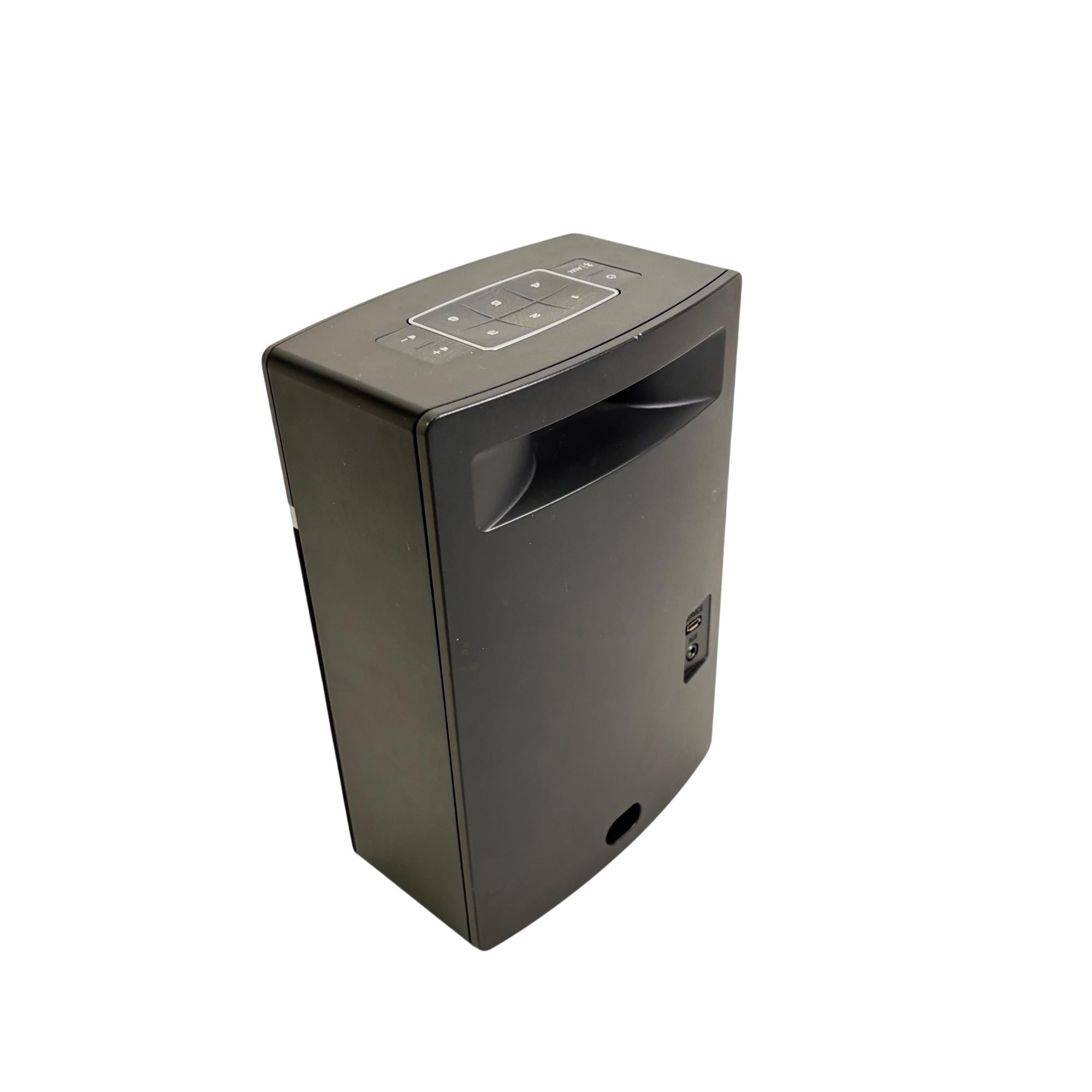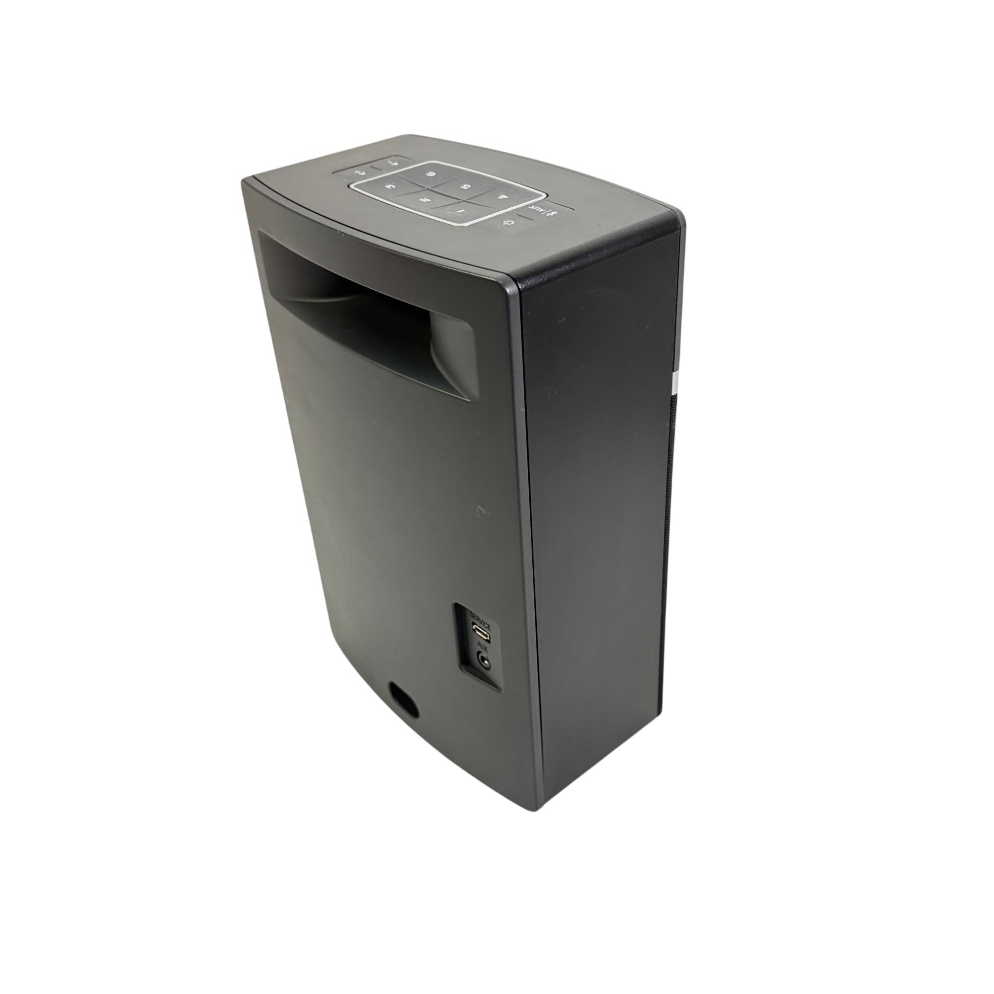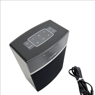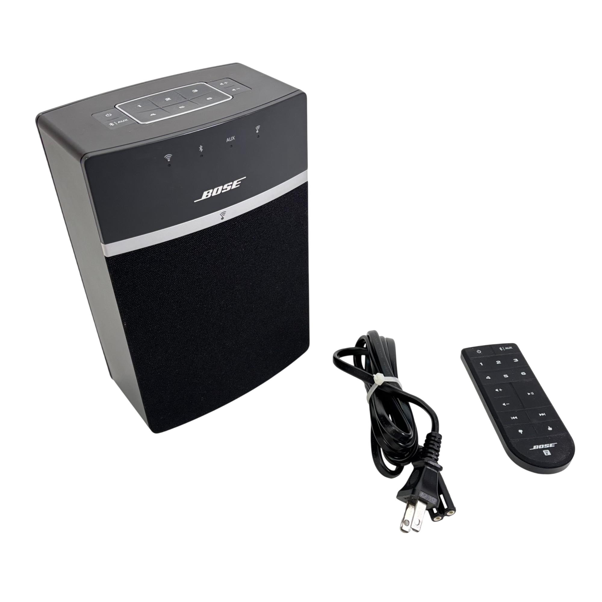 Bose SoundTouch 10 Wireless Music Speaker System with Remote (Model 416776) delivers high-quality wireless audio with easy Bluetooth and Wi-Fi connectivity. This compact speaker features intuitive controls on a sleek black rectangular design, allowing seamless streaming from various devices while providing rich, room-filling sound in a small footprint.
