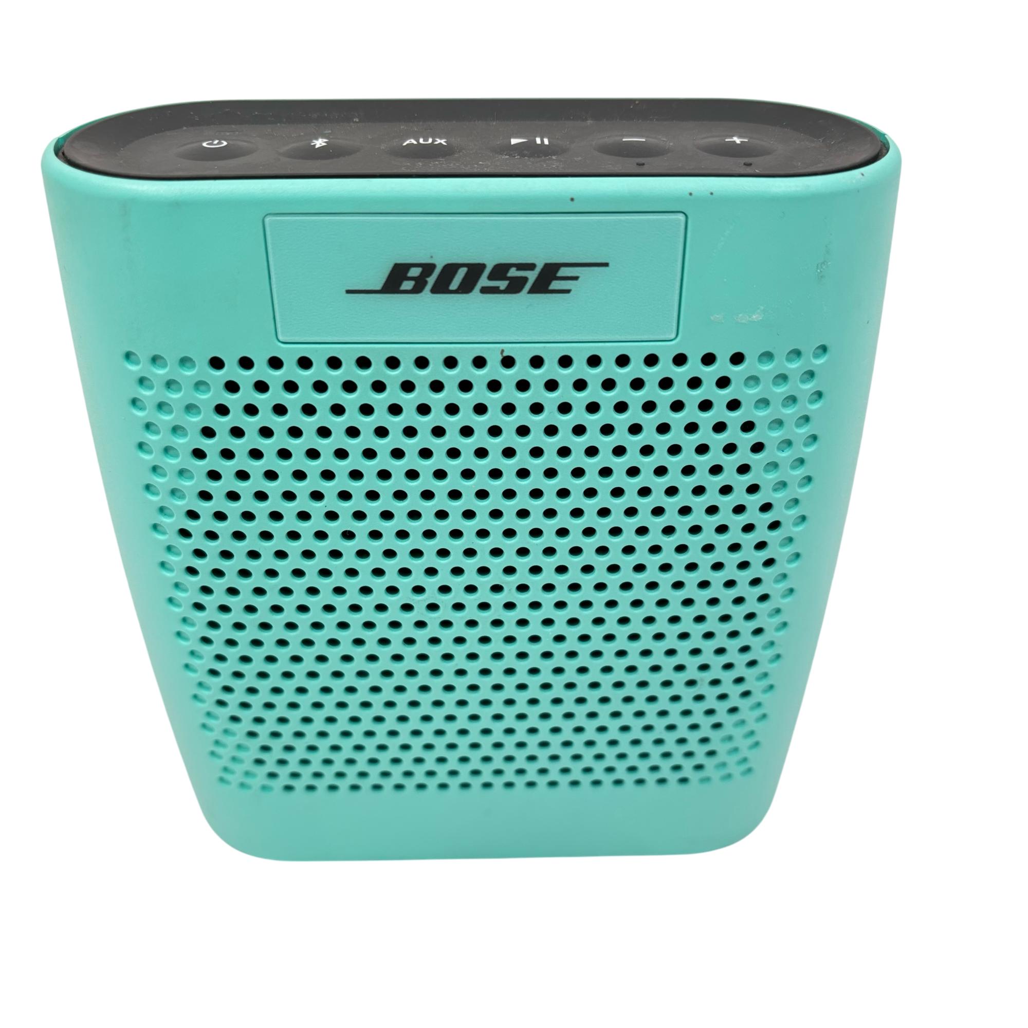 Experience bold sound in the palm of your hand with the Bose SoundLink Color Bluetooth Speaker. This vibrant Aqua Blue model delivers crisp audio with a powerful bass, perfect for any setting. Built with durable materials, it is ideal for both indoor and outdoor use, making it your go-to companion for music on the move.