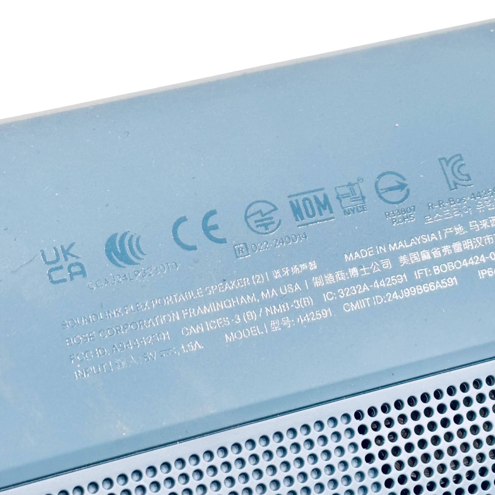 Bose SoundLink Flex (2nd Gen) Portable Bluetooth Speaker in Stone Blue delivers rich, balanced audio with deep bass and clear highs in a compact, waterproof design. This durable wireless speaker features a robust construction ideal for on-the-go use, providing seamless Bluetooth connectivity and impressive sound performance in various environments.
