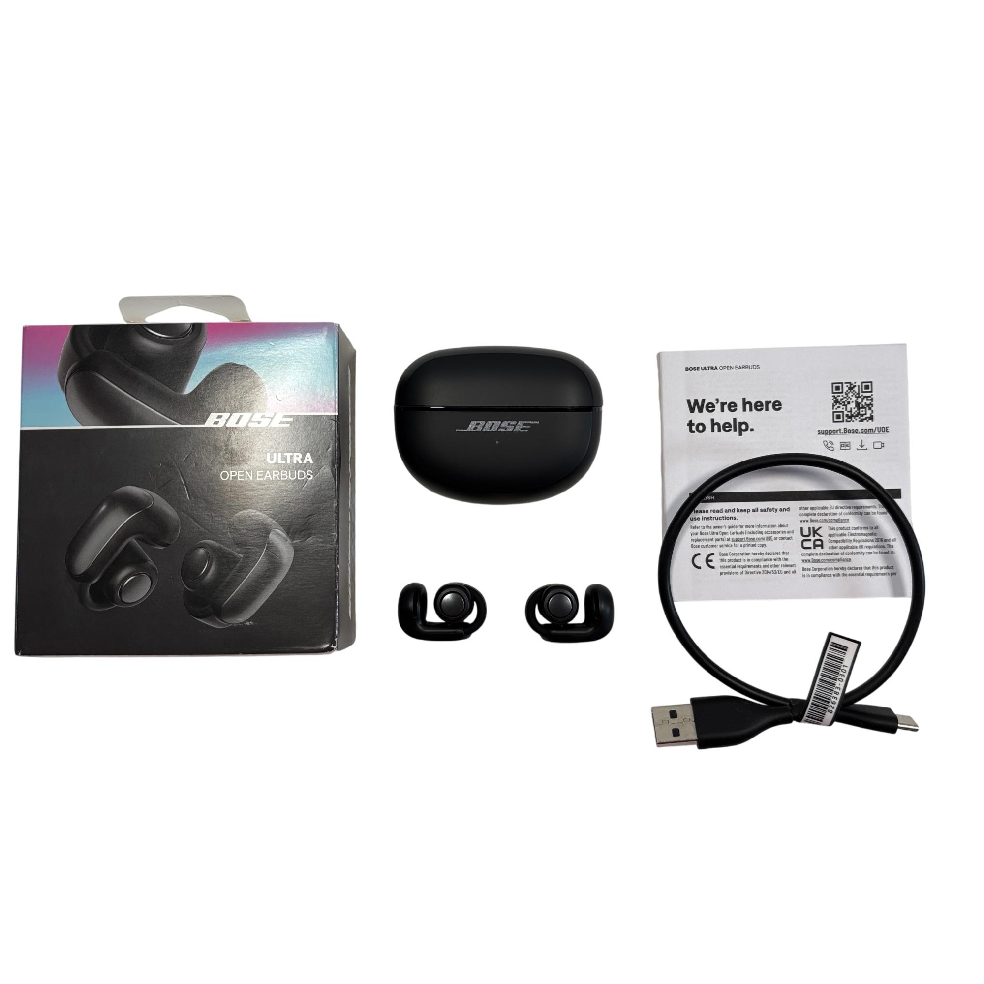 The Bose Ultra Open Earbuds deliver an open-ear design that lets you stay aware of your surroundings while enjoying rich, clear sound. These wireless earbuds feature touch controls for easy management and a comfortable, secure fit optimized for active use. Designed in sleek black, they combine innovative audio technology with a lightweight, durable build ideal for workouts and daily wear.